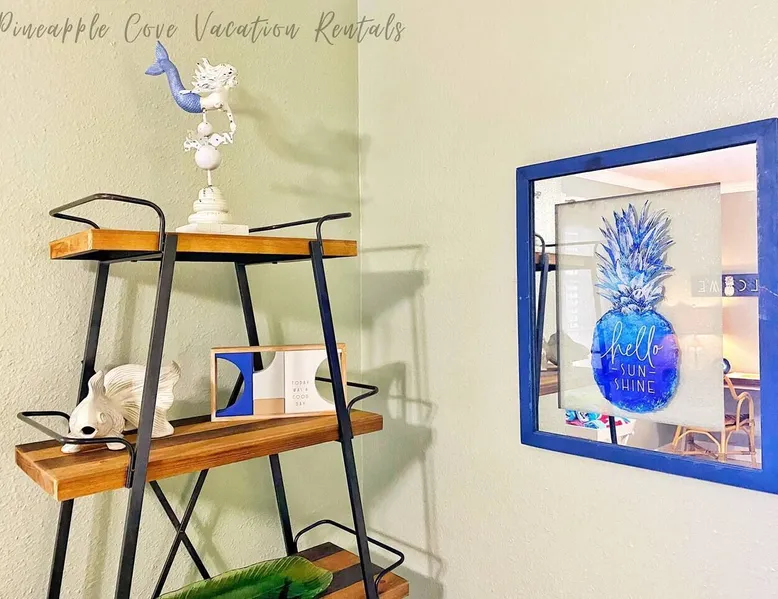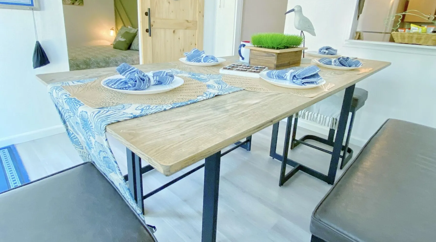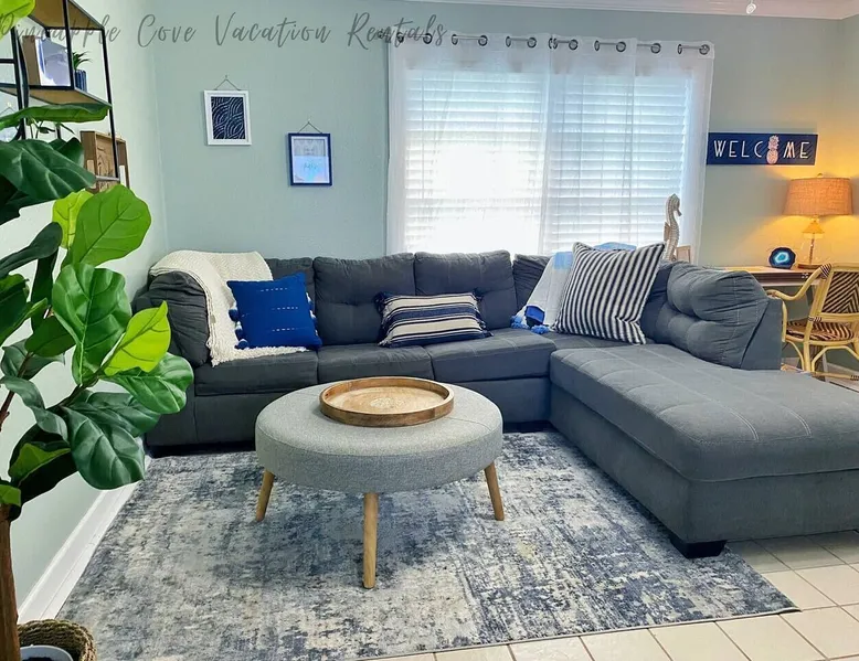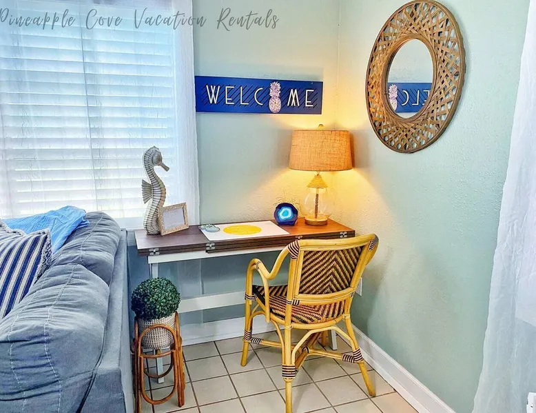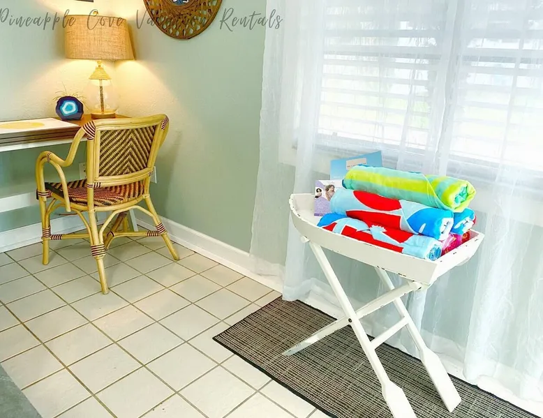 ■ What You Will Love ■ -Sleeps 6! -Corner apartment! -2 bedroom 1 bath apartment across from the beach -Next door to a park with playground, tennis courts, picnic tables, and grill -Walking distance to coffee, restaurants, and activities -Beautifully updated with thoughtful touches throughout -One of a kind custom built game room/dining room -The perfect vacation home to relax, recharge, & have fun! Main bedroom -Comfortable queen size bed -Smart TV -Stay charged! With bedside lamps that have built in USB chargers -Free standing open air armoire with shelving Second bedroom -2 twin size beds -Smart TV -One of a kind VW bus dresser -Large closet with double louvered doors Living room -50" Smart TV -Sectional sofa -Desk & chair Kitchen -Fully equipped with pots, pans, cooking utensils, coffee maker, toaster, instantpot, dishes, silverware, cups, mugs, & wine glasses The custom designed dining room/game room features: -Bar height table with stools (seating for 6) -Wall scrabble -LED remote controlled lighting -This intentional space was designed to spark creativity, joy and fun! Bathroom -Tub/shower combination -Toilet -Hair dryer, shampoo, conditioner & body wash Outdoor living Outdoor living -Charcoal grill -Small backyard -Patio table with 4 chairs -Beach chairs provided - An initial “starter” supply of toilet paper, garbage bag, paper towel is provided. 2768