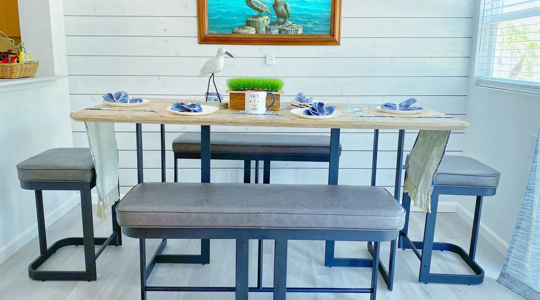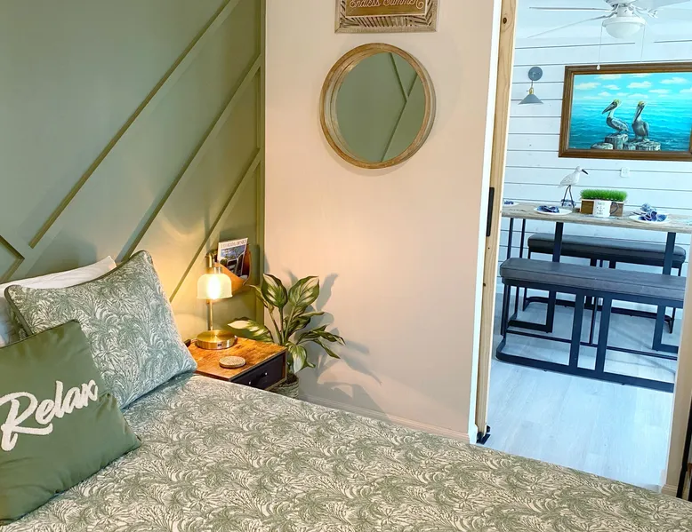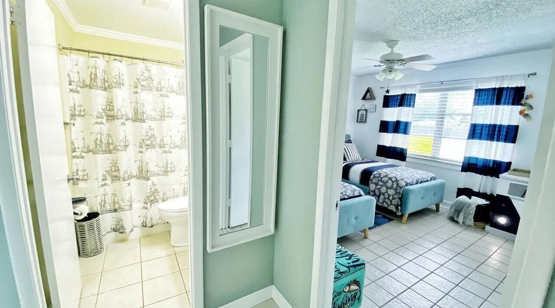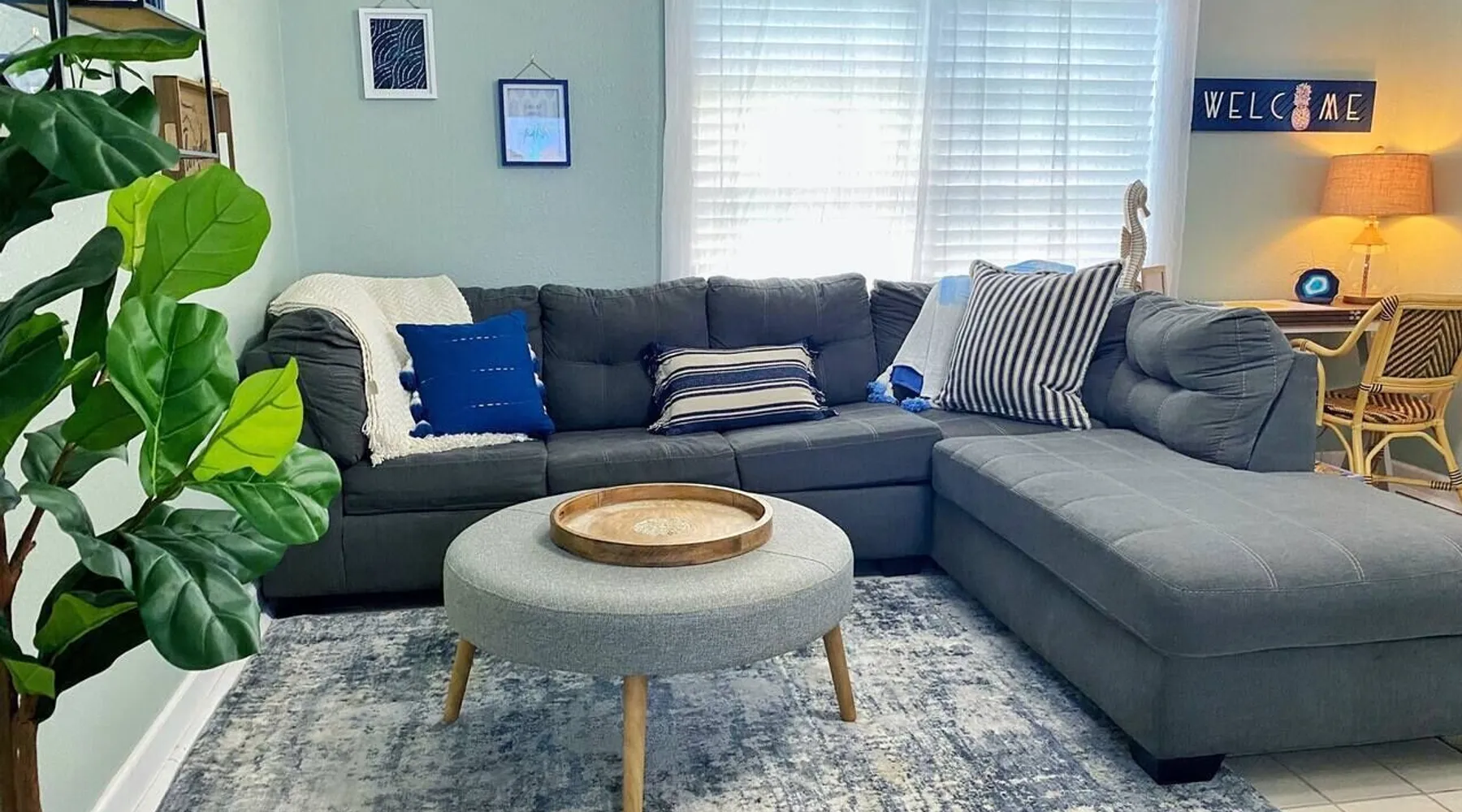 ■ What You Will Love ■ -Sleeps 6! -Corner apartment! -2 bedroom 1 bath apartment across from the beach -Next door to a park with playground, tennis courts, picnic tables, and grill -Walking distance to coffee, restaurants, and activities -Beautifully updated with thoughtful touches throughout -One of a kind custom built game room/dining room -The perfect vacation home to relax, recharge, & have fun! Main bedroom -Comfortable queen size bed -Smart TV -Stay charged! With bedside lamps that have built in USB chargers -Free standing open air armoire with shelving Second bedroom -2 twin size beds -Smart TV -One of a kind VW bus dresser -Large closet with double louvered doors Living room -50" Smart TV -Sectional sofa -Desk & chair Kitchen -Fully equipped with pots, pans, cooking utensils, coffee maker, toaster, instantpot, dishes, silverware, cups, mugs, & wine glasses The custom designed dining room/game room features: -Bar height table with stools (seating for 6) -Wall scrabble -LED remote controlled lighting -This intentional space was designed to spark creativity, joy and fun! Bathroom -Tub/shower combination -Toilet -Hair dryer, shampoo, conditioner & body wash Outdoor living Outdoor living -Charcoal grill -Small backyard -Patio table with 4 chairs -Beach chairs provided - An initial “starter” supply of toilet paper, garbage bag, paper towel is provided. 2768