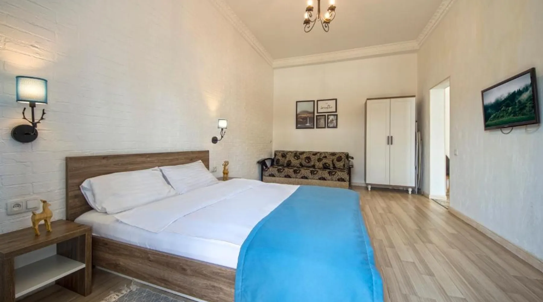 Comfortable Accommodations: Arena Apartments Baseina Area in Kyiv offers comfortable apartments with free WiFi, air-conditioning, and parquet floors. Each apartment includes a private bathroom, washing machine, and a fully equipped kitchen with a refrigerator, microwave, and stovetop. Convenient Facilities: Guests benefit from a paid airport shuttle service, a 24-hour front desk, and family rooms. Additional amenities include a dining area, work desk, TV, and balcony with city views. Prime Location: Located less than 0.6 mi from Khreshchatyk Metro Station and a 14-minute walk to Olympic Stadium, the apartment is near attractions such as St. Volodymyr's Cathedral and Shevchenko Park. An ice-skating rink is also in the surroundings. Guest Satisfaction: Highly rated for its nearby shops, convenient location, and room cleanliness, Arena Apartments Baseina Area ensures a pleasant stay for all visitors. This apartment features an air conditioning, a balcony, a fully equipped kitchen. The bathroom features a bath, a washing machine and a hairdryer.