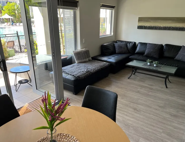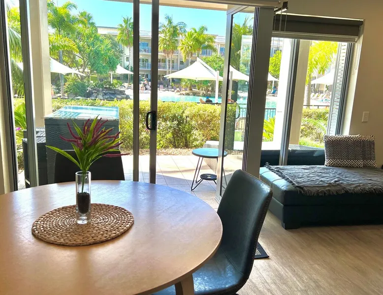 Prime position at Peppers Resort & Spa with direct access to the lagoon pool and spa 2 outdoor terraces Private sun beds, designer upgrade, Smart TVs , WIFI Poolside dining Tennis court Gym Day spa 5 mins walk to the beach, and Salt dining precinct Snorkelling, fishing, SUPs , kayaking Kitchen, Nespresso machine, washing machine/dryer, spa bath 45 mins to Bryon /Ballina/ Theme parks Long stay rates May to August please message for rates The space The suite is part of the Peppers Salt Resort & Spa Kingscliff NSW . It's one of the most northern seaside resorts in NSW and arguably one of the best, no high rises, friendly locals, amazing dining and day trips (Byron Bay, Husk Distillery, Gold Coast theme parks, Hastings Point, Fingal Head, snorkelling with turtles, whale watching cruise) Perfect for a relaxing getaway. Spacious apartment and luxurious surroundings. Check out the day spa at the resort and Kingscliff town centre. Don't miss the local markets and the winter Whale watching at Hastings Point and Kingscliff beach. It is the last 2 bedroom along the long end of the lagoon pool (furthest from reception) so it's one of the quietest apartments right next to the pool. The lagoon pool has it's own sandy beach and sun lounges. There is also a tropical pool and spa. The suite has its own double sun lounge on the main patio and 2 single sun lounges on the second patio. There are 2 pool gates from both rooms that lead to the lagoon pool. There is no need to reserve sun lounges as you have your own under a shady balcony. There is also a high outdoor dining table perfect for poolside drinks and snacks. You can order food and beverages from the poolside service counter. Fully stocked kitchen plenty of crockery, cutlery and glassware. Coffee machine, 2 burner stove ,air fryer and sandwich press. Coles and Woolworths are 5 mins away or order takeaway from the restaurants across the road . Access to the resort tennis court (tennis equipment provided in the suite), gym, resort pools and spas and the poolside restaruant. Ebike and bike hire from koolbikes in Kingscliff town. There are numerous restaurants (Italian, Thai, Fins , Indian, Mexican) , fish and chips, French Patisserie, gelato bar, cafe (with amazing coffee), local supermarket and the Salt Bar and bistro all within a 5 min walk. Winter Whale Watching within 10 min drive or bike ride to the breakwater at Kingscliff beach, Fingal Head (Lighthouse walk), Cabarita beach lookout and Hastings point (drive straight to the lookout). WIFI is complimentary . Smart TVs (not available in rooms booked through the resort). King size bed in the main bedroom and in the second bedroom - 2 king singles with 2 single trundles (with luxury mattresses) . Travel cot (complimentary). Lounge also converts into a large king size bed. 2 bathrooms including a jetted spa bath, kitchen (with coffee machine), laundry. Indoor and outdoor dining with pool views. Linen and beach towels are included. If you require extra space or would like to invite family and friends I also own the 1 bedroom apartment next door (click on my profile and you will see the listing) . You can access both apartments via the garden terrace they are separated by a privacy screen. The 1 bedroom has a kitchen, separate living/dining, 2 sun lounges and bathroom with a spa bath. Some friendly advice if booking with other hosts , please check their reviews before booking (number of reviews and rating). There are other listings in the resort but they continue to relist after a trend of poor reviews. Some list on multiple websites as they sometimes cancel on you if they get a better rate. This is a premium suite with only 5 star reviews in the last year. I have never cancelled on a guest and have over 400 reviews over 4 properties and over 500 bookings with a 4.9 star rating. I host over 700 nights a year. I love holidays and want my guests to love the suite and the area as much as our family. I've been holidaying in Kingscliff for over 9 years. I offer long stay rates from the end of April to the end of August. Perfect for retirees or anyone wanting a break from the cold weather over winter. Guest access The apartment is privately managed keys are provided in a secure key safe at the resort. No more queuing up to check in and out and you have certainty on the location of the room. Resort facilities including 2 swimming pools ( large lagoon pool with sandy beach and tropical pool with spa), poolside dining, shared plunge pools, day spas, tennis courts (book a time at reception, BYO equipment or there is basic equipment in the apartment) and gym . Bike hire (including E bikes) is available at koolbikes on Marine parade Kingscliff. Other things to note Guaranteed room location. If you find a cheaper rate by booking with the resort please let me know and I'll happily match price Registration Details Exempt