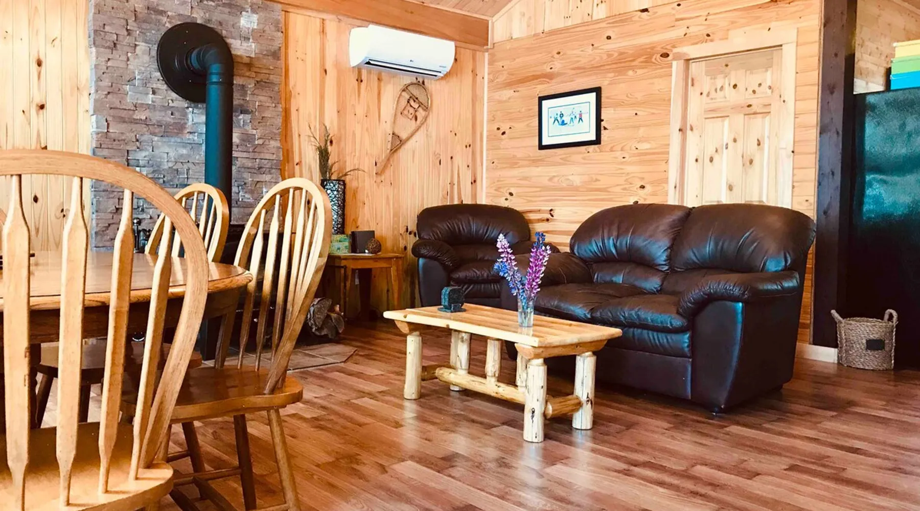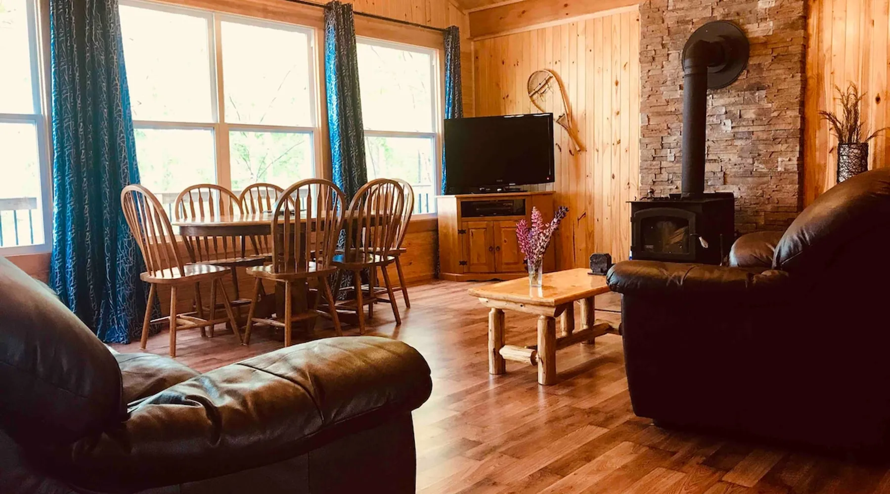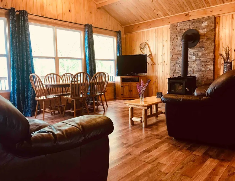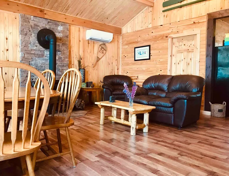 Nestled on Sandy Lake, in the town of Howley, 20 minute drive from Deer Lake, NL. Waterfront property with both a rocky and a sandy beach. Wake up every morning with a view of the lake and occasional wildlife (geese, ducks, loons, rabbits, moose). Launch your boat right in front of the cabin. Cabin is equipped with a small hot water tank, air conditioning, linens, towels, satellite tv, coffee, tea, and much more. A must see! Book your vacation today. The space Cabin is equipped with a small hot water tank perfect for washing dishes and quick showers. Relax comfortably inside with air conditioning on hot humid days. Kitchen is fully equipped with stainless steel appliances. Enjoy a BBQ or even cook on the outdoor cooktop on the gated deck overlooking the beach. Patio table and chairs on deck. Fish from the floating dock or enjoy a swim in the lake. There is Satellite tv and dvd player with an array of dvds for rainy days or for when you want to take a break from the sun and lake. Leather couches. Log beds. Stand up shower. Please note, there is no laundry facilities on site. Other things to note Sandy Lake is great for boating of all sorts.