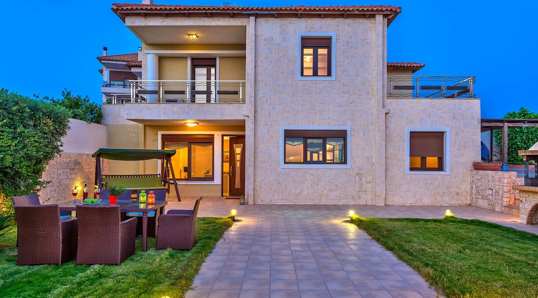 Villa Panorama is located in Ierapetra, in the area of Peristera. The villa is 180-200m2, surrounded by a beautiful garden with a pool and offers breathtaking panoramic views. The space The villa is 180-200 sq.m. and consists of 4 bedrooms. Two of them have a double bed and the other two have two single beds each. In addition, the villa has a living room with a 40’’ TV, DVD player and stereo and kitchen with dishwasher, fridge, electric stove, microwave, coffee maker, washing machine, as well as a bathroom with bathtub and a bathroom with shower. The villa is surrounded by a beautiful garden that offers breathtaking panoramic views! Other things to note COMPANY REGISTRATION NUMBER (CRN): 1040K10002991901 Registration Details 1040K10002991901