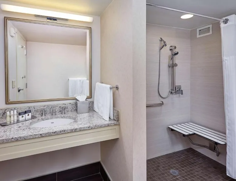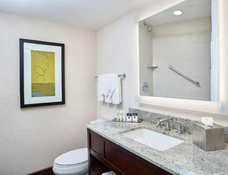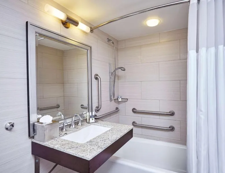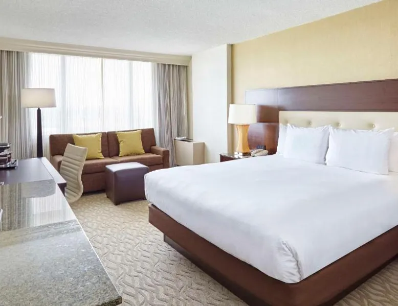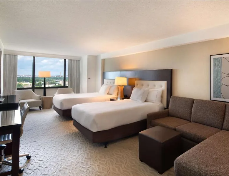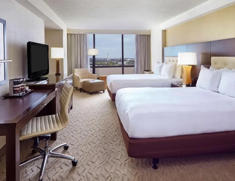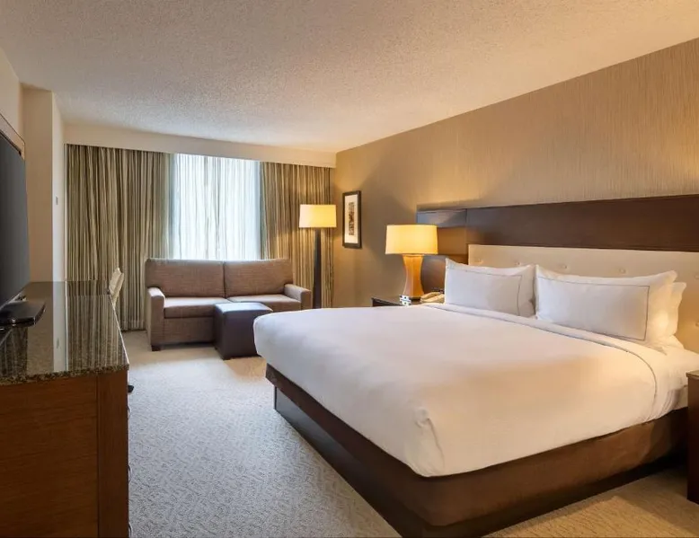 Located across the Potomac River from Washington, D.C., and moments from major attractions, including the White House, this hotel features exceptional amenities and many modern services, including free airport shuttle service to and from Reagan National Airport. Only a short distance from the DoubleTree by Hilton Washington DC – Crystal City, guests can discover the Pentagon, Arlington National Cemetery and the Crystal underground shopping center. The Washington Monument, the Smithsonian and much more are also easily accessible with the hotel's free shuttle to the nearby metro station, leading directly to the city center. Guests at the National Airport Doubletree Hotel can enjoy stunning views of the city from the revolving rooftop restaurant and state-of-the-art fitness center. The hotel also features spacious and versatile meeting and banquet facilities. This accessible room with 1 king bed has a flat-screen TV with cable channels, air conditioning, a microwave and small refrigerator.