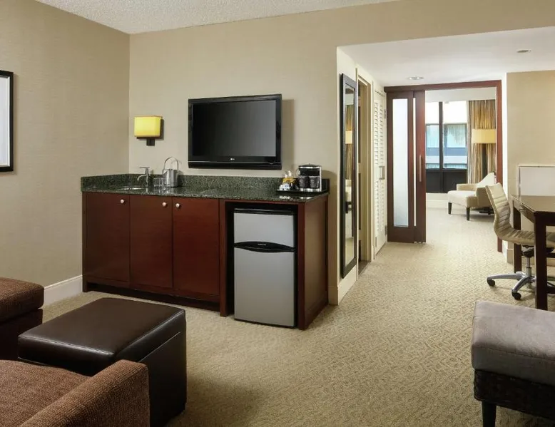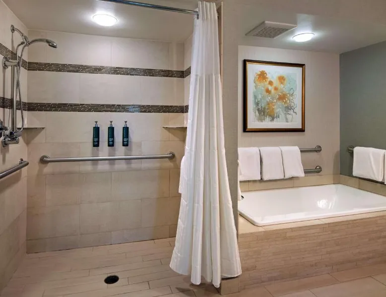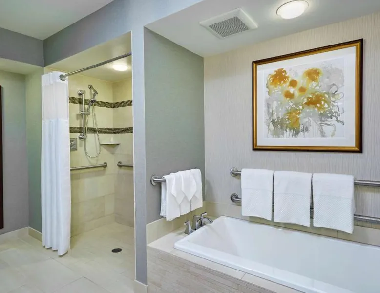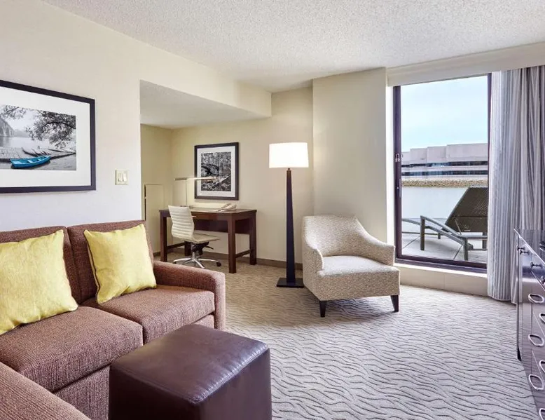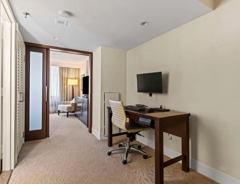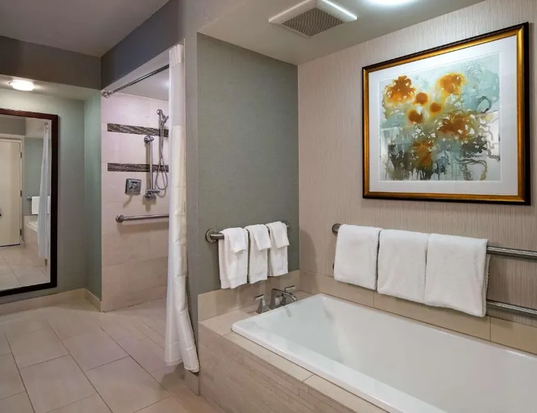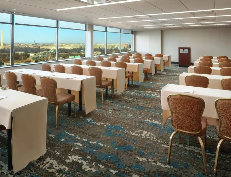 Located across the Potomac River from Washington, D.C., and moments from major attractions, including the White House, this hotel features exceptional amenities and many modern services, including free airport shuttle service to and from Reagan National Airport. Only a short distance from the DoubleTree by Hilton Washington DC – Crystal City, guests can discover the Pentagon, Arlington National Cemetery and the Crystal underground shopping center. The Washington Monument, the Smithsonian and much more are also easily accessible with the hotel's free shuttle to the nearby metro station, leading directly to the city center. Guests at the National Airport Doubletree Hotel can enjoy stunning views of the city from the revolving rooftop restaurant and state-of-the-art fitness center. The hotel also features spacious and versatile meeting and banquet facilities. This accessible room with 1 king bed has a flat-screen TV with cable channels, air conditioning, a microwave and small refrigerator.