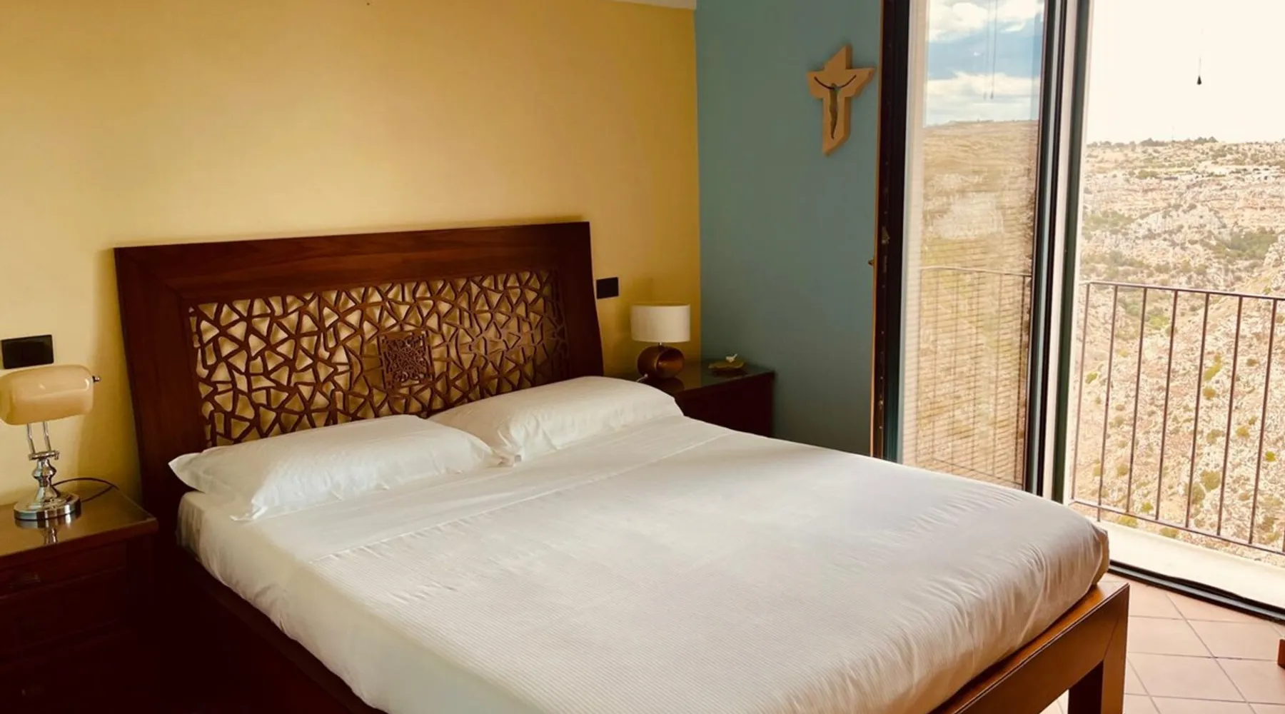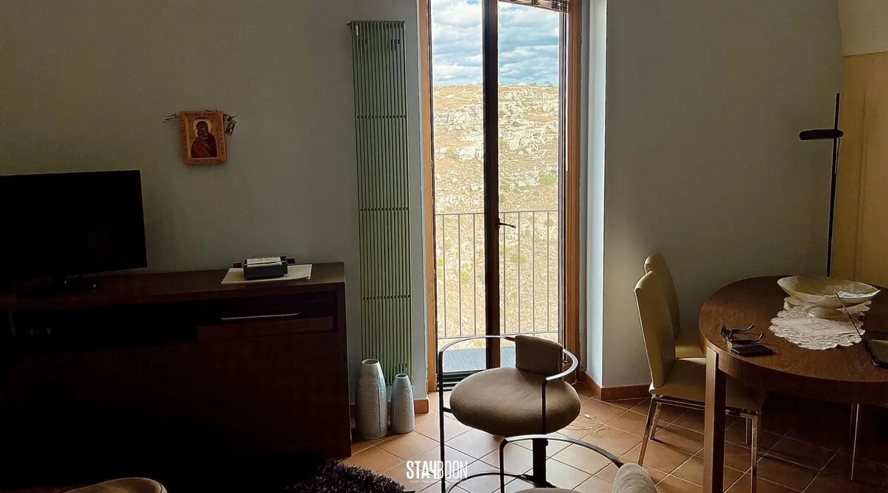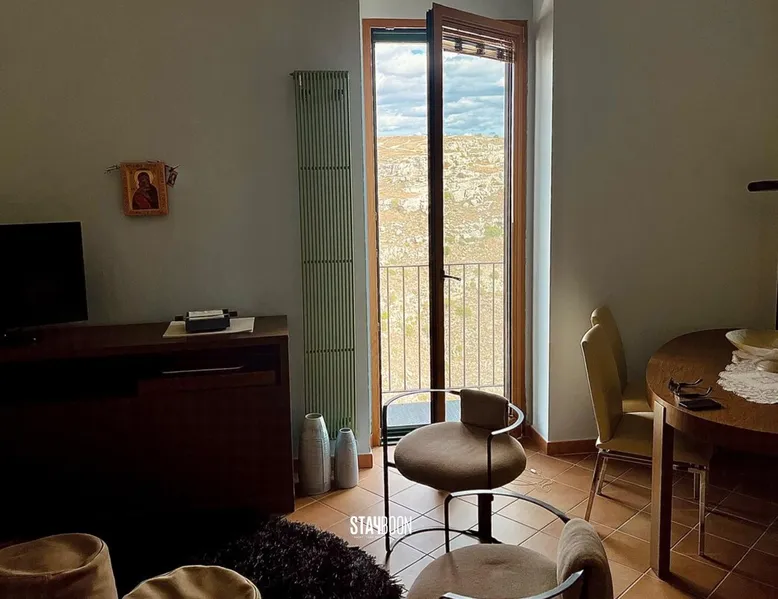 In the heart of the old town of Matera, the house offers: • Breathtaking overview of the picturesque Sassi and the picturesque Murgia • Ideal Location: Close to numerous attractions • Flat-screen TV and free Wi-Fi • Air-conditioned apartment • Elegant living area and fully equipped kitchen (oven, coffee machine, kettle) • Rooms with linen included • Two bathrooms, one with a bath/shower, complete with towels, toiletries, and a hairdryer •Paid parking, 3 min. The space Finely renovated house, with the particular layout of a Cave House typical of the daily life of Sassi di Matera, with modernity. The House has windows in every room that make it well ventilated and bright, accompanied by the enchanting view of the Stones. Guest access Our guests have access to all areas of the house. Registration details IT077014C203383001