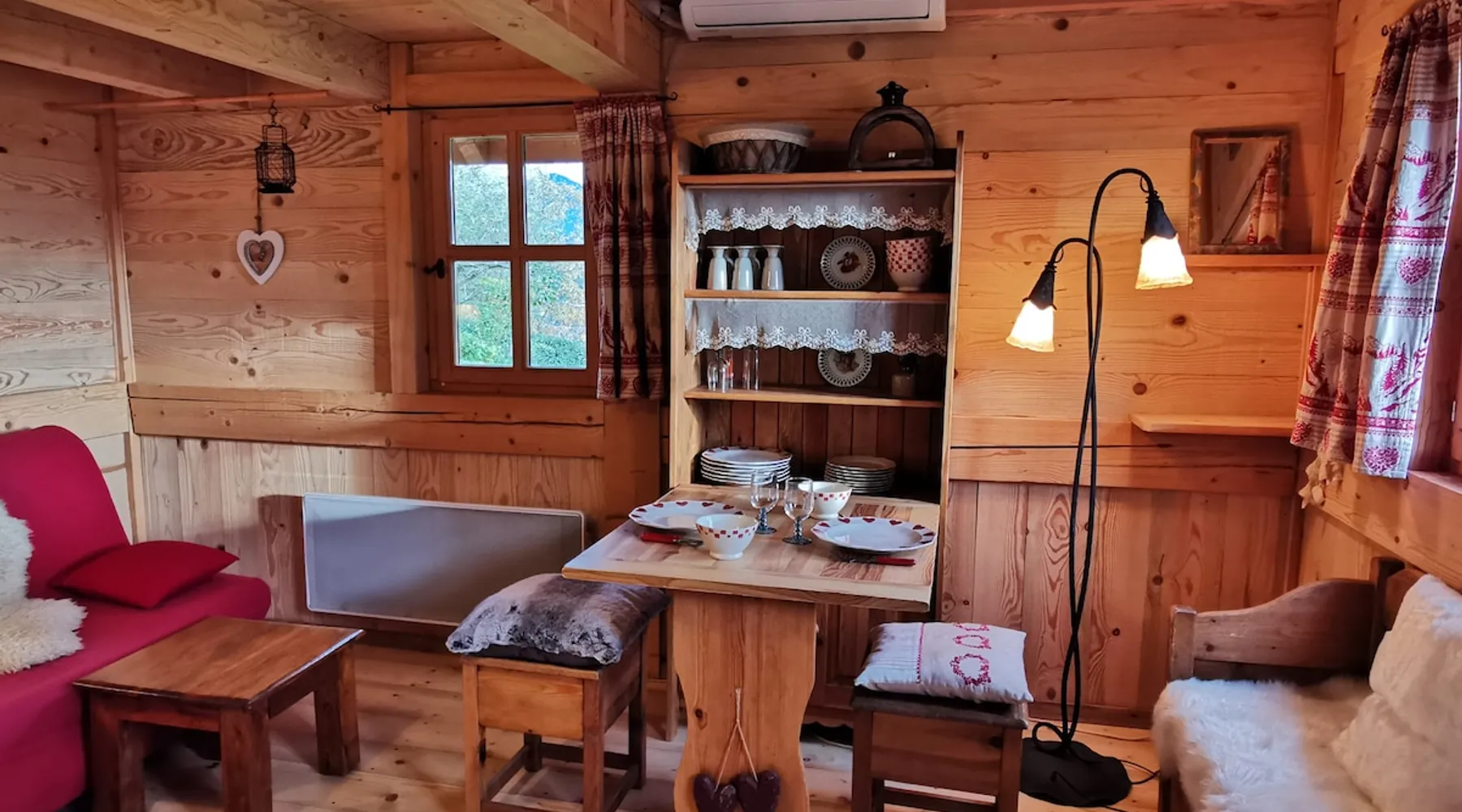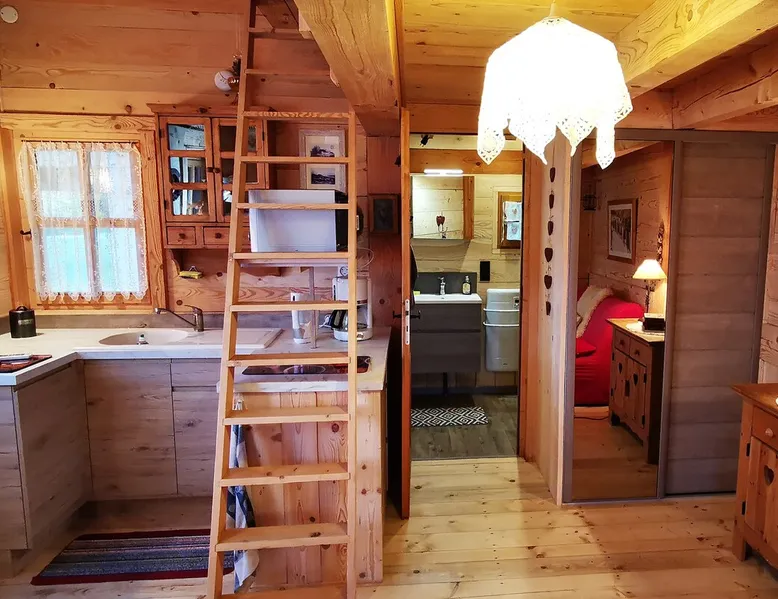 Our little Chalet is a place of relaxation and charm, 20 m2 with a 10 m2 mezzanine. Everything has been thought out for your comfort in a traditional mountain cocooning decor. For your relaxation and well-being, you can enjoy our 60-jet HOT TUB installed facing a superb panorama. This chalet, easy to access with its parking, was built in a green setting with breathtaking views of the mountains. Cruet (alt 350 m) is a village in the Combe de Savoie. The space The large bed is located on a mezzanine that you reach via a 2 m high miller ladder (see photos) but which remains very easy to access. Other things to note With our spa with 60 therapeutic jets and its light show, we provide you with 2 hooded bathrobes, 2 additional bath towels and 2 pairs of slippers. We're only thinking about your comfort! In addition, we provide you with a 30x50 cm screen (provide an HDMI cord to connect your laptop), a Duo raclette service and an electric service for Savoyard fondue.