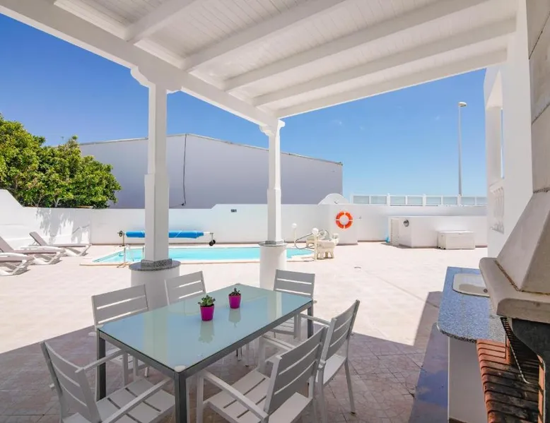 Spacious Accommodations: Villa Mariemne VIP in Playa Honda offers three bedrooms and three bathrooms. The property features a sun terrace, open-air bath, bar, and a year-round outdoor swimming pool. Free WiFi is available throughout the villa. Modern Amenities: Guests can enjoy sea views, air-conditioning, and a fully equipped kitchen. Additional facilities include a private check-in and check-out service, outdoor fireplace, and barbecue area. Free on-site parking is provided. Convenient Location: Located 0.6 mi from Lanzarote Airport, the villa is close to attractions such as Playa la Concha (1.3 mi) and Rancho Texas Park (5 mi). Cycling enthusiasts can explore the surrounding area with bike hire available. Guests will have a special experience as this villa provides a pool with a view and a fireplace. Boasting a private entrance, this spacious villa also includes 3 bedrooms, a seating area and 3 bathrooms with a walk-in shower and a hairdryer. Guests will find a stovetop, a refrigerator, a dishwasher and kitchenware in the fully equipped kitchen. The villa also features a barbecue. The air-conditioned villa offers a flat-screen TV with streaming services, a washing machine, a tea and coffee maker, a dining area as well as sea views. The unit has 5 beds.