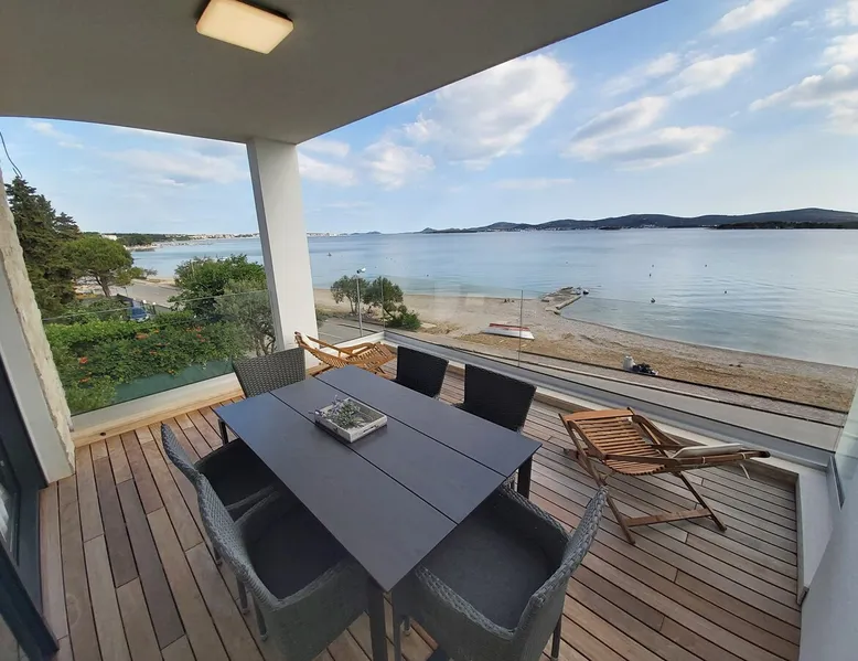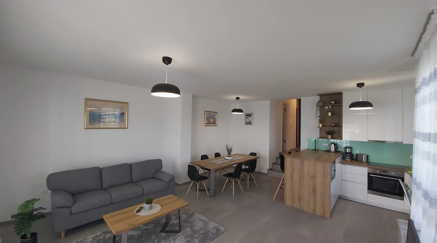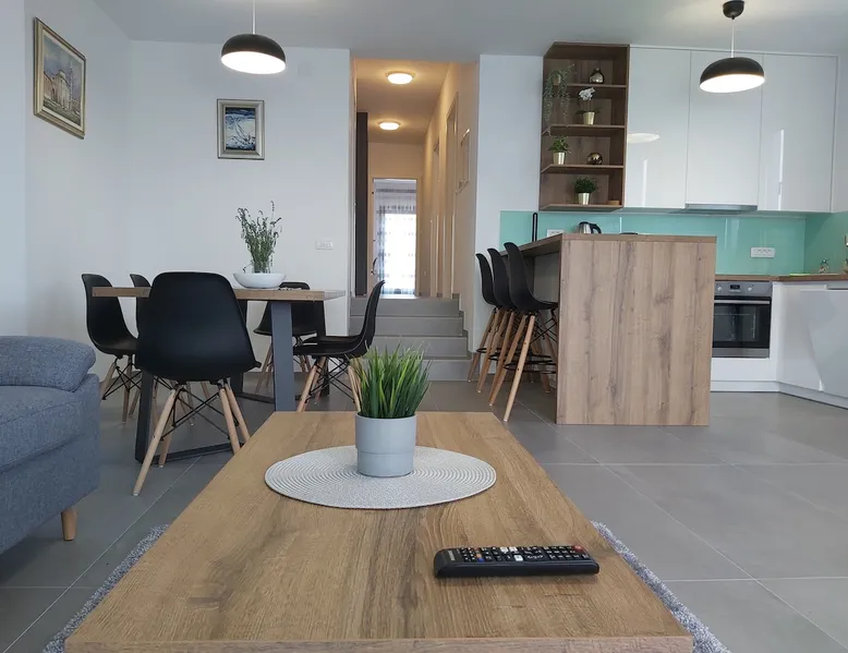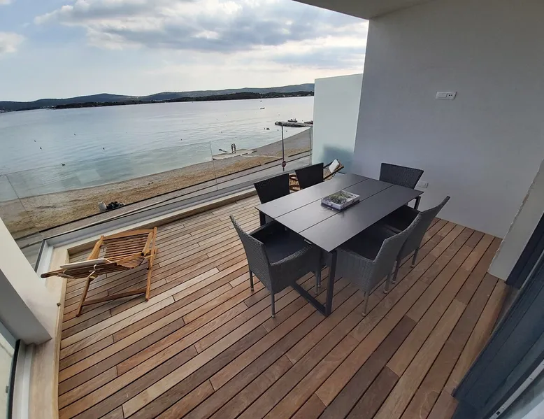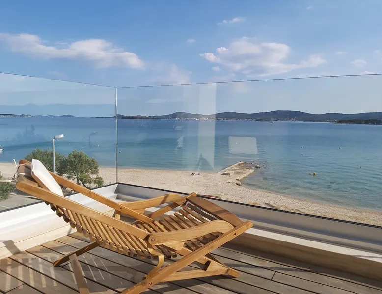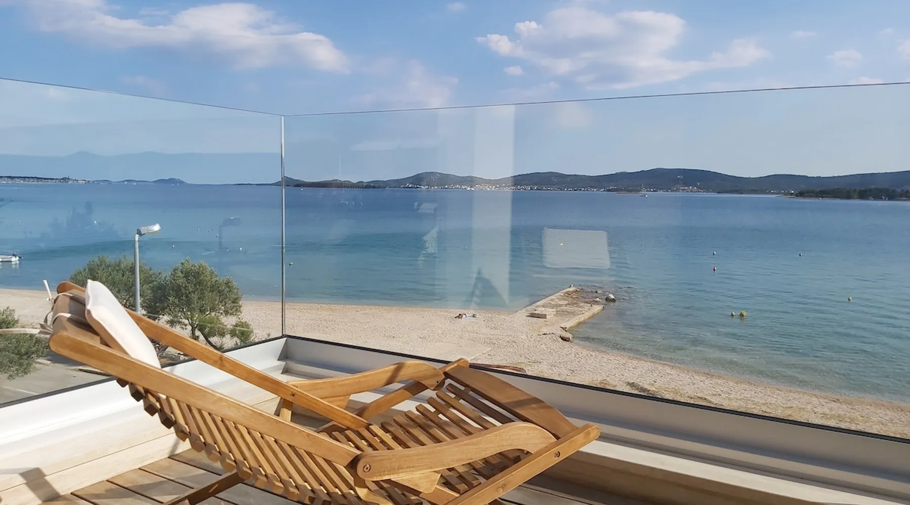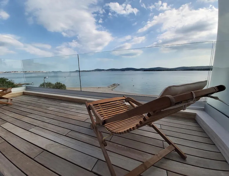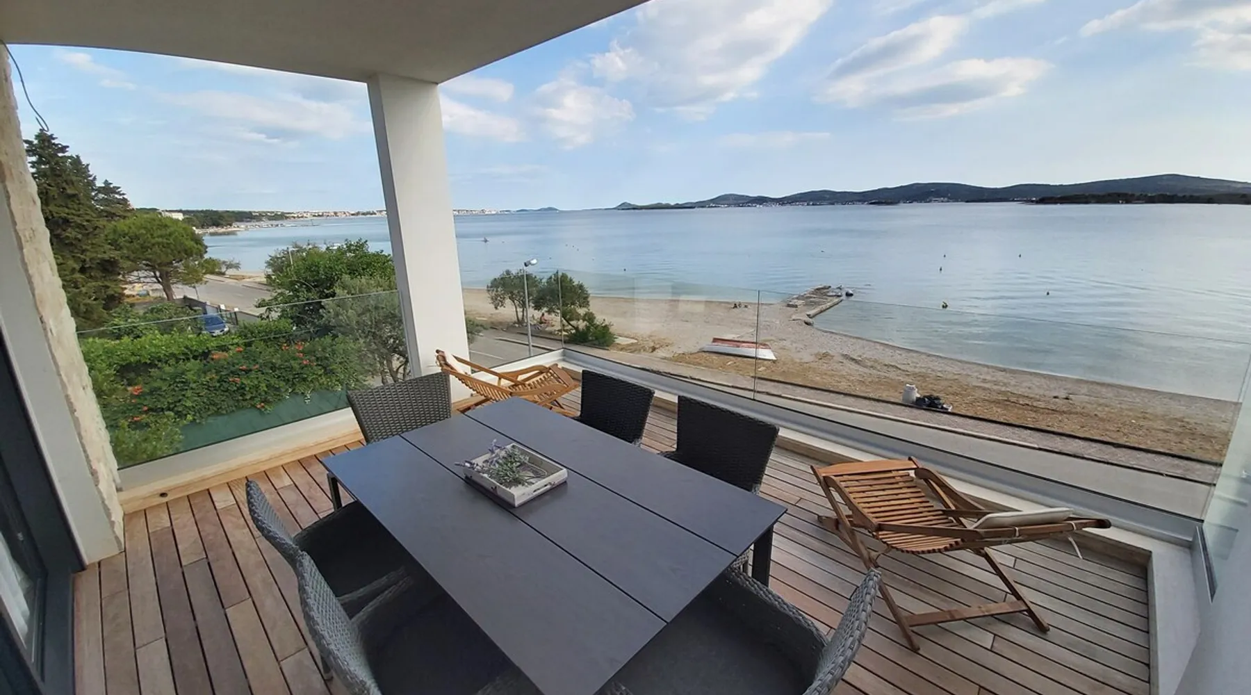 This modern, sun-drenched apartment offers a tranquil residential vibe alongside quick, easy access to the Turanj, Biograd an moru and Zadar. Admire the crisp, contemporary decor of the open-plan living space and take in the peaceful surroundings from the cute terrace. The space Just a short distance to transportation from this incredibly bright 3 bedroom apartment and two baths family size apartment, located in a wonderful luxury building in the charming neighborhood of Turanj. It's hard to miss the absolute beachfront view from the living room to the nearby islands of the Zadar archipelago. The open modern kitchen comes with lots of cabinets, wooden counters, and all WMF appliances. A luxurious king-sized master bedroom with a big closet and a just striking master bathroom with amazing tile floors, and a shower. Some of the gorgeous amenities in this choice building include private parking, a private balcony in the bedroom, a safe, Netflix, AC. Sorry, no pets allowed.