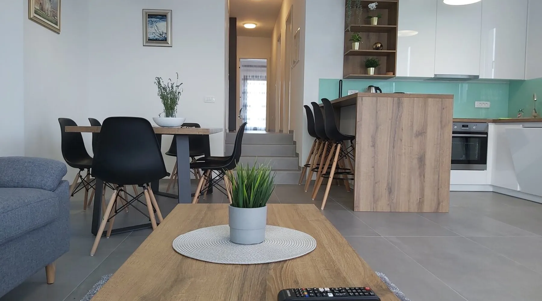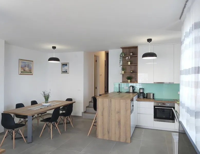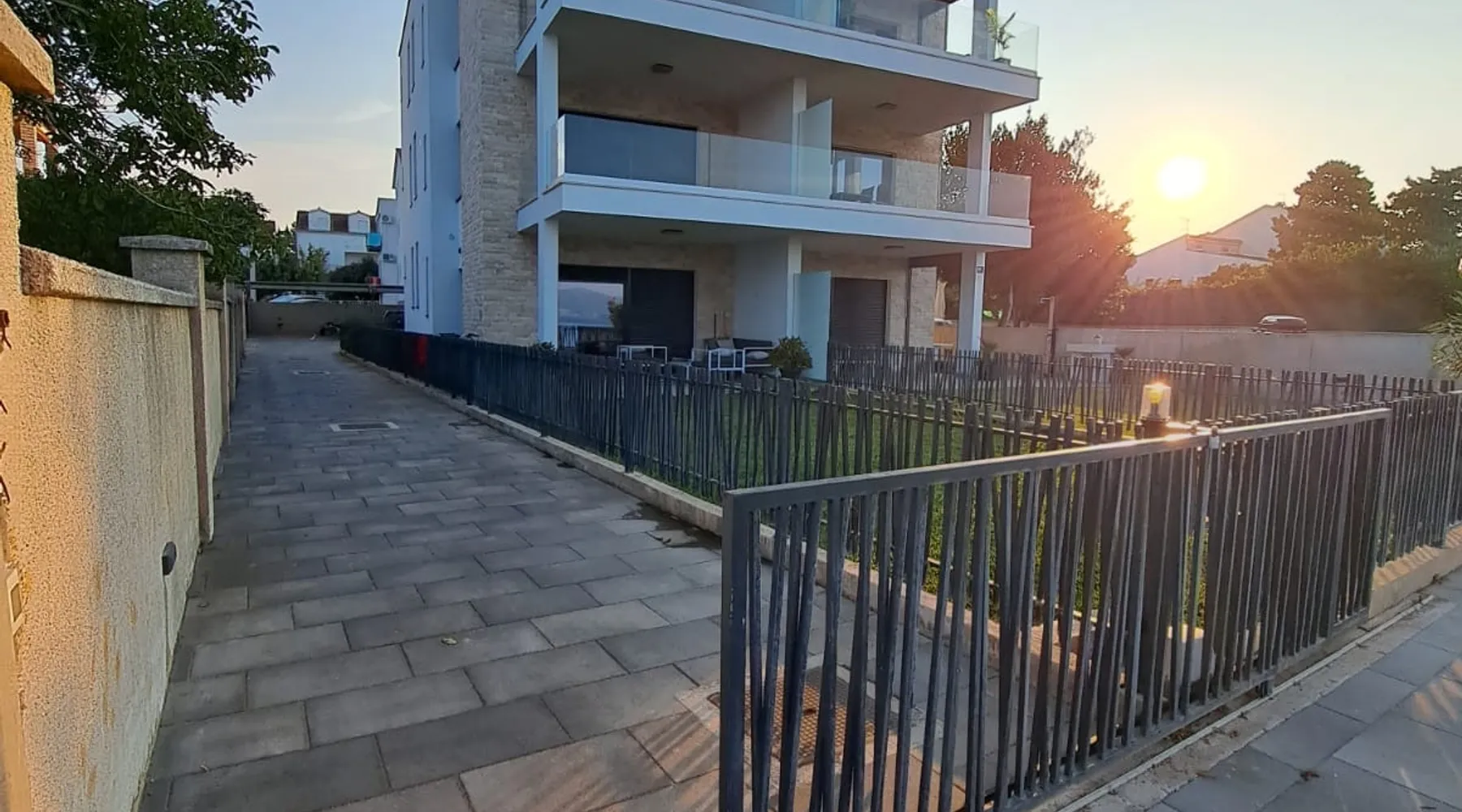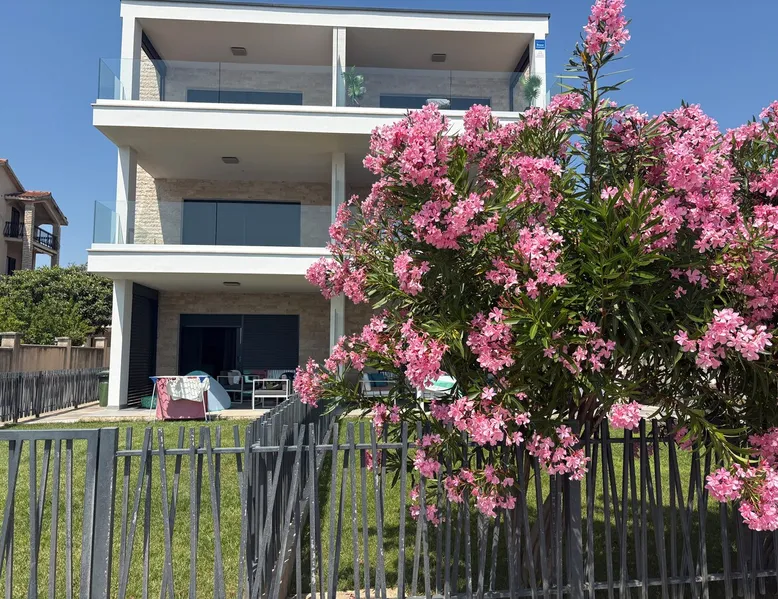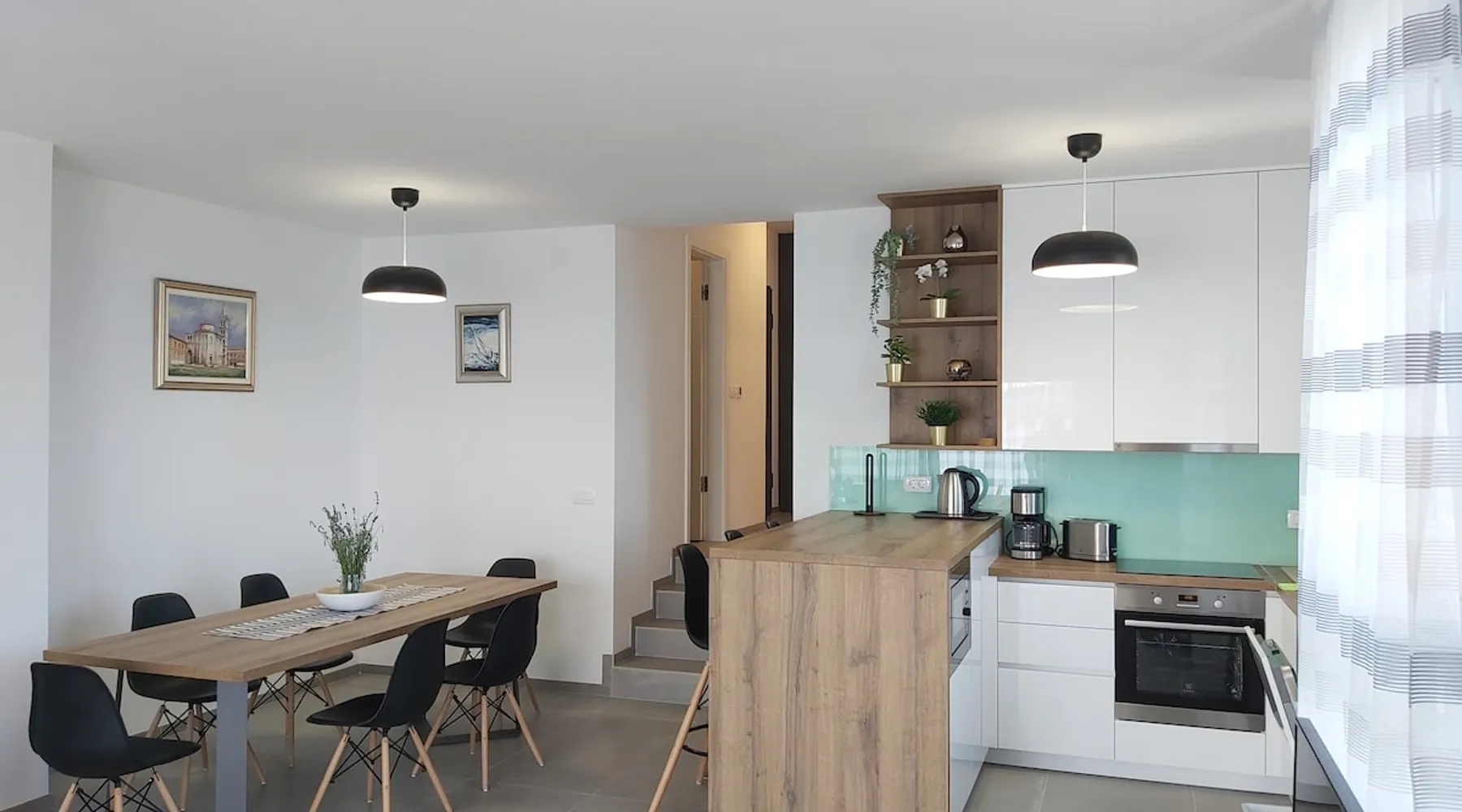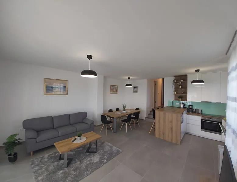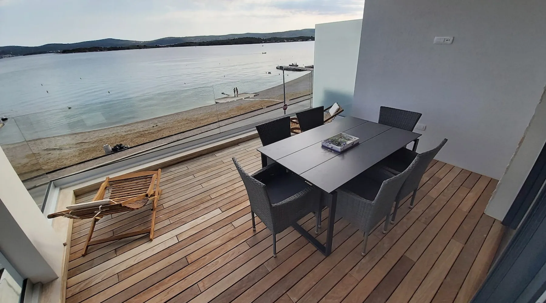 This modern, sun-drenched apartment offers a tranquil residential vibe alongside quick, easy access to the Turanj, Biograd an moru and Zadar. Admire the crisp, contemporary decor of the open-plan living space and take in the peaceful surroundings from the cute terrace. The space Just a short distance to transportation from this incredibly bright 3 bedroom apartment and two baths family size apartment, located in a wonderful luxury building in the charming neighborhood of Turanj. It's hard to miss the absolute beachfront view from the living room to the nearby islands of the Zadar archipelago. The open modern kitchen comes with lots of cabinets, wooden counters, and all WMF appliances. A luxurious king-sized master bedroom with a big closet and a just striking master bathroom with amazing tile floors, and a shower. Some of the gorgeous amenities in this choice building include private parking, a private balcony in the bedroom, a safe, Netflix, AC. Sorry, no pets allowed.