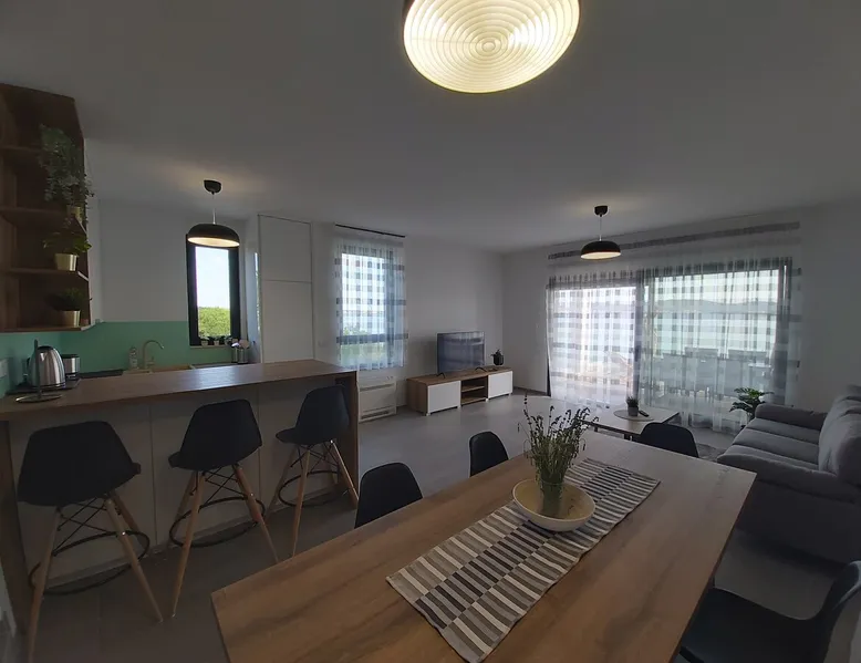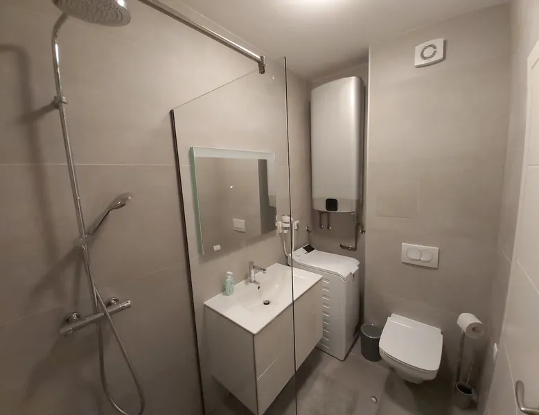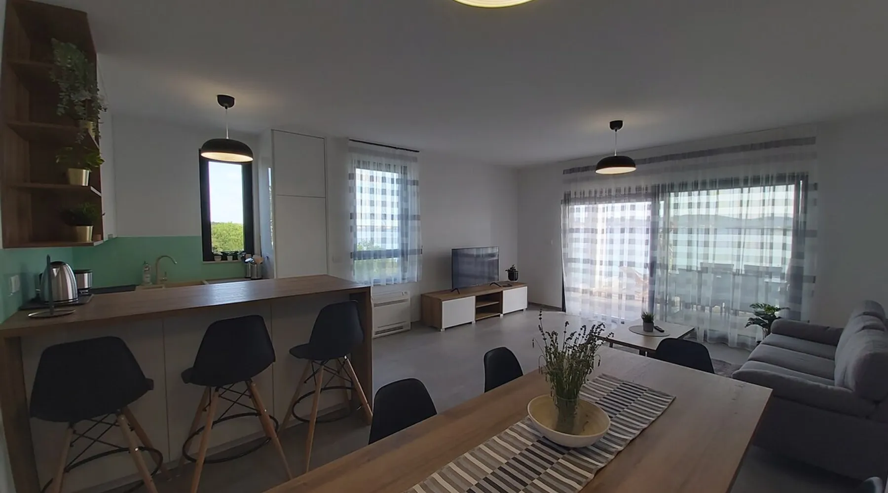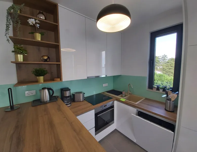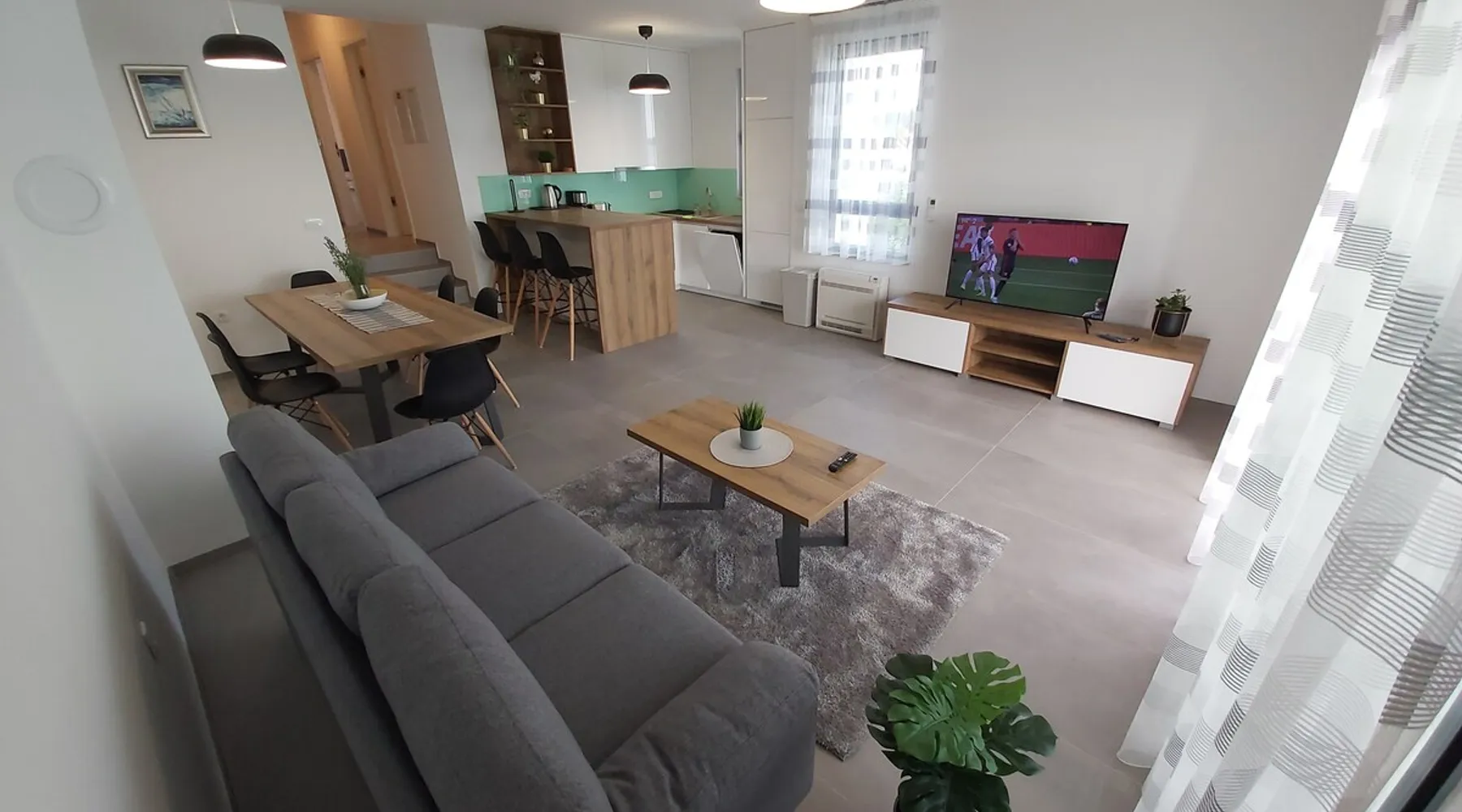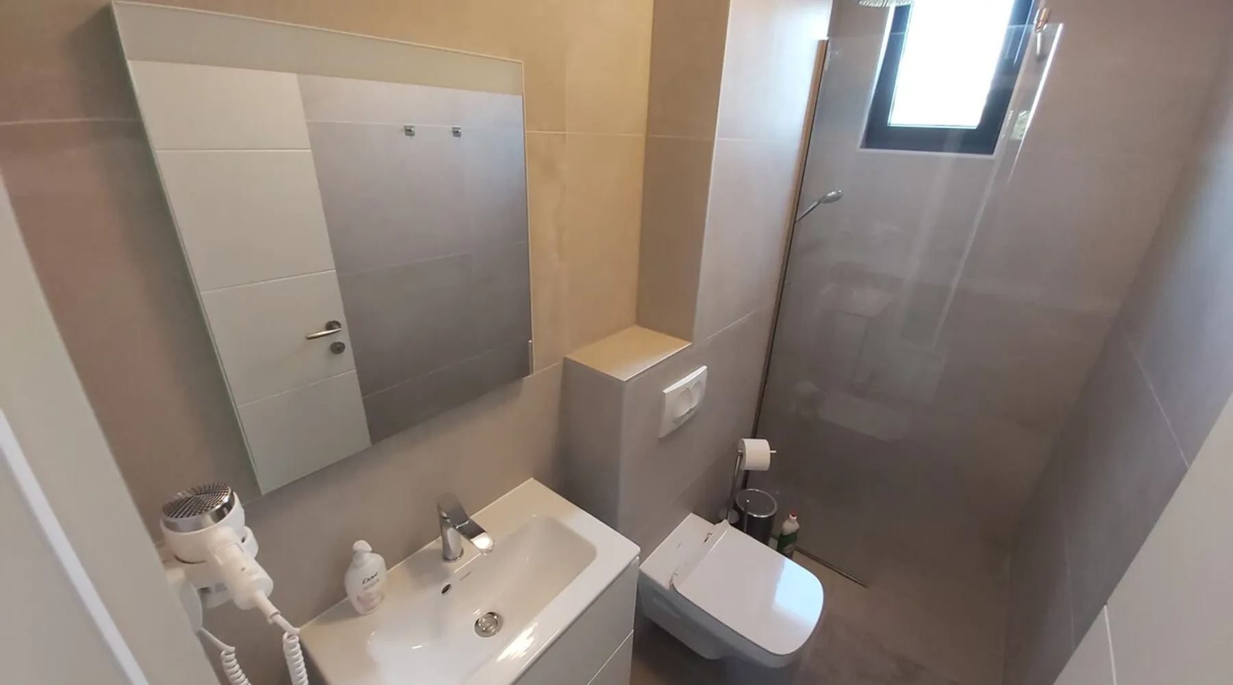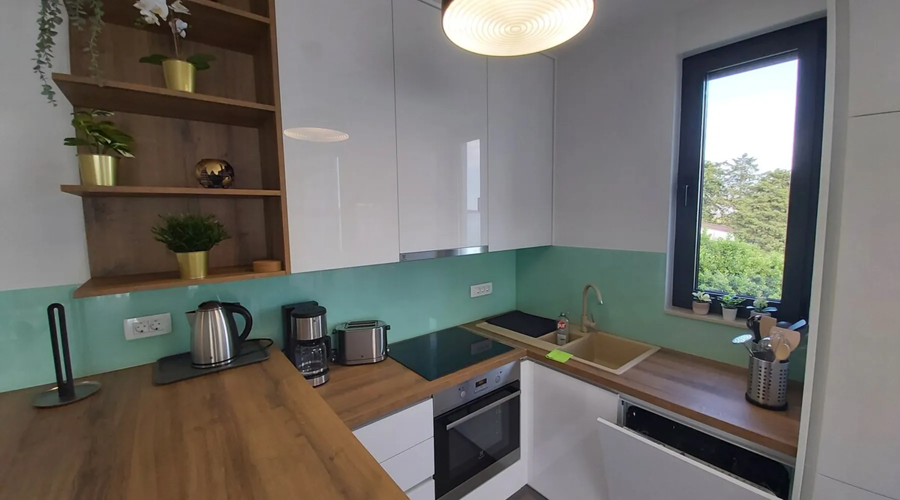 This modern, sun-drenched apartment offers a tranquil residential vibe alongside quick, easy access to the Turanj, Biograd an moru and Zadar. Admire the crisp, contemporary decor of the open-plan living space and take in the peaceful surroundings from the cute terrace. The space Just a short distance to transportation from this incredibly bright 3 bedroom apartment and two baths family size apartment, located in a wonderful luxury building in the charming neighborhood of Turanj. It's hard to miss the absolute beachfront view from the living room to the nearby islands of the Zadar archipelago. The open modern kitchen comes with lots of cabinets, wooden counters, and all WMF appliances. A luxurious king-sized master bedroom with a big closet and a just striking master bathroom with amazing tile floors, and a shower. Some of the gorgeous amenities in this choice building include private parking, a private balcony in the bedroom, a safe, Netflix, AC. Sorry, no pets allowed.