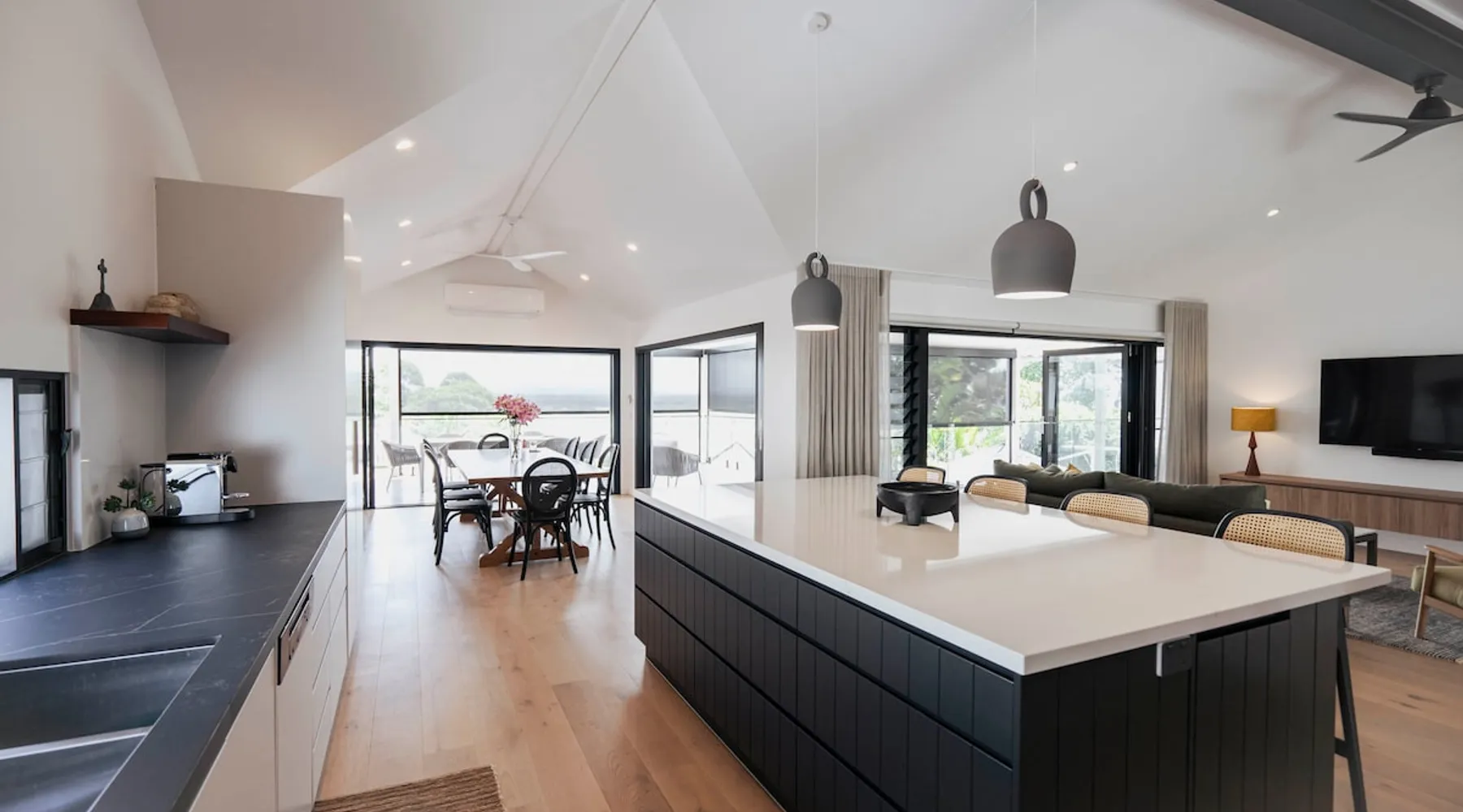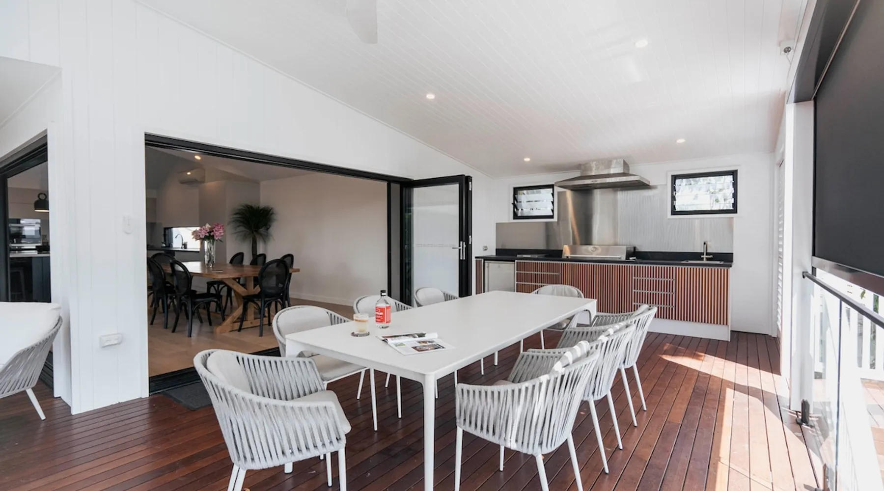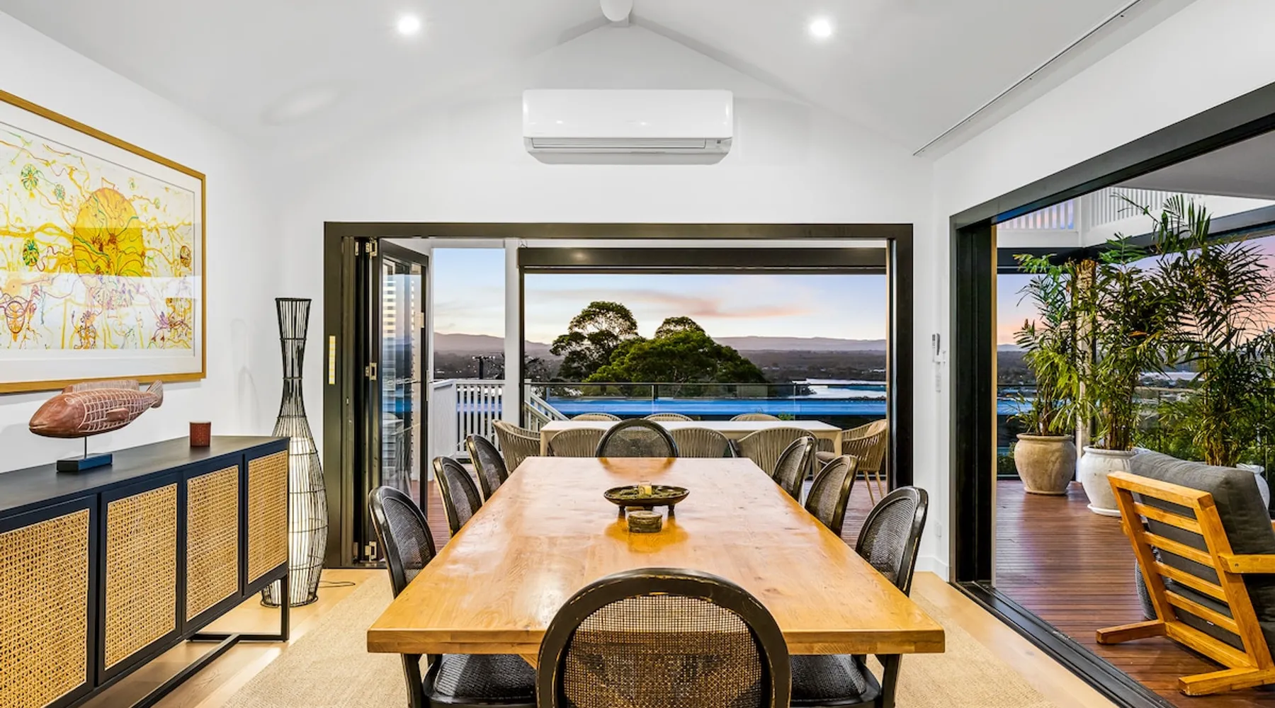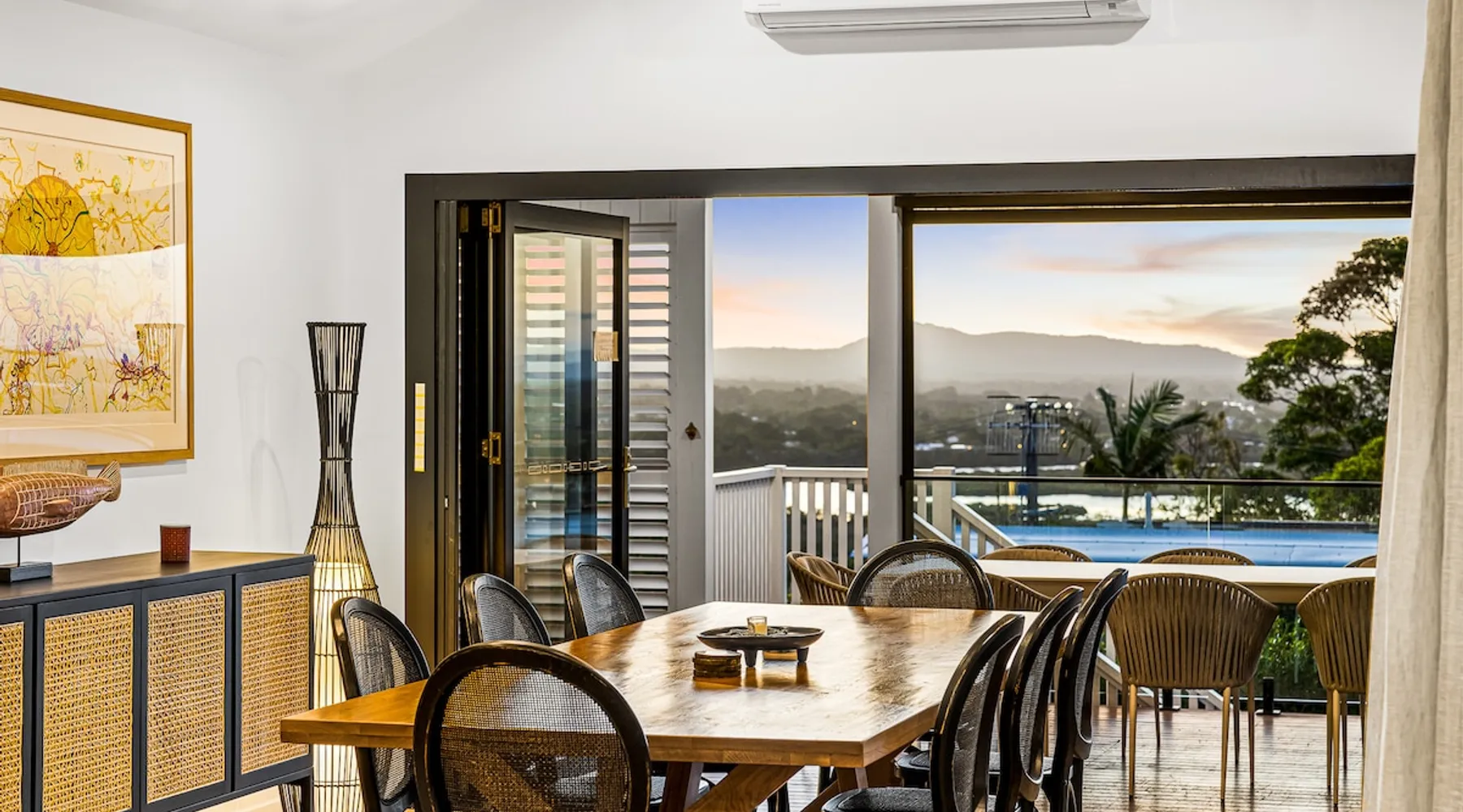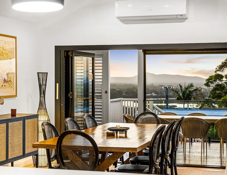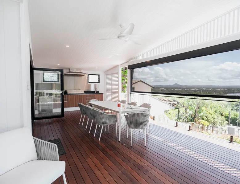 Our gorgeous newly-renovated property is perched up high in a superbly picturesque location. This stunning four bedroom family retreat offers breathtaking indoor-outdoor living, chic kitchen and dining area. Located in a quiet, residential street offering blue views over the Noosa River towards Noosa North Shore. Quality furnishings, five star luxury bedding and linens have been used throughout the home. We include wifi, board games, multiple smart flat screen TV's and heated private pool. The space *****Suitable for maximum 6 adults*****Not suitable for group bookings due to Noosa Council code of conduct and complaining neighbours. This stunning, recently renovated, modern home is located in a quiet residential street in Noosa Heads. Easy walk to all local amenities with Noosa Junction nearby (10 min walk) and Hastings Street and Main Beach located just over the Hill at Noosa. Enjoy a luxurious holiday with all mod cons and new luxury furnishings throughout. The upper level offers a light-filled spacious open-plan kitchen, living and dining space which flows out to a huge covered rear deck taking in those panoramic views. The kitchen is stylish with a large island bench and European appliances. The master bedroom, also with river views, is on this level and features a walk-in robe, access to the verandah plus an ensuite with a free-standing bath and generous separate shower. The lower level is home to three bedrooms, all with built-in robes and a large bathroom. An additional (3rd) half-bathroom is also on this level along with a spacious family room, the second of two living areas, which flows out to a large covered patio to the fully-fenced pool. There are two luxurious outdoor sun loungers and a large cantilever umbrella available for relaxing days by the pool. Highlights: - Four spacious bedrooms with 5-star hotel bedding and towels (including beach towels) - 2.5 bathrooms and a two-car, gated secure carport - Beautiful indoor-outdoor living with gorgeous water views to the north - Outdoor covered kitchen with built in family BBQ, inc drinks fridge - Stunning private heated pool with sunny fully-paved deck, and lush gardens - Split-system air-conditioning throughout, ceiling fans - Close to Noosa Junction and World famous Hastings Street - Multiple Smart TV’s & unlimited Wifi - Nespresso compatible coffee machine - Starter condiments to get you through your first night. THE PRIVATE POOL IS HEATED DURING THE WINTER MONTHS (1st April - 1st Oct). Please note a heated pool averages approx 27 - 28 degrees. It is designed to take the edge off the cold and will not feel like a bath Guest access As our guest you have access to the entire house and pool area. The garage is locked for owner use only. You can however park two cars in the car port with additional on street parking outside. Other things to note EXCESSIVE NOISE and Noosa Council's Code of Conduct. NO PARTY POLICY Not suitable for all adult groups - no exceptions Due to the bed configuration the house is suitable for *MAXIMUM 6 ADULTS IN TOTAL*. Strict Noosa Council bi-laws are now in place and must be adhered to. The house is not suitable for any type of event and noise restrictions apply to all holiday accommodation in the Noosa Shire. Please ensure that noise is kept to a minimum at all times, especially after the hours of 10pm. Noosa Council Local Laws & Noise Restrictions Our local council have passed new laws for all holiday accommodation properties in the Shire from the 1st of February 2022. The laws are mostly in regards to any type of excessive noise that will disturb our residential neighbours at any time but especially after 10pm at night. Excessive noise is deemed as loud talking, laughing or singing as well as loud music or screaming and shouting. Council have a 24/7 complaints hotline for residents of Noosa and a security team member will need to respond to complaints with 30 minutes, either via phone call to you or a visit to the property. If this occurs during your stay the charge for the call / callout will be submitted for payment to the main guest. Please remember these are not our individual host rules but are Council laws which we must respect to keep our holiday management rights for the property. These are reviewed annually and will be declined if complaints are made. We kindly ask you not to take your frustration out on our team. Noosa Council has recommended the use of outdoor areas be limited to reasonable hours to not impact on adjoining resident’s sleep and enjoyment of their homes. Limiting the hours of use of outdoor areas such as decks and balconies to generally no later than 9pm, particularly on weekdays, is advisable. Guests should then move inside and turn off outside music and outdoor lights.