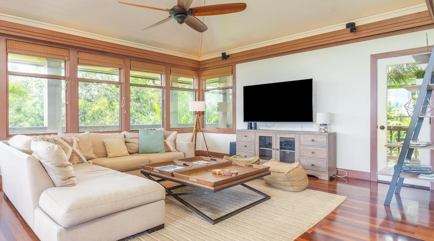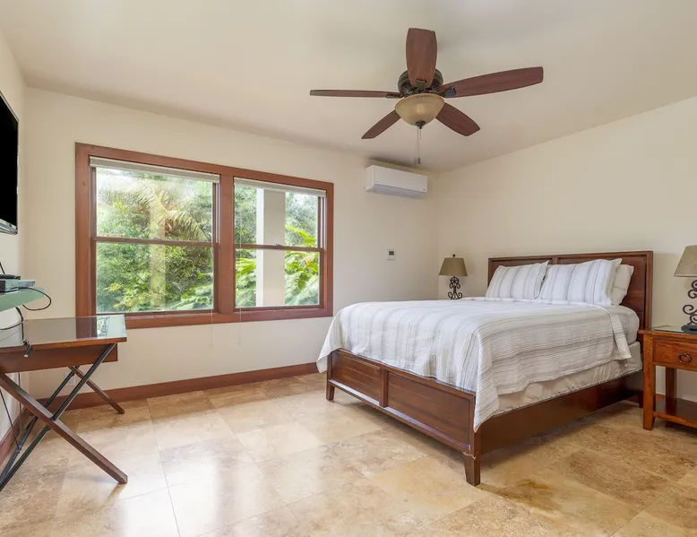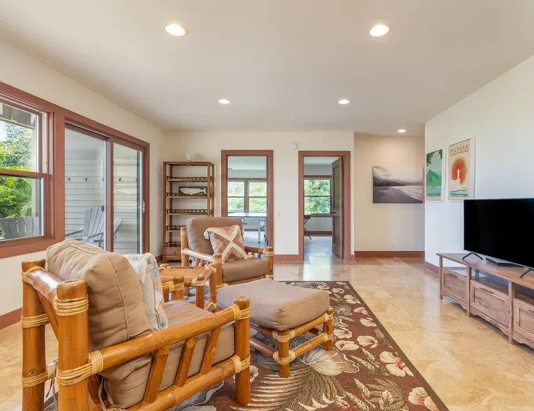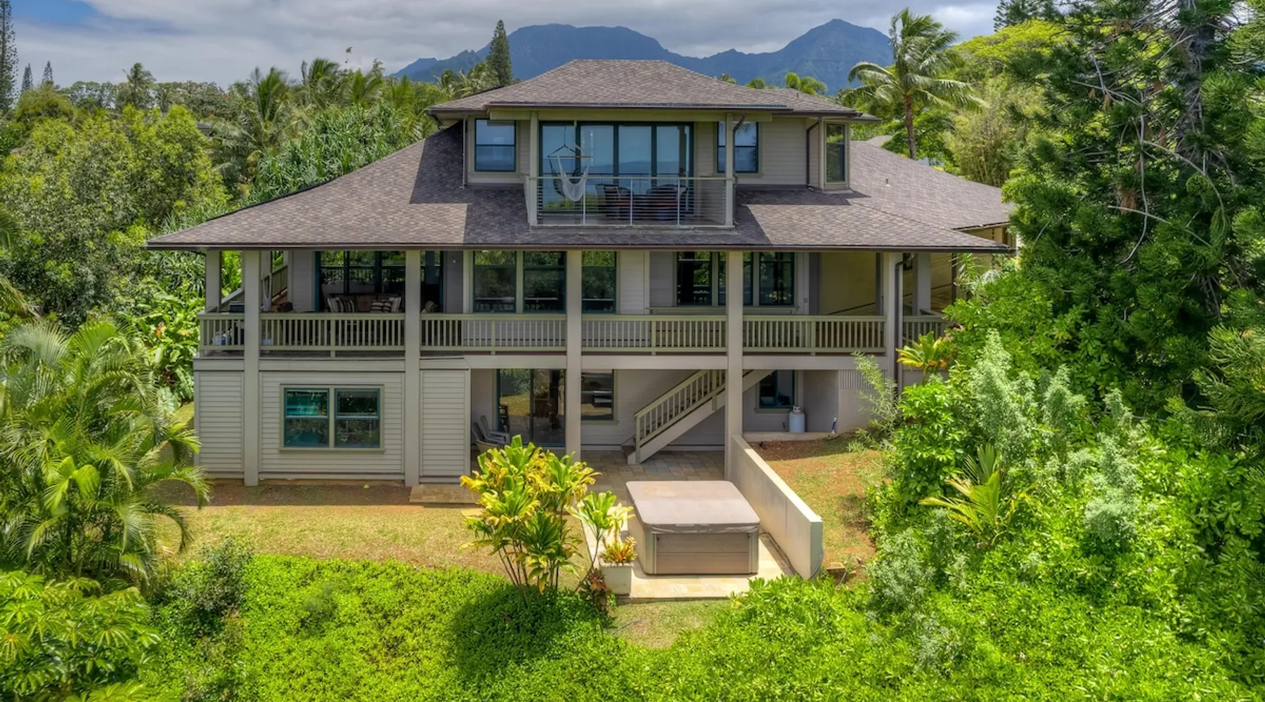 Hawaii Life Rentals presents Mauna Pua - A 7 bedroom Kauai Vacation Rental The space Located on the majestic north shore of Kauai and just minutes away from some of the most beautiful white sand beaches in the world, Mauna Pua offers the luxury of a five star resort with the comforts and privacy of home. Style and elegance take center stage with panoramic views overlooking the lush green valley and azure blue Pacific. This stunning, three-level home is designed to accommodate families or large groups with seven bedrooms. This home offers air conditioning in all the bedrooms & black out shades to keep you nice and cool during your stay! The grand master suite is located in the main house nestled among the trees with an expansive, romantic lanai, en-suite bath, sitting area, TV and lovely ocean views. The lower level boasts a spacious living room with a media center. Large glass doors open up to a welcoming lanai for friends and family to gather for festive barbecues, or relaxing with a tropical cocktail. The kitchen is a culinary artists’ delight with well appointed Kitchen Aid stainless steel appliances including a 6 burner gas stove, brand new refrigerator, large island and seated counter area. Serve up delicious island-inspired meals in the eight person dining area, with additional seating at the counter bar stools, if needed. Appliances have been recently upgraded!! Three guest rooms and bathroom are located just down the hall—two with queen beds and one bunk room with a double and twin bed. If more space is needed, the lower level offers a two bedroom, one bath suite with Queen bed and bunk bed (double +twin) in each bedroom, living area, TV (smart TV, no cable) and access to the outdoor gazebo with chaise lounge chairs for reading and relaxing. There’s even a separate garden suite with a private entrance, full size bath, kitchenette, TV, A/C, and full size bed. Venture out on the Princeville bike bath with one of the accompanying three bikes and stroll down to the nearby St. Regis or Happy Talk Bar and Lounge for sunset pupus and refreshing beverage. Beach lovers will enjoy visiting one of the many popular nearby beaches including, Hideaways Beach, Anini, Kalihiwai and Hanalei Bay. Home is equipped with Spectrum gigabit internet, good internet for those that are working remotely. Maximum: 4 cars allowed Third Floor: Master: King Second floor: Guest Room: Queen Guest Room: Queen Guest Room: Bunk (Double + Twin) First floor: Guest Room: Bunk (Double + Twin) Guest Room: Queen Garden Suite: Full size bed **THIS IS NOT A PARTY HOME** Parties are strictly prohibited and will result in immediate cancellation with no refund. Our neighbors are full-time residents and while they are respectful of common renters, a party will be reported immediately. We use a noise monitoring system to alert us if the noise is disruptive. Hawaii Life Rentals is a locally owned, licensed real estate company with rentals on Kauai, Maui, Oahu, and Hawaii. We offer on-island personal assistance and Concierge services. Rates do not include taxes, cleaning and applicable fees. Hawaii Life/VRBO bookings: Guests must sign a rental contract within 48 hours of booking to confirm the reservation. TMK - TA-174-392-7808-01 Registration Details 540130090000, TA-018-337-0752-01