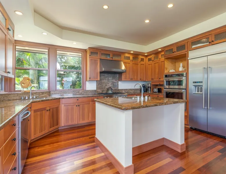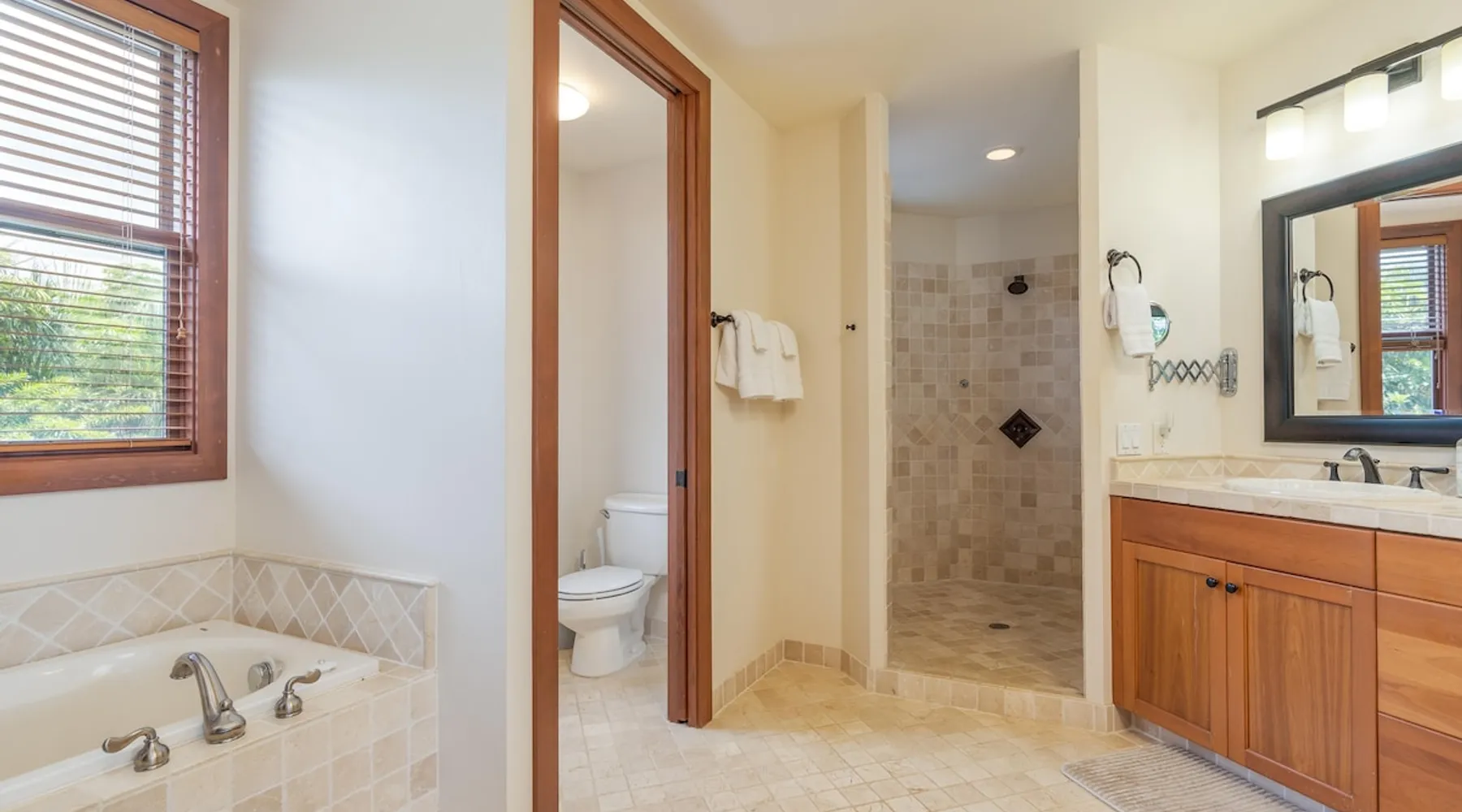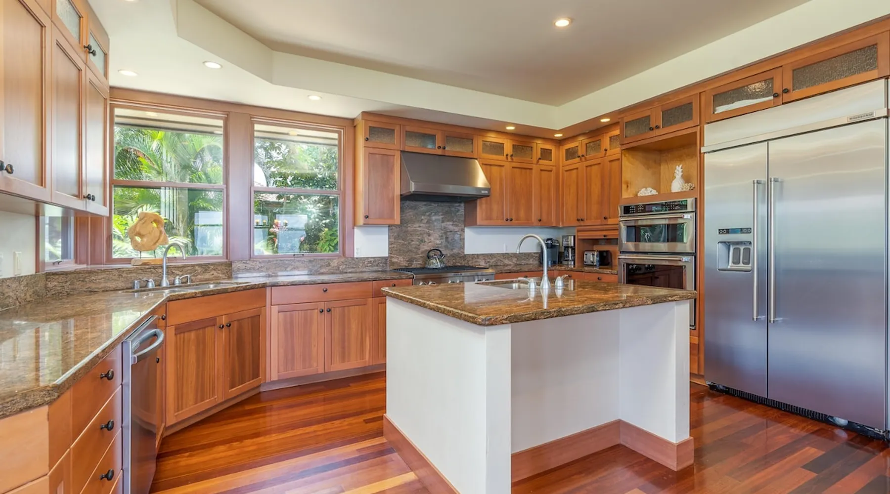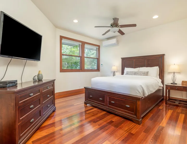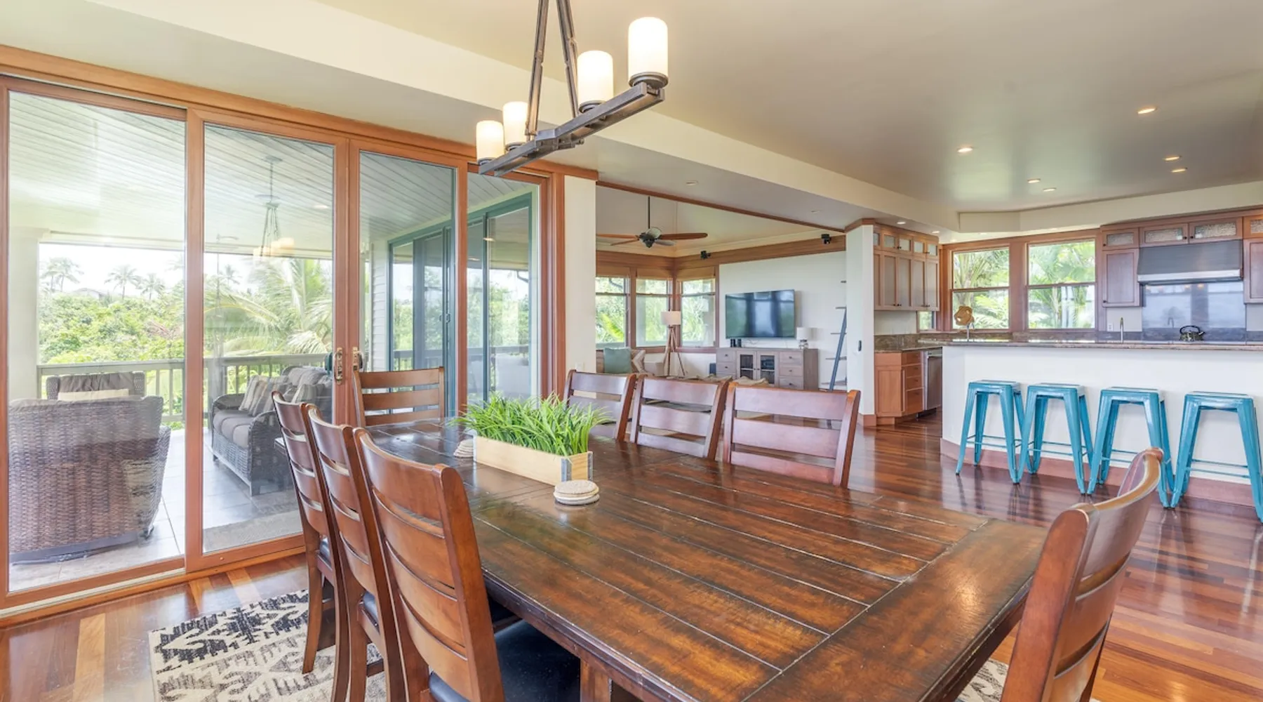 Hawaii Life Rentals presents Mauna Pua - A 7 bedroom Kauai Vacation Rental The space Located on the majestic north shore of Kauai and just minutes away from some of the most beautiful white sand beaches in the world, Mauna Pua offers the luxury of a five star resort with the comforts and privacy of home. Style and elegance take center stage with panoramic views overlooking the lush green valley and azure blue Pacific. This stunning, three-level home is designed to accommodate families or large groups with seven bedrooms. This home offers air conditioning in all the bedrooms & black out shades to keep you nice and cool during your stay! The grand master suite is located in the main house nestled among the trees with an expansive, romantic lanai, en-suite bath, sitting area, TV and lovely ocean views. The lower level boasts a spacious living room with a media center. Large glass doors open up to a welcoming lanai for friends and family to gather for festive barbecues, or relaxing with a tropical cocktail. The kitchen is a culinary artists’ delight with well appointed Kitchen Aid stainless steel appliances including a 6 burner gas stove, brand new refrigerator, large island and seated counter area. Serve up delicious island-inspired meals in the eight person dining area, with additional seating at the counter bar stools, if needed. Appliances have been recently upgraded!! Three guest rooms and bathroom are located just down the hall—two with queen beds and one bunk room with a double and twin bed. If more space is needed, the lower level offers a two bedroom, one bath suite with Queen bed and bunk bed (double +twin) in each bedroom, living area, TV (smart TV, no cable) and access to the outdoor gazebo with chaise lounge chairs for reading and relaxing. There’s even a separate garden suite with a private entrance, full size bath, kitchenette, TV, A/C, and full size bed. Venture out on the Princeville bike bath with one of the accompanying three bikes and stroll down to the nearby St. Regis or Happy Talk Bar and Lounge for sunset pupus and refreshing beverage. Beach lovers will enjoy visiting one of the many popular nearby beaches including, Hideaways Beach, Anini, Kalihiwai and Hanalei Bay. Home is equipped with Spectrum gigabit internet, good internet for those that are working remotely. Maximum: 4 cars allowed Third Floor: Master: King Second floor: Guest Room: Queen Guest Room: Queen Guest Room: Bunk (Double + Twin) First floor: Guest Room: Bunk (Double + Twin) Guest Room: Queen Garden Suite: Full size bed **THIS IS NOT A PARTY HOME** Parties are strictly prohibited and will result in immediate cancellation with no refund. Our neighbors are full-time residents and while they are respectful of common renters, a party will be reported immediately. We use a noise monitoring system to alert us if the noise is disruptive. Hawaii Life Rentals is a locally owned, licensed real estate company with rentals on Kauai, Maui, Oahu, and Hawaii. We offer on-island personal assistance and Concierge services. Rates do not include taxes, cleaning and applicable fees. Hawaii Life/VRBO bookings: Guests must sign a rental contract within 48 hours of booking to confirm the reservation. TMK - TA-174-392-7808-01 Registration Details 540130090000, TA-018-337-0752-01