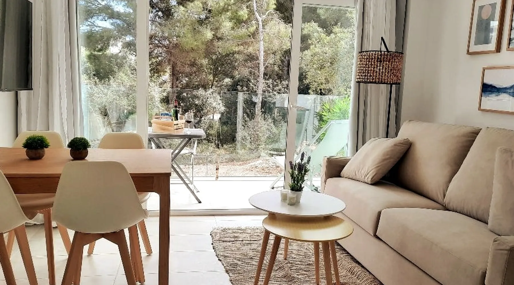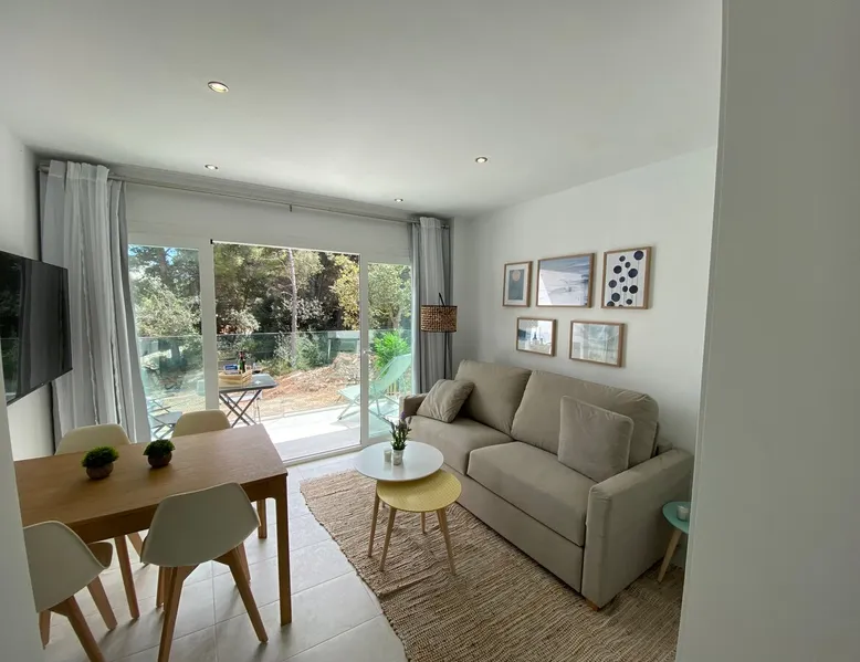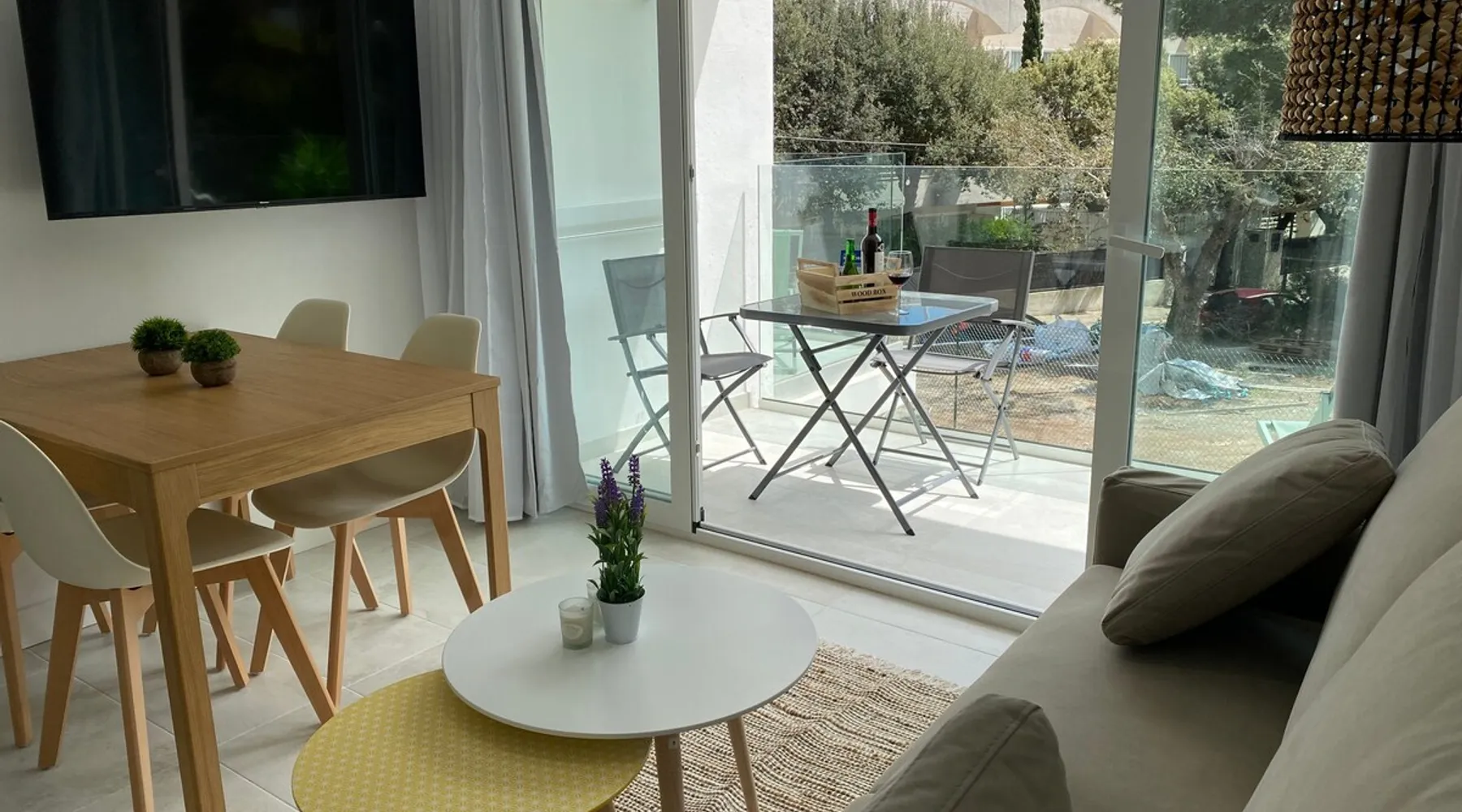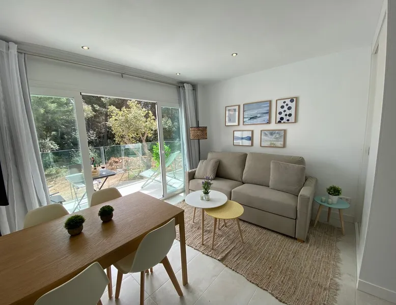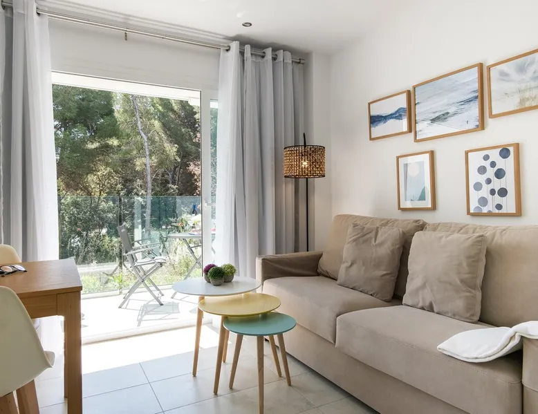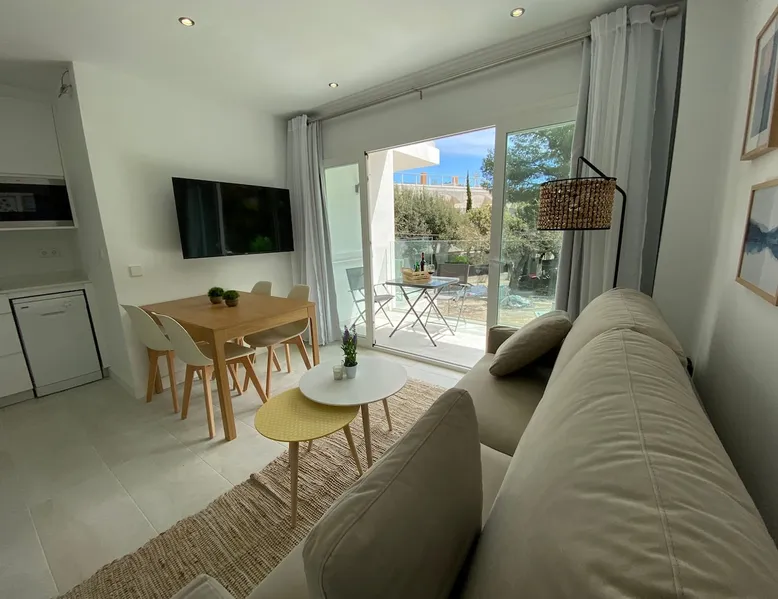 Accommodation suitable for a couple: a bedroom with nice deck next to the cozy Canyamel beach. Living room with sofa bed (1.60cm) and bedroom with 2 beds (90cm), very bright, fully equipped kitchen (dishwasher, washing machine, Nespresso etc.), full bathroom. Sunny balcony overlooking the forest. AC and heat. The space Private building with swimming pool and impressive terrace with the best views of Canyamel. Private parking. Several golf courses and beach are very close. For golf lovers: 4 golf courses at your disposal near the accommodation, all excellent for practicing your favorite sport Nearest Canyamel Golf Mallorca (6 Kms) Pula Golf Resort(8.3Kms) Capdepera Golf (10.5 Kms) Son servera Golf Club (15 Kms) MONTHLY WINTER SPECIAL PRICE: Aimed particularly at digital nomads, this workspace is perfect for living while enjoying the Mediterranean lifestyle on the beautiful island of Mallorca. Great apartment, clean, comfortable and very well located 5 min walk from the beach, supermarket, restaurants. Large bright living room and double bedroom, equipped kitchen (dishwasher, washing machine, Nespresso etc.), full bathroom. With air conditioning and heating. WIFI: 800 MB of high-speed fiber optic. Private balcony Excluded long-stay services: -Cleaning every 15 days by the guest (40€) - Extra bedding change service (on request -Consumption of light (Deposit of €200 requested from which the electricity costs will be deducted after the stay) THE ACCOMMODATION: Modern apartment in a recently renovated building located in Canyamel, 150m from the beach. It has a private pool, gardens with sun loungers and chairs, rooftop with stunning views and parking. Living room: Sofa bed with comfortable viscoelastic mattress (160 cm). Dining room with extendable table and Smart TV. Bedroom: 2 Single Beds (90cm) with memory mattress, built-in wardrobes, overlooking a typical pine forest in the area. Crib available. Terrace: 7 m2, dining room and folding chairs, and "chaise lounge" where to relax . Kitchen: Fully equipped. Large refrigerator, dishwasher, microwave-grill, washing machine, induction hob, Nespresso, etc. Bathroom: Full bathroom with Italian shower. Equipped with air conditioning and heating. OTHER DETAILS TO NOTE: Airport pick-up service available upon request. -Citytax: 2€ / person / night (over 16 years) from May to October. 0,50€ / person / night (over 16 years) from November to April Guest access Community pool and elevator. Limited parking spots. Registration Details ESFCTU00000702300069402700000000000000000ETVPL/151900