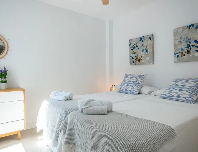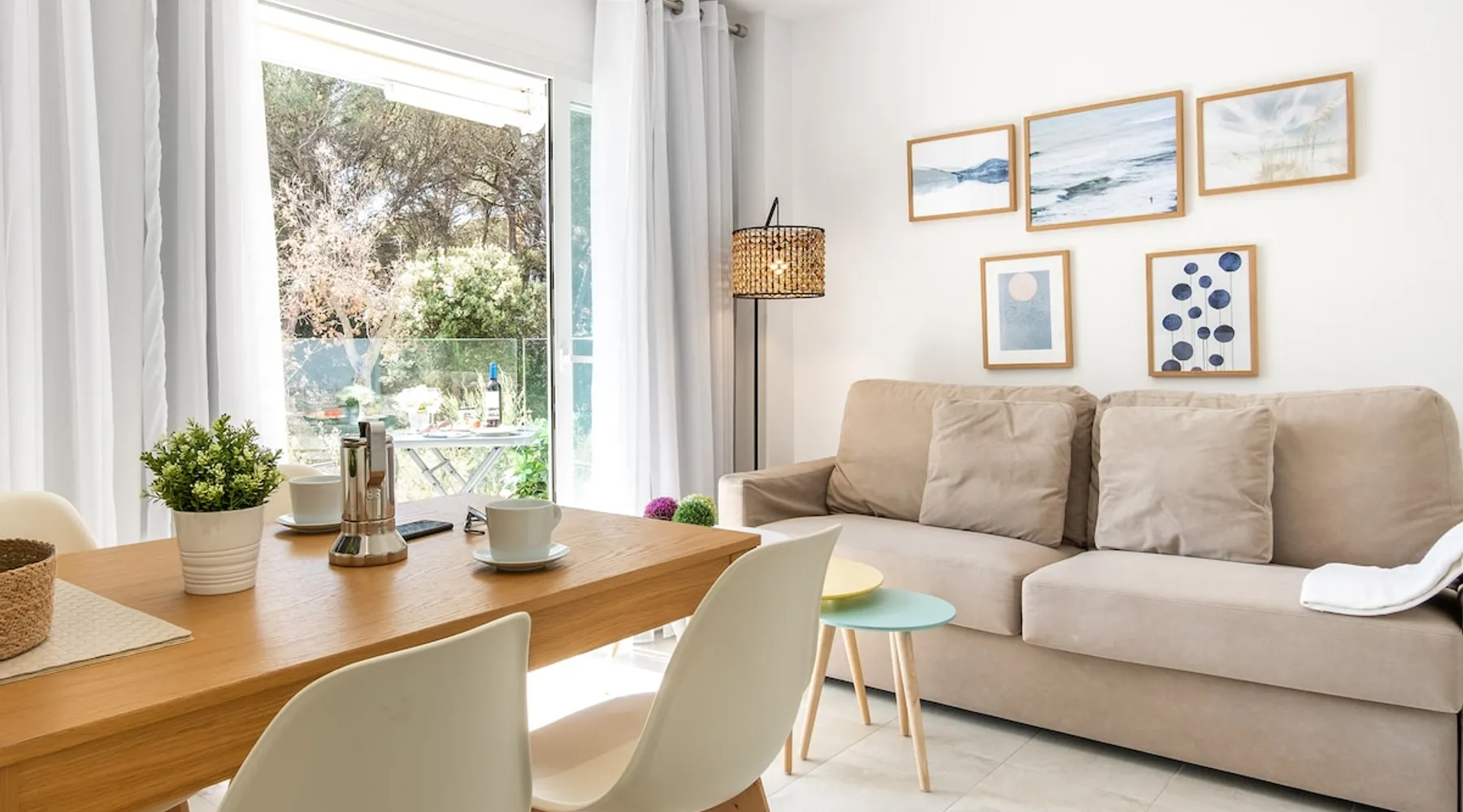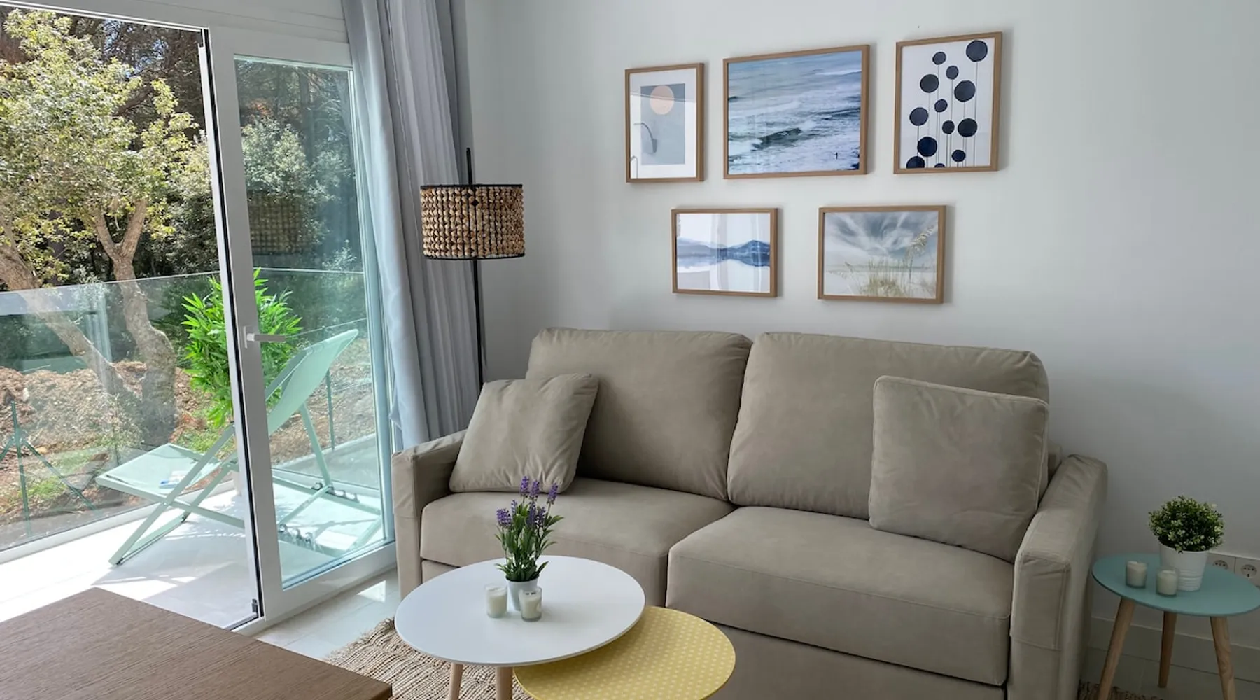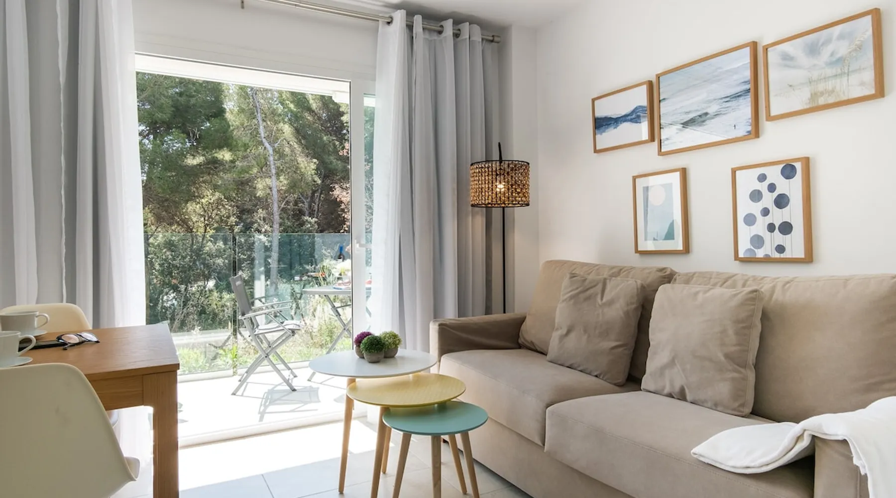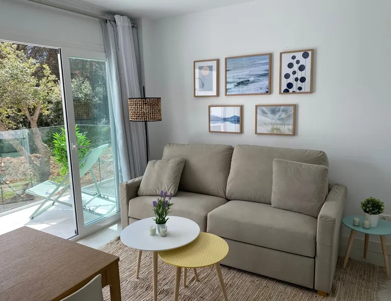 Accommodation suitable for a couple: a bedroom with nice deck next to the cozy Canyamel beach. Living room with sofa bed (1.60cm) and bedroom with 2 beds (90cm), very bright, fully equipped kitchen (dishwasher, washing machine, Nespresso etc.), full bathroom. Sunny balcony overlooking the forest. AC and heat. The space Private building with swimming pool and impressive terrace with the best views of Canyamel. Private parking. Several golf courses and beach are very close. For golf lovers: 4 golf courses at your disposal near the accommodation, all excellent for practicing your favorite sport Nearest Canyamel Golf Mallorca (6 Kms) Pula Golf Resort(8.3Kms) Capdepera Golf (10.5 Kms) Son servera Golf Club (15 Kms) MONTHLY WINTER SPECIAL PRICE: Aimed particularly at digital nomads, this workspace is perfect for living while enjoying the Mediterranean lifestyle on the beautiful island of Mallorca. Great apartment, clean, comfortable and very well located 5 min walk from the beach, supermarket, restaurants. Large bright living room and double bedroom, equipped kitchen (dishwasher, washing machine, Nespresso etc.), full bathroom. With air conditioning and heating. WIFI: 800 MB of high-speed fiber optic. Private balcony Excluded long-stay services: -Cleaning every 15 days by the guest (40€) - Extra bedding change service (on request -Consumption of light (Deposit of €200 requested from which the electricity costs will be deducted after the stay) THE ACCOMMODATION: Modern apartment in a recently renovated building located in Canyamel, 150m from the beach. It has a private pool, gardens with sun loungers and chairs, rooftop with stunning views and parking. Living room: Sofa bed with comfortable viscoelastic mattress (160 cm). Dining room with extendable table and Smart TV. Bedroom: 2 Single Beds (90cm) with memory mattress, built-in wardrobes, overlooking a typical pine forest in the area. Crib available. Terrace: 7 m2, dining room and folding chairs, and "chaise lounge" where to relax . Kitchen: Fully equipped. Large refrigerator, dishwasher, microwave-grill, washing machine, induction hob, Nespresso, etc. Bathroom: Full bathroom with Italian shower. Equipped with air conditioning and heating. OTHER DETAILS TO NOTE: Airport pick-up service available upon request. -Citytax: 2€ / person / night (over 16 years) from May to October. 0,50€ / person / night (over 16 years) from November to April Guest access Community pool and elevator. Limited parking spots. Registration Details ESFCTU00000702300069402700000000000000000ETVPL/151900