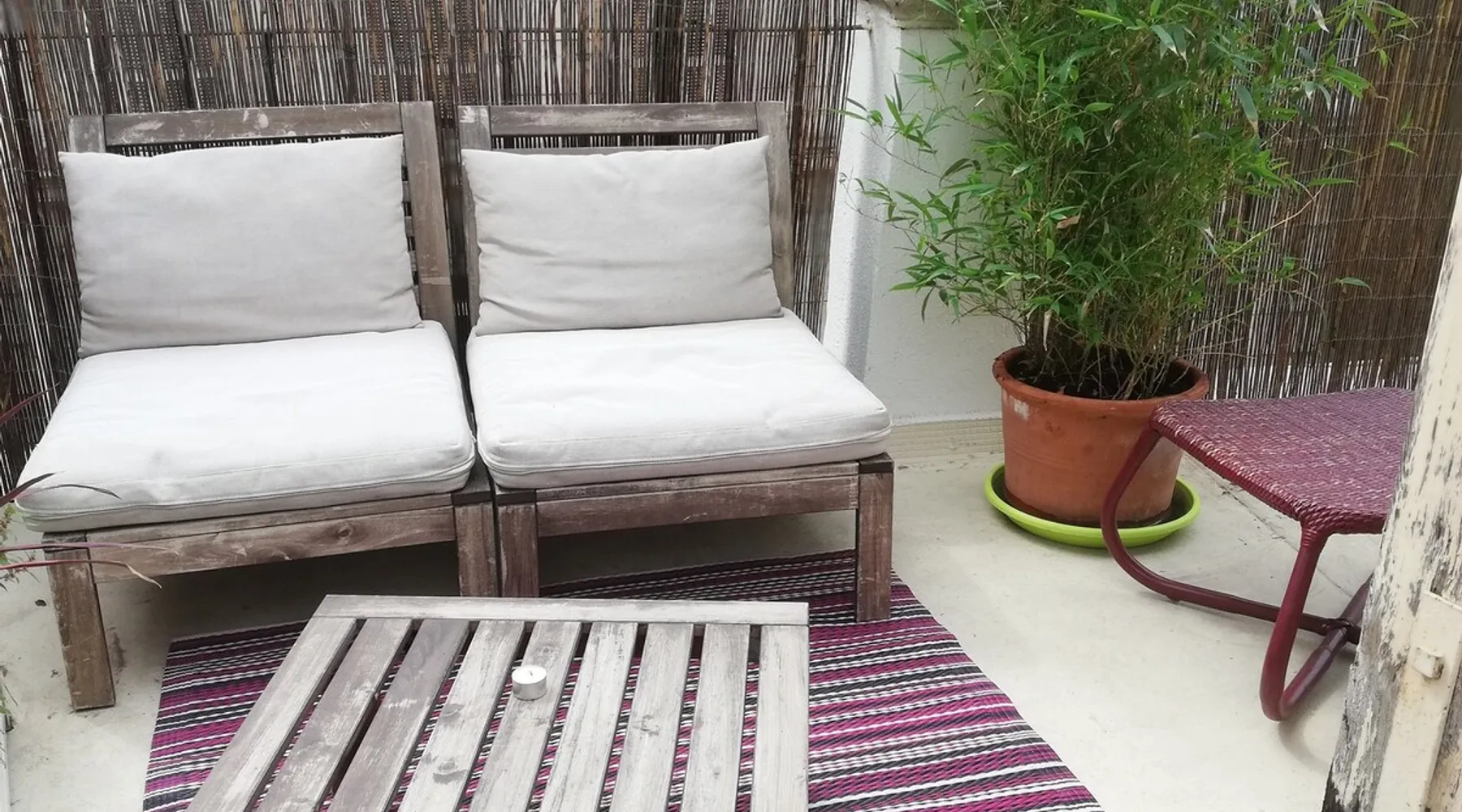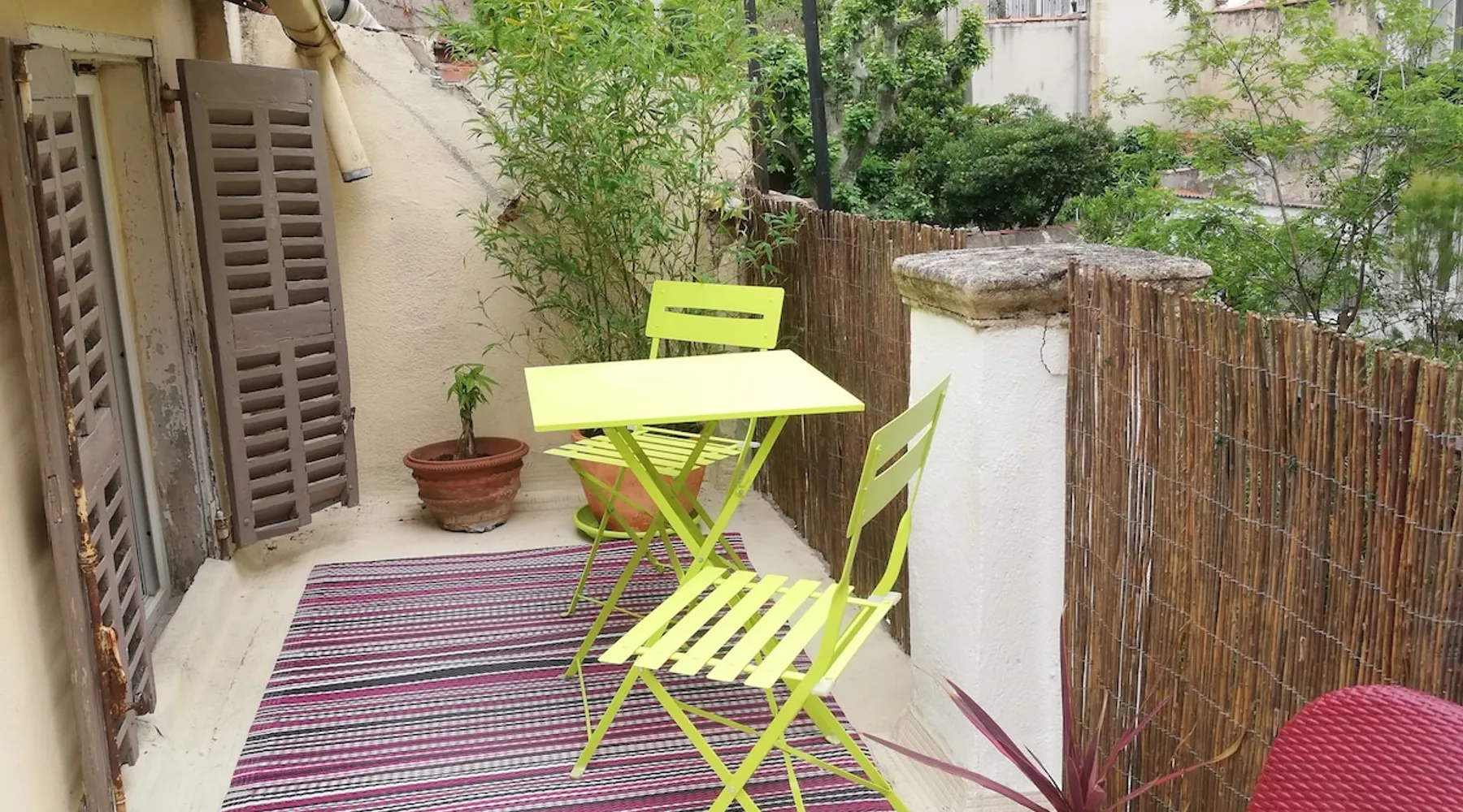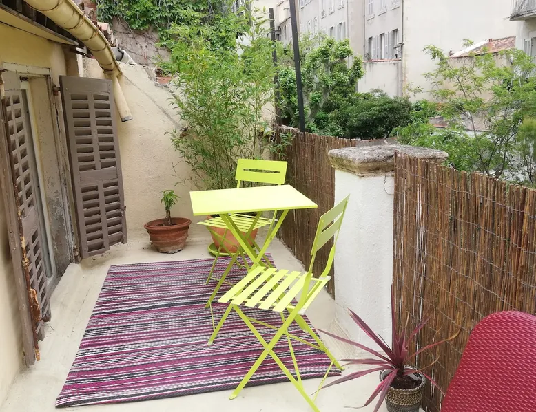 Charming T1 with large private terrace of 25 m2 sunny throughout the day, awaits you for your holiday in the heart of downtown! 10 minutes on foot from Saint Charles station and the Old Port! Metro 1 Reformed at the bottom of the street . Renovated apartment and new amenities with double glazing 2nd and top floor of a small Marseille building