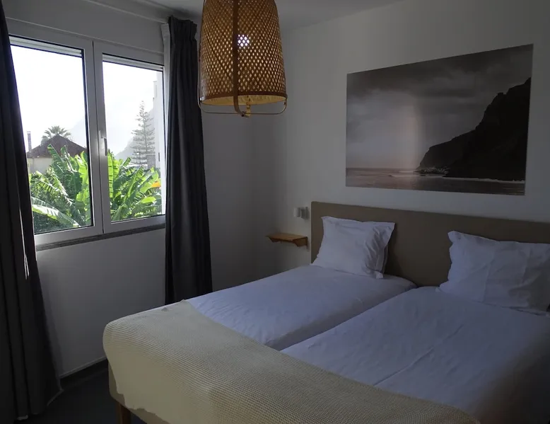 A remote place, in a beautiful setting on the north coast of Madeira Island, 2 minutes walk from the beach. The surf is an extra. The space Madeira Surf Camp is a guesthouse in the heart of the village and historic area of Porto da Cruz, Madeira. We completely renovated the property in 2020 in order to accommodate those who visit us in comfort and safety, in a centenary house. Here you can have your privacy and, if you want, hang out with us and the other guests. The rehabilitation of the terrace has made this space the ex-libris of the property. With a sunbathing solarium, a shower to refresh yourself, and a barbecue for outdoor meals. This in an exotic setting in the northeast of Madeira Island, with 360º views over the sea and mountains surrounding the village. On the lower floor, there is a fully equipped kitchen and living room in a single room where you can have your meals or relax on the sofa. There is also a complete bathroom on this floor, and the kitchen and living room are shared with all guests. Madeira Surf Camp was founded by local surfers André Rodrigues and Hélder Vieira who wanted to offer to other surfers, the local waves, nature, gastronomy and culture of the island. ROOM Two single-beds room. Oriented to the East, you can enjoy the sea view that the room has. Completely renovated in 2020, you'll find the comfort you're looking for your rest. The room has storage for your belongings and bathroom with shower. AREA The village of Porto da Cruz is located on the northern coast of Madeira Island, between the mountains and the Atlantic Ocean. The beaches of Porto da Cruz are especially suitable for beginner surfers as they are the only ones with volcanic black sand with surfable waves. Porto da Cruz still preserves its traditions, with a relaxed lifestyle and a very hospitable local culture. In the area, there are several restaurants where you can taste the regional gastronomy, such as fresh fish, seafood and other traditional Madeiran dishes, as well as wines and spirits. The village does not have a very busy nightlife like other surfing destinations in Portugal. However, if you are looking for a closer contact with nature and a relaxed lifestyle, then this is your surf camp. Madeira Surf Camp is surrounded by banana plantations, vineyards, and it is only 15 km from the International Airport and 30 km from the centre of Funchal. The beach and all the necessary services are just a few meters from the Surf Camp. Being located in a rural area, there are several outdoor activities that you can do, such as canyoning, track running, mountain biking, paragliding, fishing, karting, among others. SURF The village is surrounded by volcanic black sandy beaches, ideal for those who want to take surfing lessons and learn to surf in Madeira Island. In Madeira Island there are almost no crowds, in fact not many local surfers. The north coast has the highest consistency and exposure to the North Atlantic swells and the widest range of waves and various levels of surfing. The island offers a vast array of waves just minutes away, from long and soft waves suitable for beginners to extreme surfing conditions for "big wave surfers". For beginner surfers, the most popular spots in Porto da Cruz are all black sand: Alagoa - A small bay, just two minutes walk from the surf field and the surf school. Ideal for learning and surfing lessons as it is protected from the big waves. Maiata - It is about ten minutes away from the surf camp. It is the largest and most beautiful sandy beach in Madeira, it can withstand waves of up to 2 metres. Contact us to make a special price for accommodation + surf lessons one week pack. GETTING AROUND Once in Madeira, leave the airport on the motorway towards Santana, just follow the signs to Porto da Cruz. Madeira Surf Camp is located right in the middle of the village of Porto da Cruz. When you reach the exit to Porto da Cruz, take the right (2nd exit) at the roundabout. Go directly to the centre of Porto da Cruz village, on the regional road for about 3 minutes. Arriving at the village, take the 2nd exit where you will find the blue house. You can also reach Porto da Cruz using public transport, the bus company is called SAM and leaves from Avenida do Mar in Funchal or the airport terminal. The bus numbers are 53, 78 and 208. The best option to reach the property is the transfer. Ask us to book one with our local partners. It is cheaper than the taxis you find at the airport. If you rent a car, any navigation application will easily find the address. ACCESS TO PROPERTY You have access to all common areas of the property and your room. INTERACTION We are always available to help or answer questions. We do our best to reply to all requests. We also have an app for guests with all the important information about the property and other useful information for your stay. OTHER OBSERVATIONS - Check-in hour must be scheduled in advance. If it is not scheduled within a maximum of 48 hours before, guests will be subject to the availability of our team. - Bookings made on the day of check-in are subject to confirmation of check-in time. In this case, you should contact us before finalising your booking. - According to Portuguese law, all guests are required to present a valid ID. (passport or identity card). RULES We want you to feel at home. We do not ask for more than respect for neighbours and care for the property, in addition to not smoking inside the house or the room. Registration Details 148908/AL