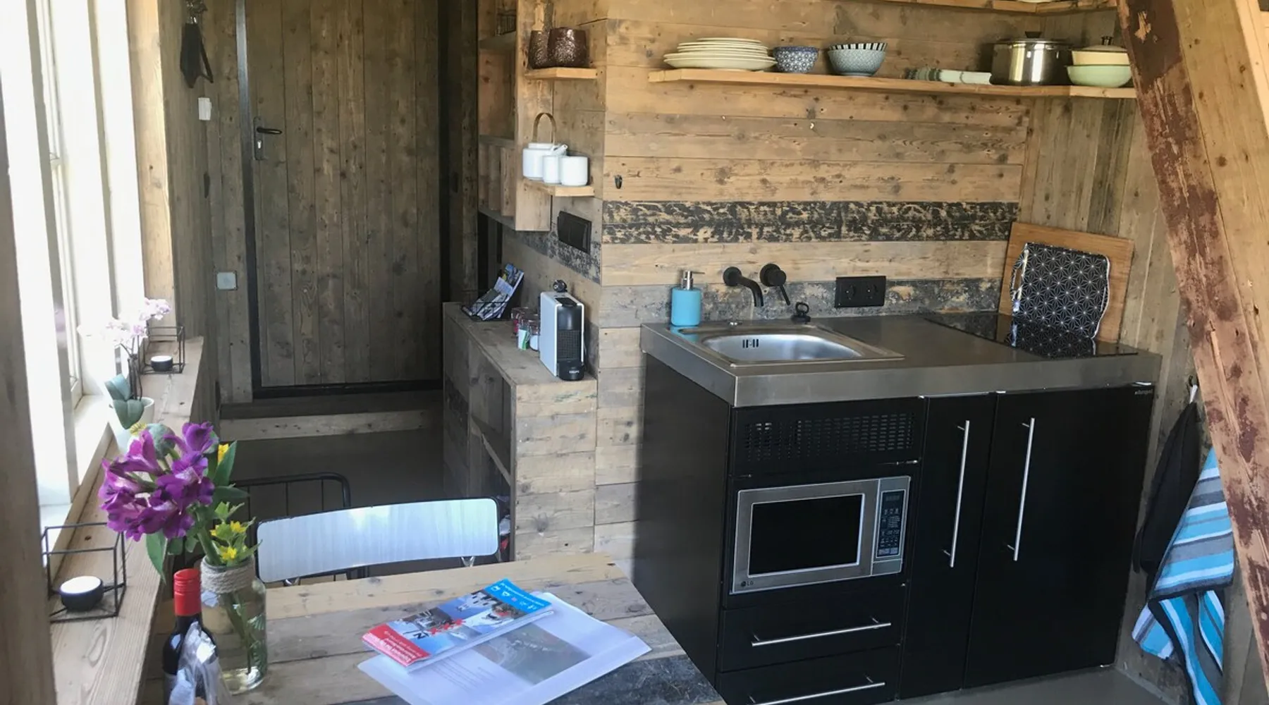 REOPENED FOR BOOKINGS! Our newly built (2018) wooden tiny house combines cozy charm with luxurious comfort. Nestled in a private area, it offers plenty of space around the house and opens up to a vast grassy field — a protected bird sanctuary — right outside your glass doors. Perfect for couples or friends looking to unwind. Small pets are welcome upon request. If you're in need of a break from a hectic lifestyle or simply want to relax after a busy day in Amsterdam, this is the ideal spot. The space Where is it located? Durgerdam is a charming village in the northern part of Amsterdam. It consists of just one street — the Durgerdammerdijk — which is actually a historic dyke, originally built to protect the Netherlands from high water levels. This authentic rural area, once a traditional fishing village, offers a peaceful escape while still being close to the vibrant city of Amsterdam. Easily accessible from Amsterdam Airport Schiphol (23 km), you’ll find us just off the A10 ring road, exit S115 'Durgerdam'. The tram/busstation is 10 minutes away by bike. From there the metro will bring you straight to Amsterdam city center. By bike the center is beautiful 25-30 minutes ride. By car 10 minutes (but parking is paid) So, Durgerdam is officially part of Amsterdam, but it lies just outside the busy city. In Durgerdam you'll find an exceptionally good and highly rated restaurant: De Mark - Durgerdam. Just 5 minutes away is De Landmarkt — a supermarket known for its delicious delicacies and high-quality products. About the Tiny House Your tiny house is tucked away at the end of a spacious garden, behind a historic dyke house. You’ll have your own entrance, ensuring privacy throughout your stay. Inside the 20m² space, you’ll find everything you need for a comfortable and cozy getaway. The small but well-equipped kitchen includes: Induction cooktop (2 burners) Fridge with a small freezer compartment Electric kettle Nespresso machine All necessary cookware, utensils, and tableware are provided. (including tea, sugar, salt, pepper, cooking oil) The modern bathroom features: A relaxing rain shower Sleeping arrangements A built-in loft with a solid wooden staircase gives access to a cozy double mattress (140x200 cm) with 1 duvet. There's also a sofa in the living area suitable for one person. An extra single duvet is in the tiny house if you do not want to share the bed/duvet. Planning to stay with more than two guests? Please contact me in advance to discuss the options Parking & Public Transport Durgerdam is a protected heritage area, so parking on the dyke is only for residents. However, there is a free parking area about a 12-minute walk away. I’m happy to lend you two bicycles so you can easily park there and ride back to the house. If you prefer to park closer, there is a paid parking area just a 4-minute walk from the house. Loading and unloading in front of the house is allowed — you may off course briefly stop on the dyke to drop off or pick up your luggage. By bike, you can reach Central Station, the Rijksmuseum, or Rembrandtplein in about 25 minutes. By car, it takes just 25 to 30 minutes to get to the Zaanse Schans, Volendam, or the North Sea beach.1 Getting here from the airport Amsterdam Airport Schiphol is 23 km away — about 22 minutes by car. An Uber typically costs between €40 and €75, depending on the time of day. A train ticket from Schiphol to Amsterdam Central is less than 10 euro. Of course, I am happy to give you advice about transportation. Guest access If you enjoy cycling, you should definitely explore Amsterdam by bike. You’re welcome to use the two basic bikes (with locks) that come with the house — perfect for a relaxed ride into the city. If you prefer newer, faster, or electric bikes, it's best to rent those nearby. I am sorry to say that the Tiny House is hardly accessible for wheelchairs. Other things to note - Welcome to bring a (small) animal, please contact me in advance - if you want to stay in the Tiny House for a longer time and/or for single use, contact me for adapted rates - bedlinnenn and towels are included in the rate. - The Tiny House has electronic heating integrated in the floor, so also in wintertime it is a cosy place. Registration Details 0363 6B56 FCA6 1E4C A248