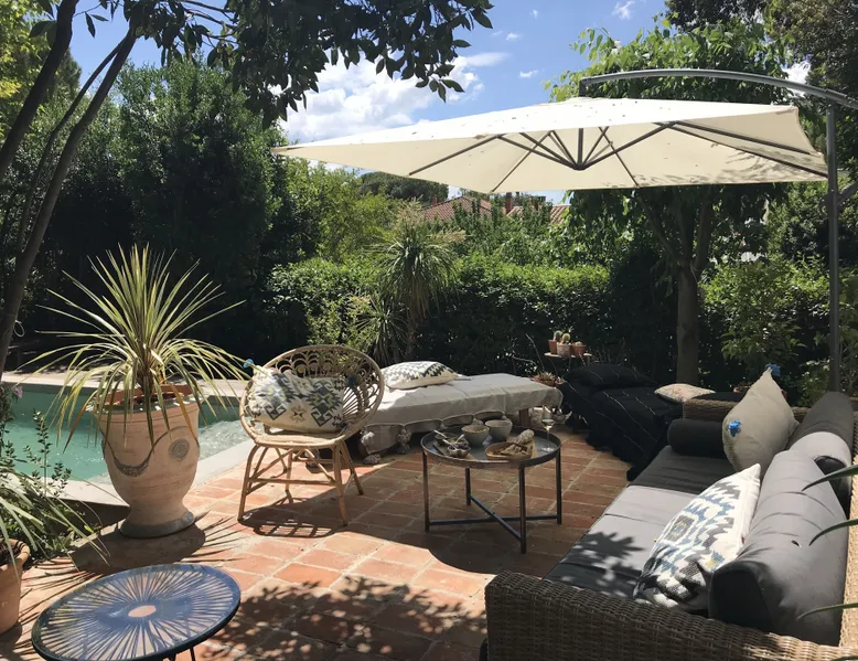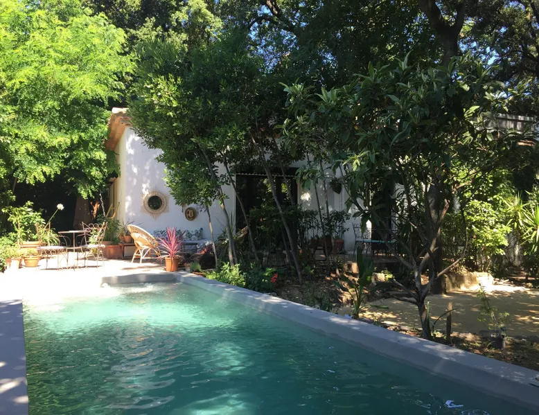 The house has the advantage of being in the city center, very close to the historic center and still be in the middle of a natural park, surrounded by a dozen oak trees that provide greenery, calm and tranquility .... You have access to the entire property, 1200 m2 with swimming pool, plancha, 2 free parking in the property, a large living room, kitchen, 3 bathrooms, 4 bedrooms and washing machine, dryer. House located in front of a tram stop, 7 min by tram from the historic center (3 stops), 5 min by car. There is a very large organic market on Tuesdays and Saturdays at 2 stations. Large area accessible by foot with tobacco, bakery, pharmacy ... Beaches 20 minutes by car, Access to beaches by tram.