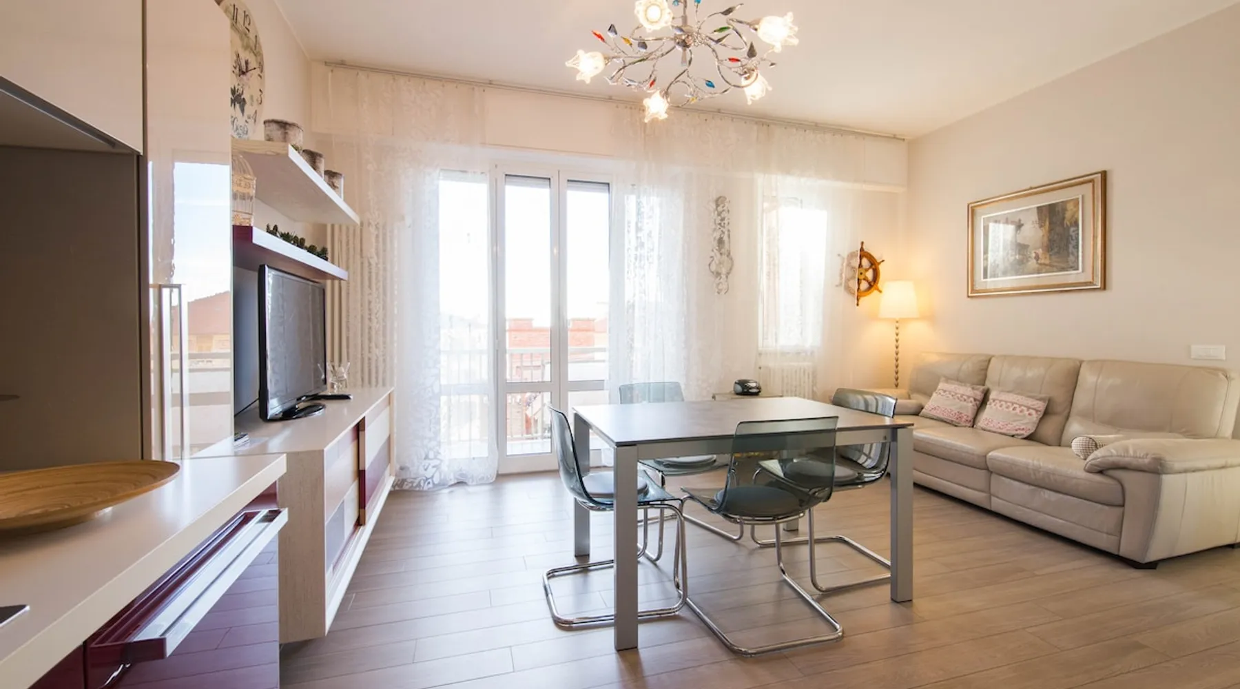 Apartment for max.5 people: 2 bedrooms, 2 bathrooms, bright living-room with sea view, air condition and 3 balconies. Bright apartment with sea view in front of the pier of Finalpia: Newly renovated apartment decorated in a modern and friendly way. The house is spacious and practical, very bright thanks to the double exposure and three balconies. The space Located in a beautiful location in Corso Europa in front of Finalpia’s dock and close to the beaches and the district of Finalpia, cozy apartment with sea view newly renovated and furnished with care. The modern apartment is located on the fourth floor of the building (with elevator) and offers all the comforts and services needed to make your stay pleasant and memorable. The house is spacious and practical, very bright thanks to the double exposition and three balconies. The apartment is equipped with air conditioning. The apartment consists in: - 1 bedroom with a double bed and a balcony - 1 bedroom with a double bed, an armchair bed and a balcony with sea view - 2 bathrooms each with toilets and shower The living area consists on a large bright area overlooking the balcony with sea view. The kitchen is fully equipped with dishwasher. In the living area there is a dining table. We recommend this property for the proximity to the beaches and the walking distance with the center of Finale (5 minutes walking). The apartment is located in a silent and privacy contest due to the internal courtyard that guarantees peace and relax to our guests. The apartment has a washing machine. We will provide bed linen and bath towels. New linen for bed and bath on request by payment. We have cot and highchair for babies. A cellar space is available to leave bikes. Guest access Guests will have access to the all apartment. We provide a free space equipped with double security gate for your bicycles during your stay, shared with other guests of our apartments. THEREFORE WE REMIND YOU THAT IT IS STRICTLY FORBIDDEN TO BRING BICYCLES INSIDE THE APARTMENT. Thank you for your kind cooperation. Registration Details IT009029C2J3AQN8A5
