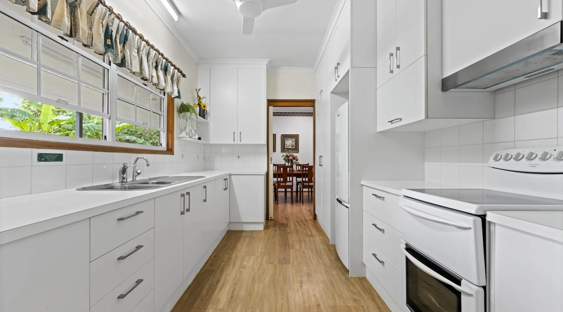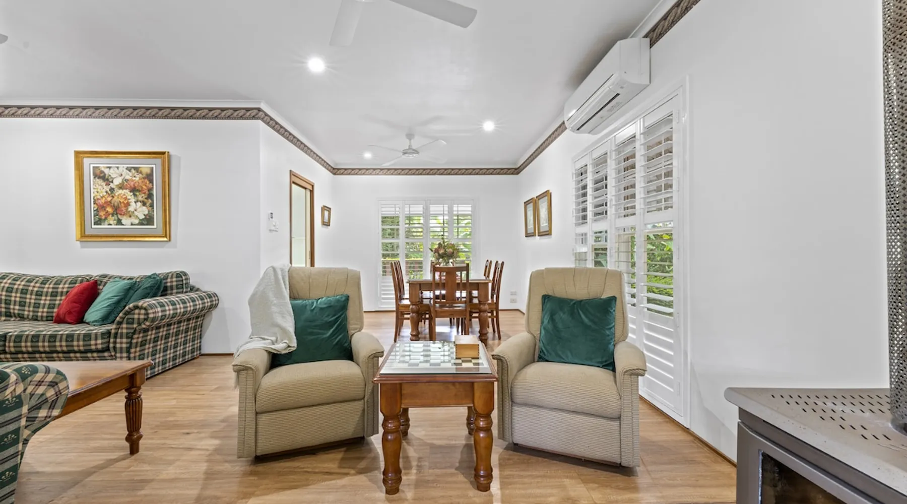 This Luxury 3 Bedroom Cottage is located a short 3 minute walk to the centre of Yungaburra - Atherton Tablelands. It's stylish, elegant & peaceful with natural beauty & wildlife that you're sure to enjoy. Perfect for a couple, families or to share with your friends with breathtaking views of the pastures with cattle, the Yungaburra State Forest, home of the famous Curtain Fig Tree full of lush, green, colourful and fragrant gardens. The space - Perfect for couples, families and friends - Two Bathrooms/Ensuite - Comfy King and Queen sized beds, the King bed can split into two single beds and two single beds - Main Bedroom has a TV - If you are requiring additional beds, there is a sofa bed available - Beautifully appointed Living and Dining Room - Fast free WiFi - Large Flat screen TV with Foxtel, Netflix - Cosy wood fireplace - Modern Kitchen - Nespresso Coffee Machine - Full Laundry Facility - Built Eco friendly for ventilation and solar heating - Large outdoor back patio and veranda in the front all furnished with stunning views - Undercover car parking for 1 vehicle Guest access This property is located at 3 Elm Street, Yungaburra, but you will need to check in and collect the keys at Blue Summit Hideaway, 22 Gillies Highway, Yungaburra. Self-check-in is possible, prior to arrival we will send you our pre-arrival check-in. Please complete and let us know your arrival time. Check-in is from 2pm and call us to arrange a contactless check-in. Other things to note Prices are calculated by the number of people and number of Bedrooms required, it is important to indicate the number of people staying and how many Bedrooms are required. Birds n Bloom is perfect for Couples, Families or Friends, but we can also accommodate Children. Children must be declared when booking regardless of whether they are sharing a bed with the Adults, sleeping on Guest supplied bedding, or if the bedding is to be provided by us. Any guests who wish to bring an infant that requires a porta cot with sheets/blanket and/or a highchair will be charged an extra fee of $20. This additional cost will not show in your AirBnB reservation but can be arranged on Arrival. Please let us know if you require the baby equipment, thanks.