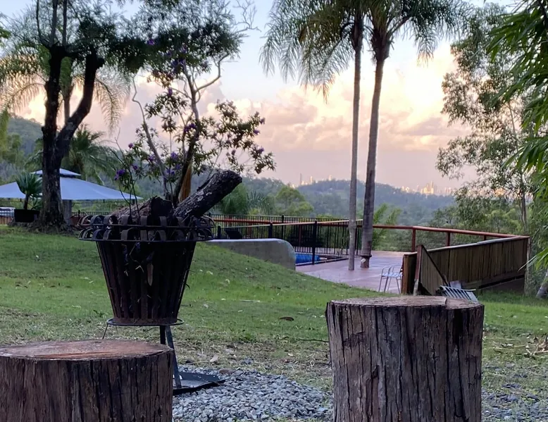 We are an ADULTS ONLY (children 13 yr + allowed accompanied by adult) hosting on 8.5 acre block in natural bush with house set back 200m from road, abundance of wildlife & panoramic coastal views of the Gold Coast skyline. A unique location just minutes from the M1 Pet friendly (2 SMALL BREED dogs max & additional $30 cleaning fee, no cats), air con, large pool, hot tub, NBN, Foxtel, Netflix, fully self contained guesthouse, kitchenette & seperate bathroom Complete privacy & tranquility awaits The space The guest suite is fully self contained with everything guests need in the way of crockery, cutlery, pots, pans, linen, pillows, blankets, an electric double hot plate, a large fridge as well as Aldi coffee maker grinder and coffee beans small air fryer instant coffee tea green tea sugar salt pepper oil etc. We welcome up to 2 LITTLE DOGS (LAP DOGS ONLY & extra cleaning fee of $30) & we have a lockable courtyard Please advise what breed of dog when booking Wifi is NBN unlimited broadband We have Foxtel including movies, music sports channels and Netflix We are on tank water. We clean our space from top to bottom with plant based Melaleuca products providing a germ and chemical free environment for every new guest. Guest access Our guesthouse is west facing, completely private, has front double glass sliding doors and security screens on both the front and back entrances, a private courtyard with a BBQ, your own private front patio and guests may also use the pool hot tub and laundry anytime. Other things to note We only accept small breed dogs. Please advise us of what breed of dog when booking. We have chickens in a run on our property and we request guests ensure their dogs are not roaming around unattended. We also do not allow dogs in the pool and as we are in the bush it is also important to be aware of ticks and snakes as they are always around and can be fatal. We do not allow smoking indoors but you can smoke anywhere outside. Please do not use drones on our property.