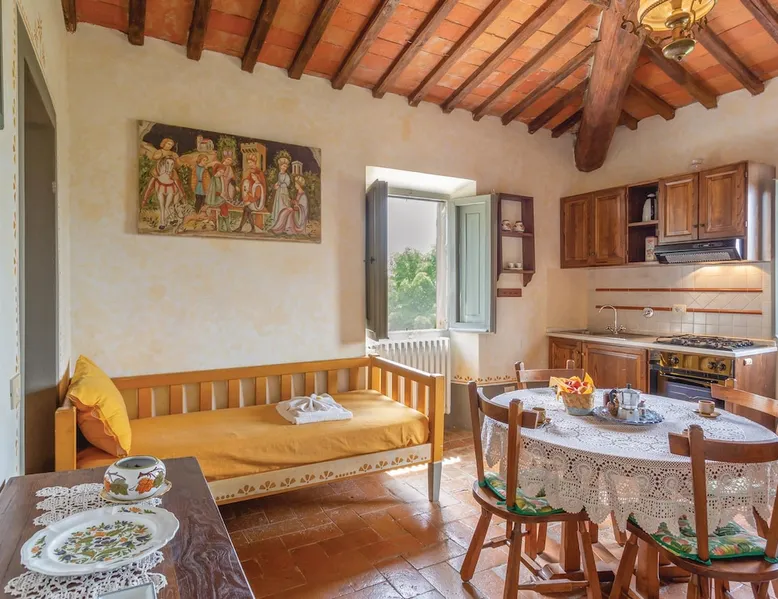 This vacation home with private pool, tennis court and large private outdoor area is located in the countryside of Valdarno near Reggello. The space This vacation home with private pool, tennis court and large private outdoor area is located in the countryside of Valdarno near Reggello. The house consists of several units and extends over several levels. The pool is in an elevated position opposite the house and is surrounded by vineyards and olive groves. This house was originally a farm and preserves the authentic features of country life, your children can play freely outdoors, feed the chickens and take fresh eggs from the barn. If you want to prepare good grilled meat, collect the available aromatic plants: rosemary, sage, bay, thyme, oregano, mint and capers. Book a vacation between the end of October and the beginning of November and you will live a unique experience: the olive harvest and enjoy organic olive oil. This is an ideal solution for a group of friends or for a family vacation. You can gather in the common room on the first floor, where a guitar and board games are available. Thanks to the location you can organize excursions to the Abbey of Vallombrosa (15 km), the Castle of Sammezzano (4 km) and Florence, which you can easily reach by car (only 36 km). Washing machine in a separate room. The German-speaking owner will be happy to help and advise you. Can comfortably fit up to 13 people Other things to note Please note that: Bed linen and towels are included in the room rate in 2025. Consumption costs are not included in the room rate and will be charged according to guest use within three weeks after check-out. Outdoor private pool on site is open May - end September. Registration Details IT048035B5GIHWQQDA