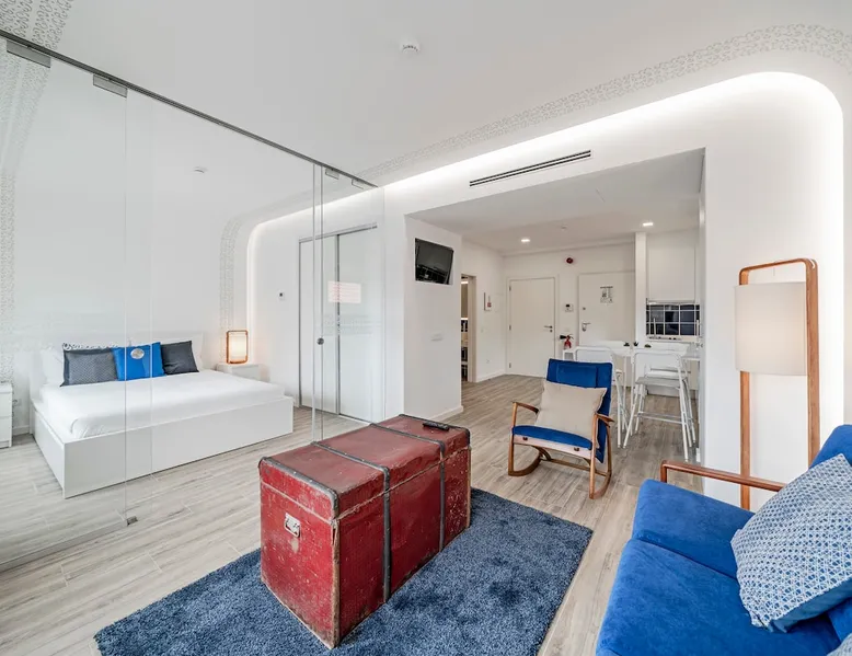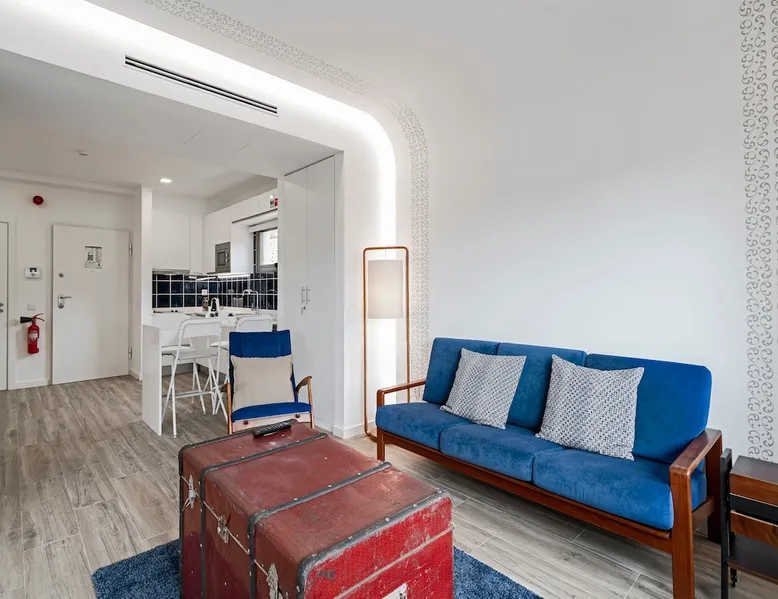 Live the centenary history of Madeira Embroidery in an apartment with excellent design and memories of regional culture. The space Right in the centre of Funchal, right next to the Farmers Market, this fantastic apartment offers you all the convenience. Set in a building that housed an old Madeira Embroidery Factory, this property is divided into six independent fractions, each named after well-known Madeira Embroidery stitching. With a modern and functional architecture, these studios have small notes that take you back to the past and make you know a little about the embroidery of the island. With two bedroom with double bed, two bathroom and fully equipped kitchen, the apartment has the capacity to accommodate four people. For those who like to enjoy a good time of relaxation, you can enjoy the pleasant communal terrace, available on the rooftop of the building, which has a kitchen, so you can cook your meals. On the same terrace there is a common laundry room to the building. THE NEIGHBORHOOD OVERVIEW Drapes is situated in a privileged central area, right in the heart of Funchal. Within a few steps from the famous Farmers’ Market (Mercado dos Lavradores) and the historic centre of Funchal (locally known as ‘Zona Velha’), from here you can explore by foot many of the main tourist attractions of our beautiful town. (e.g. The Cable Car, Funchal Marina, CR7 Museum, Cathedral, Madeira Wine Lodge, etc ...) Just right in front of the building you have an excellent connection to the local and intercity bus network, connecting you to all places in the island, and covering both the east and west regions, so that it will not be necessary to go far in case you want to benefit from these services. In addition to these facilities, the building has a shopping centre with several shops, cafés, restaurants and a medium-sized supermarket. GETTING AROUND With a bus stop practically at the doorstep, transport will be no problem for our guests. Although a aerobus bus stop for airport arrivals and departures is within 2 minutes walk distance from the flat, we recommend the private transfer service as the best option to get to the flat. Contact us in advance to schedule a private transfer car with our local partners. It is cheaper than taking a taxi by your own in the airport! GUEST ACCESS Guests have access to all areas of the flat. OTHER OBSERVATIONS - According to Portuguese law, all guests are required to present a valid ID. (E.g. passport, identity card). - Check-in must be scheduled in advance. In case the check-in is not scheduled within a maximum of 48 hours prior arrival, guests will be subject to the availability of our team. - All bed linen and towels are provided. We can also provide a crib, a baby high chair and a baby bathtub if needed. First aid kit, fire extinguisher and fire blanket are available in all properties. ATTENTION Please be advised that a Tourist Fee will be charged to all persons staying overnight in the municipality of Funchal. Thus, all customers staying in tourist resorts and/or accommodation establishments, aged 13 or over, will be charged €2.00 per person/night, up to a maximum of 7 nights and a maximum of €14.00 per person/stay. When you arrive, you will receive a link to pay this municipal tax. HOUSE RULES We want you to feel right at home! Thank you for respecting the neighbours and for not smoking inside the properties. Registration Details 98892/AL