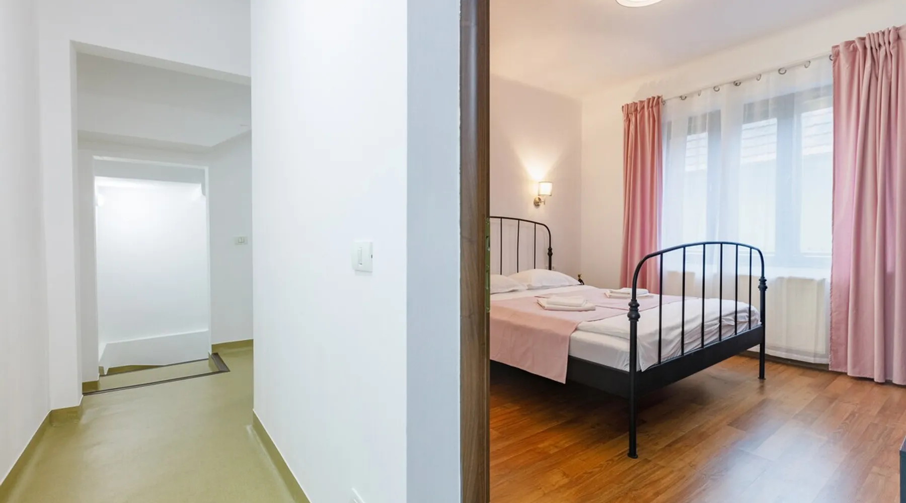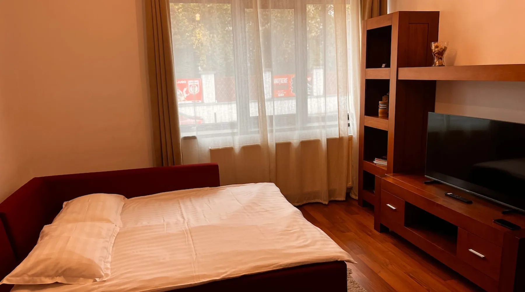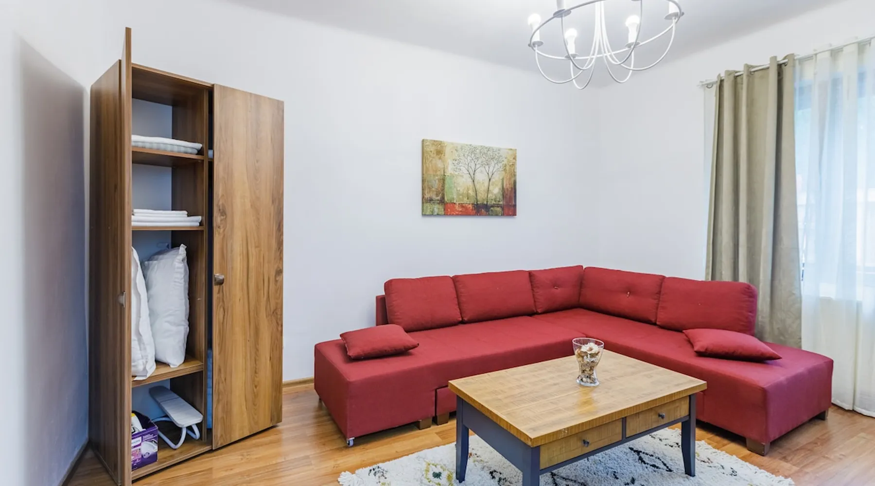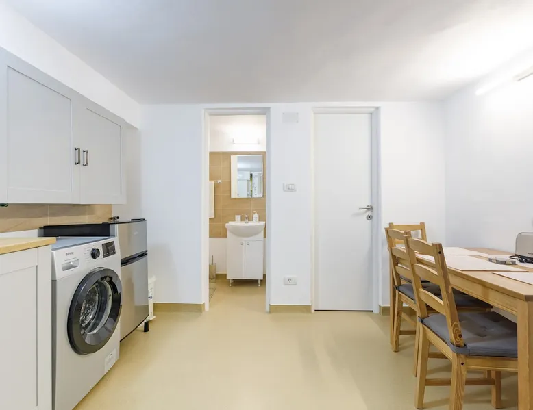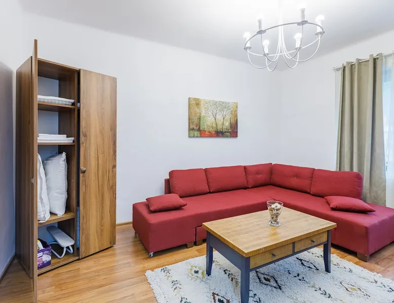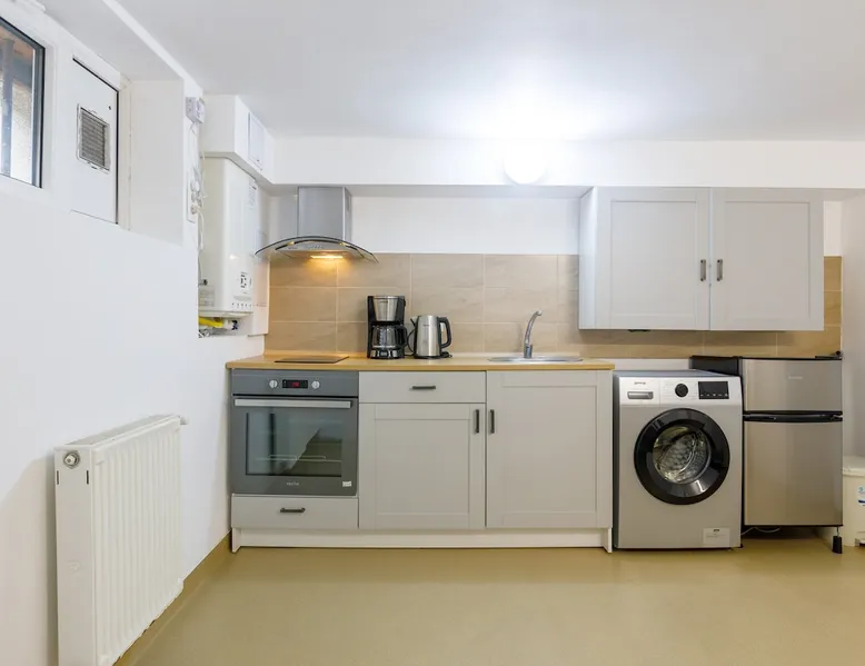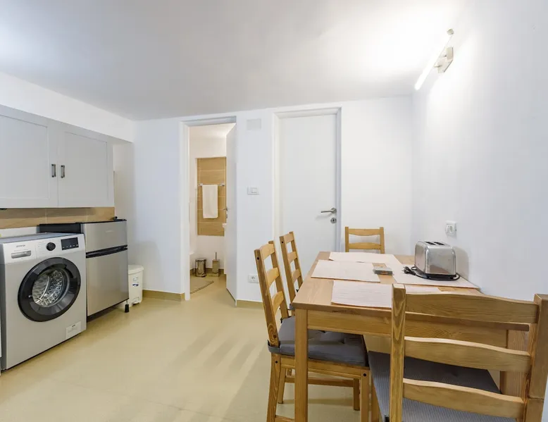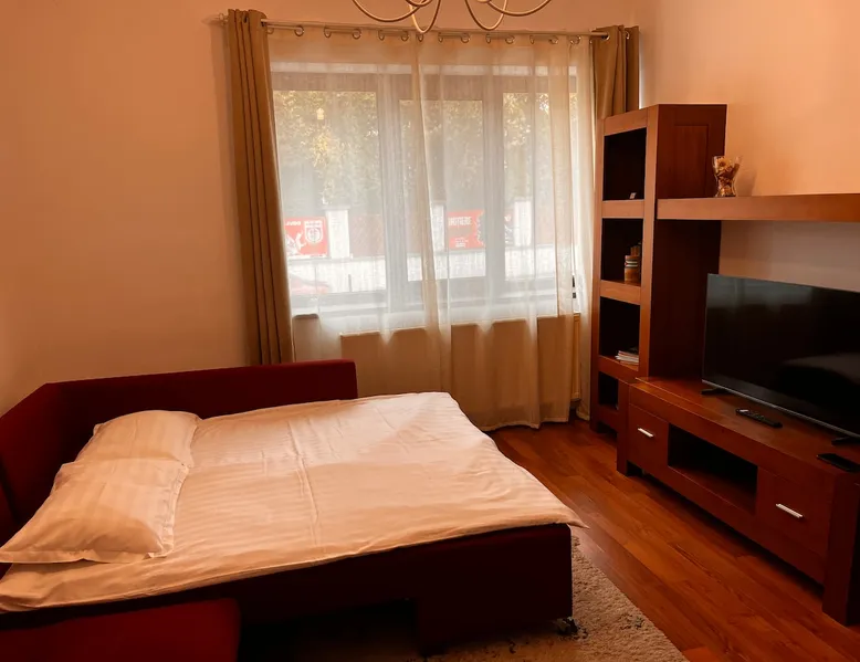 The Dante Apartment is located in a very quiet residential area, 20 minutes away from the historic city center. The apartment is fully furnished and equipped, featuring two separate rooms, two bathrooms, a fully equipped kitchen, a refrigerator, and an electric induction stove. We provide our guests with bed linens and towels, which are disinfected with chlorine and ironed. The apartment is perfect for a family with children or two couples. The apartment shares a courtyard with other residents. The space Dante Apartment is a comfortable apartment comprising two rooms. One room is equipped with a double bed, while the other features a spacious and comfortable 180.0 x 2.0 meters extendable sofa for sleeping. Additionally, there are two bathrooms. The main bathroom is equipped with a shower cabin, sink, and toilet, while the secondary bathroom has a toilet and sink. The kitchen is fully furnished and equipped with dishes, pans, pots, a coffee maker, refrigerator, induction stove, oven, and a washing machine. In the immediate vicinity of the apartment, just 20 meters away, there is a grocery store, and a Kaufland supermarket is located 300 meters away. Additionally, there are two excellent restaurants, Casa Tudor and Bistro Ma Cocotte, within 100 - 200 meters. Apart from Romanian, we also speak foreign languages such as English and French. The Modern Apartment is located 1 kilometer away from Bus Station 2, from where you can catch buses to Bran Castle and Rasnov Citadel. The largest indoor water park, Parasisul Acvatic, is only 1.2 kilometers away from the property. Our guests have the option to prepare their own meals in the fully equipped kitchen. Guest access Our guests will have the entire apartment at their disposal, while the inner courtyard, is shared with the Modern Apartment located in the attic. Other things to note The yard of the house is very small, shared with the second apartment of our Modern t apartment. Both apartments can be rented so we can offer comfortable accommodation for 8 adults in this situation tourists can park 1-2 cars in the yard. We have a self check-in system, the code for the secure key box is provided to our guests directly on the day of check-in (via text message, sms, phone call). The access code is changed after each guest.