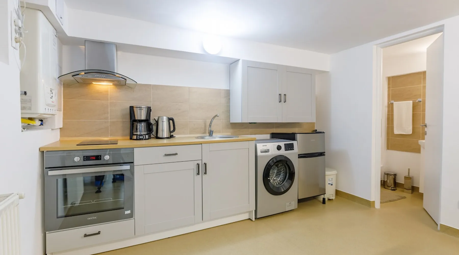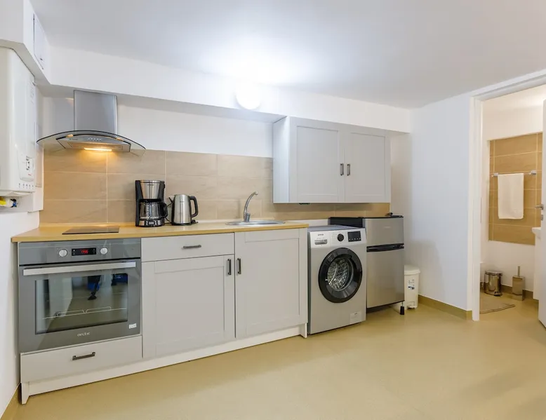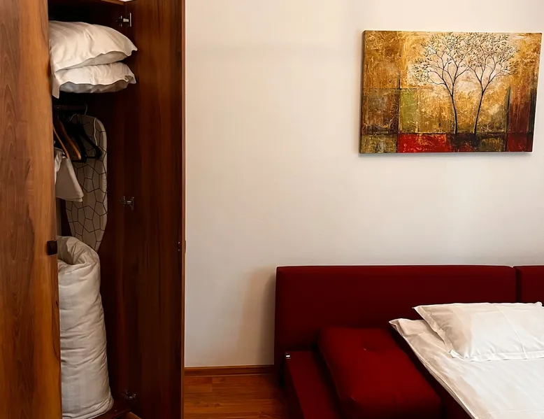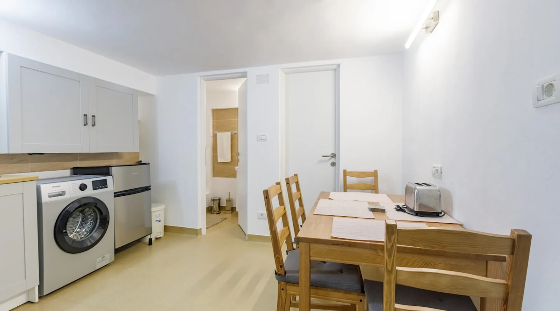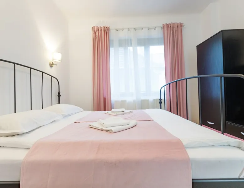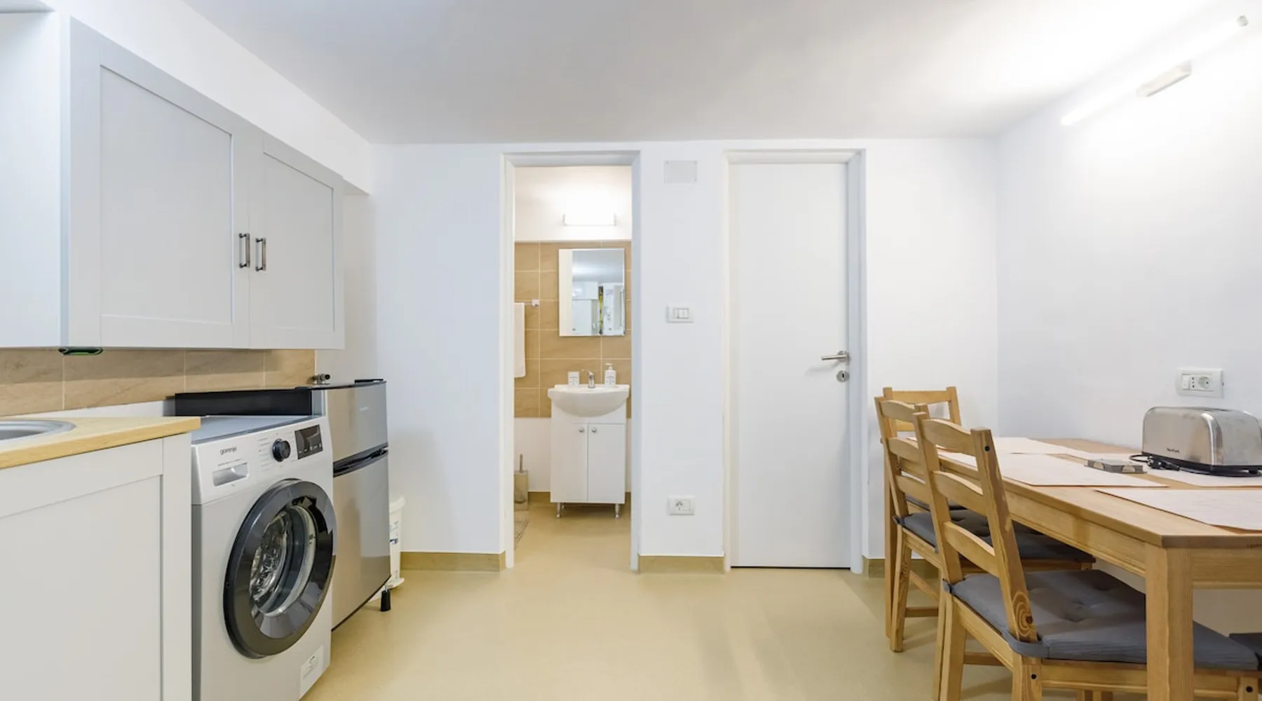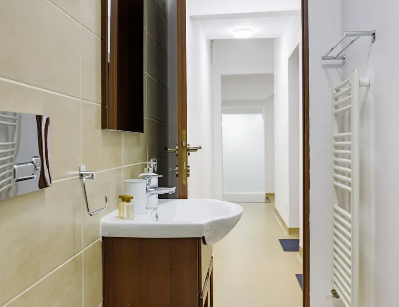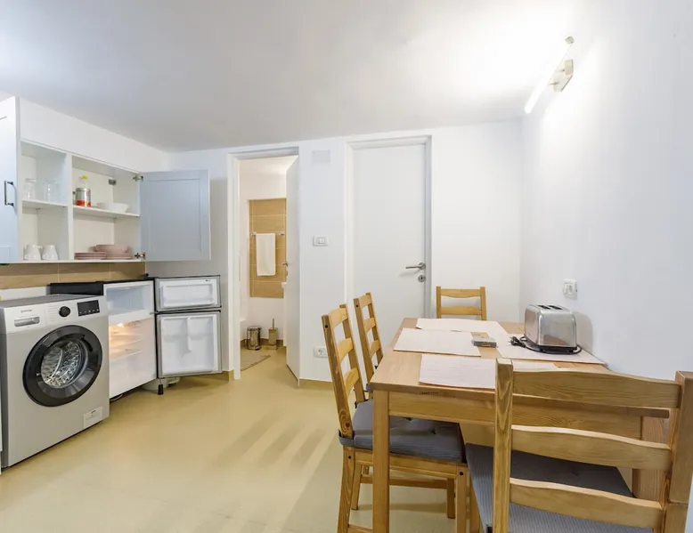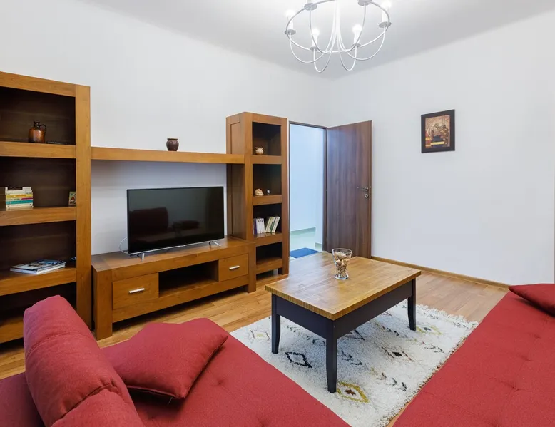 The Dante Apartment is located in a very quiet residential area, 20 minutes away from the historic city center. The apartment is fully furnished and equipped, featuring two separate rooms, two bathrooms, a fully equipped kitchen, a refrigerator, and an electric induction stove. We provide our guests with bed linens and towels, which are disinfected with chlorine and ironed. The apartment is perfect for a family with children or two couples. The apartment shares a courtyard with other residents. The space Dante Apartment is a comfortable apartment comprising two rooms. One room is equipped with a double bed, while the other features a spacious and comfortable 180.0 x 2.0 meters extendable sofa for sleeping. Additionally, there are two bathrooms. The main bathroom is equipped with a shower cabin, sink, and toilet, while the secondary bathroom has a toilet and sink. The kitchen is fully furnished and equipped with dishes, pans, pots, a coffee maker, refrigerator, induction stove, oven, and a washing machine. In the immediate vicinity of the apartment, just 20 meters away, there is a grocery store, and a Kaufland supermarket is located 300 meters away. Additionally, there are two excellent restaurants, Casa Tudor and Bistro Ma Cocotte, within 100 - 200 meters. Apart from Romanian, we also speak foreign languages such as English and French. The Modern Apartment is located 1 kilometer away from Bus Station 2, from where you can catch buses to Bran Castle and Rasnov Citadel. The largest indoor water park, Parasisul Acvatic, is only 1.2 kilometers away from the property. Our guests have the option to prepare their own meals in the fully equipped kitchen. Guest access Our guests will have the entire apartment at their disposal, while the inner courtyard, is shared with the Modern Apartment located in the attic. Other things to note The yard of the house is very small, shared with the second apartment of our Modern t apartment. Both apartments can be rented so we can offer comfortable accommodation for 8 adults in this situation tourists can park 1-2 cars in the yard. We have a self check-in system, the code for the secure key box is provided to our guests directly on the day of check-in (via text message, sms, phone call). The access code is changed after each guest.