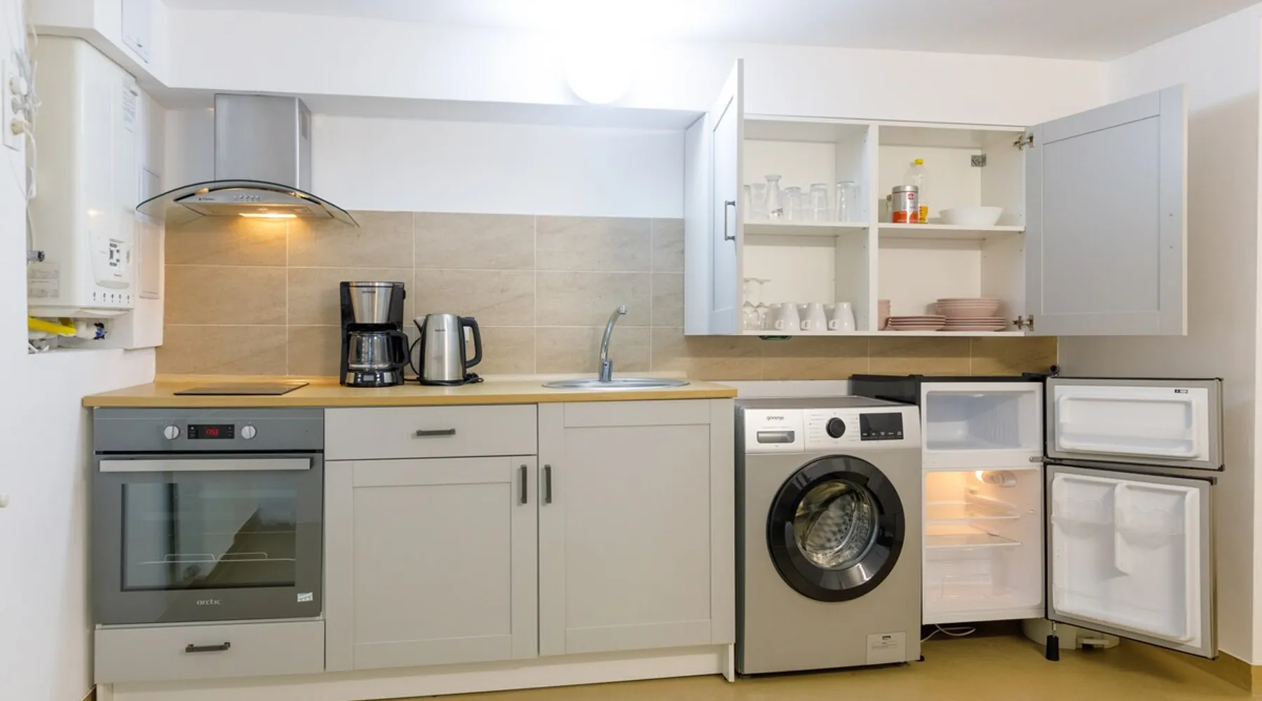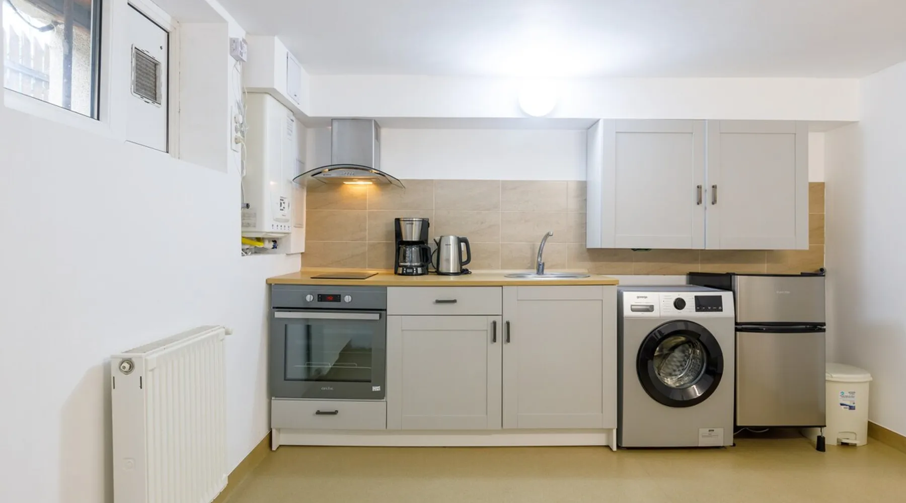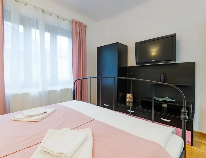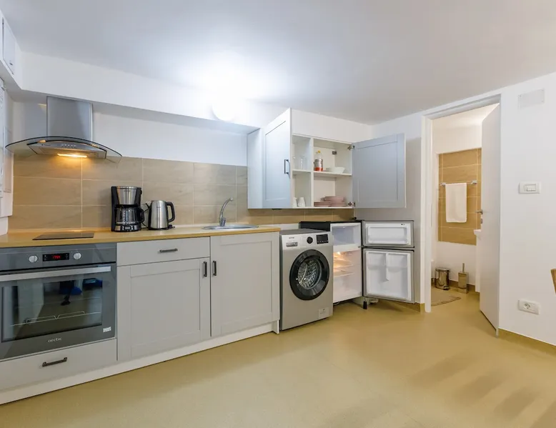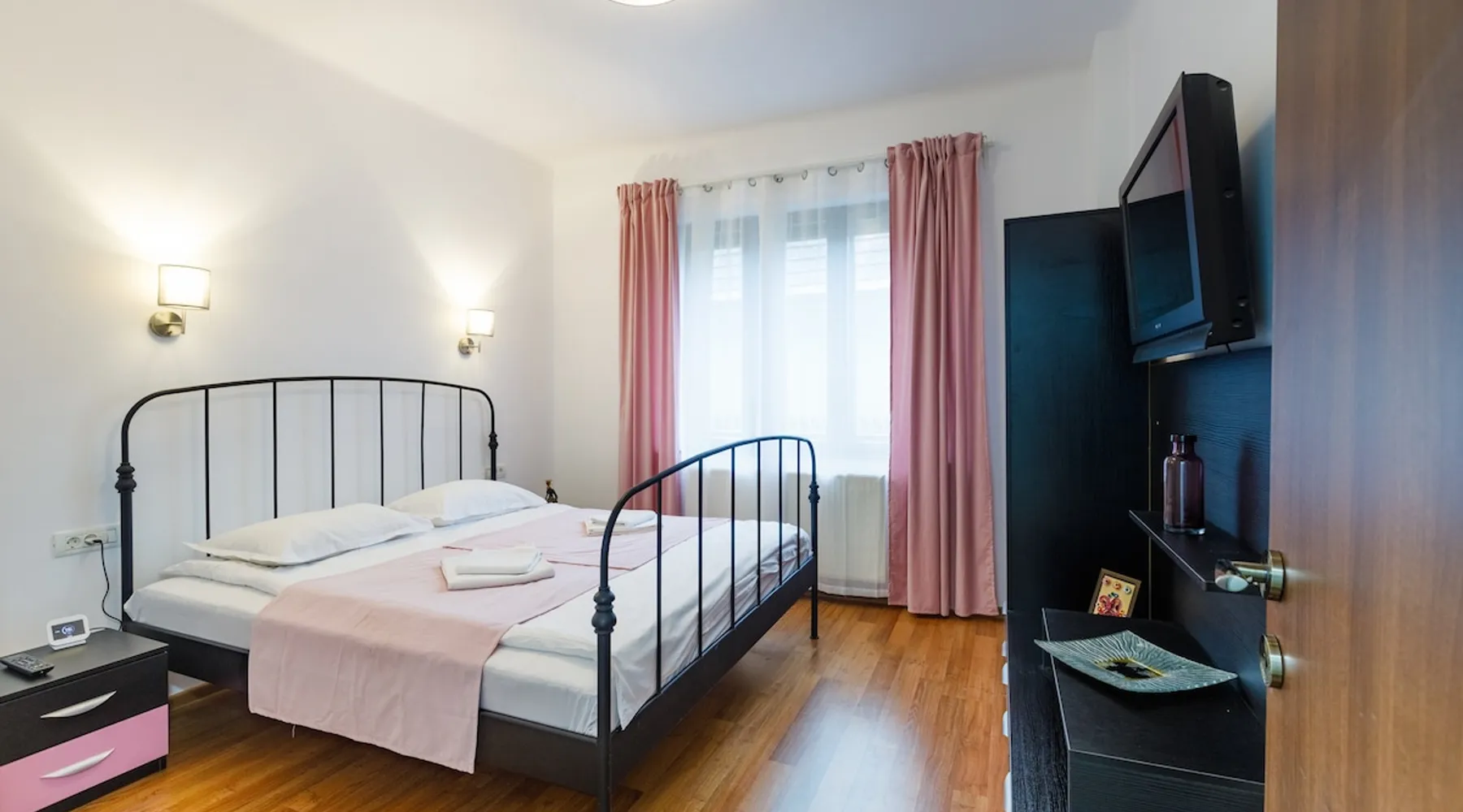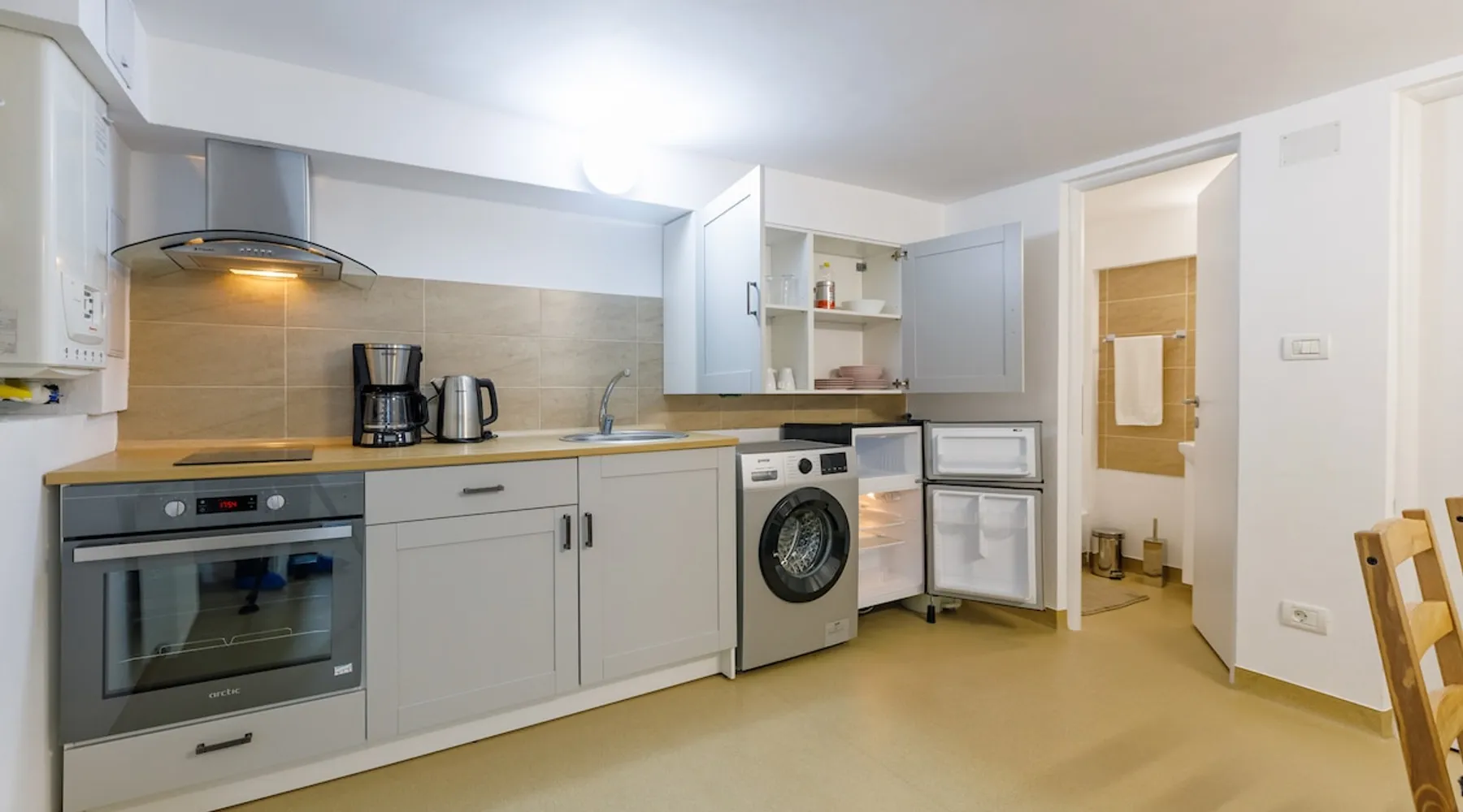 The Dante Apartment is located in a very quiet residential area, 20 minutes away from the historic city center. The apartment is fully furnished and equipped, featuring two separate rooms, two bathrooms, a fully equipped kitchen, a refrigerator, and an electric induction stove. We provide our guests with bed linens and towels, which are disinfected with chlorine and ironed. The apartment is perfect for a family with children or two couples. The apartment shares a courtyard with other residents. The space Dante Apartment is a comfortable apartment comprising two rooms. One room is equipped with a double bed, while the other features a spacious and comfortable 180.0 x 2.0 meters extendable sofa for sleeping. Additionally, there are two bathrooms. The main bathroom is equipped with a shower cabin, sink, and toilet, while the secondary bathroom has a toilet and sink. The kitchen is fully furnished and equipped with dishes, pans, pots, a coffee maker, refrigerator, induction stove, oven, and a washing machine. In the immediate vicinity of the apartment, just 20 meters away, there is a grocery store, and a Kaufland supermarket is located 300 meters away. Additionally, there are two excellent restaurants, Casa Tudor and Bistro Ma Cocotte, within 100 - 200 meters. Apart from Romanian, we also speak foreign languages such as English and French. The Modern Apartment is located 1 kilometer away from Bus Station 2, from where you can catch buses to Bran Castle and Rasnov Citadel. The largest indoor water park, Parasisul Acvatic, is only 1.2 kilometers away from the property. Our guests have the option to prepare their own meals in the fully equipped kitchen. Guest access Our guests will have the entire apartment at their disposal, while the inner courtyard, is shared with the Modern Apartment located in the attic. Other things to note The yard of the house is very small, shared with the second apartment of our Modern t apartment. Both apartments can be rented so we can offer comfortable accommodation for 8 adults in this situation tourists can park 1-2 cars in the yard. We have a self check-in system, the code for the secure key box is provided to our guests directly on the day of check-in (via text message, sms, phone call). The access code is changed after each guest.