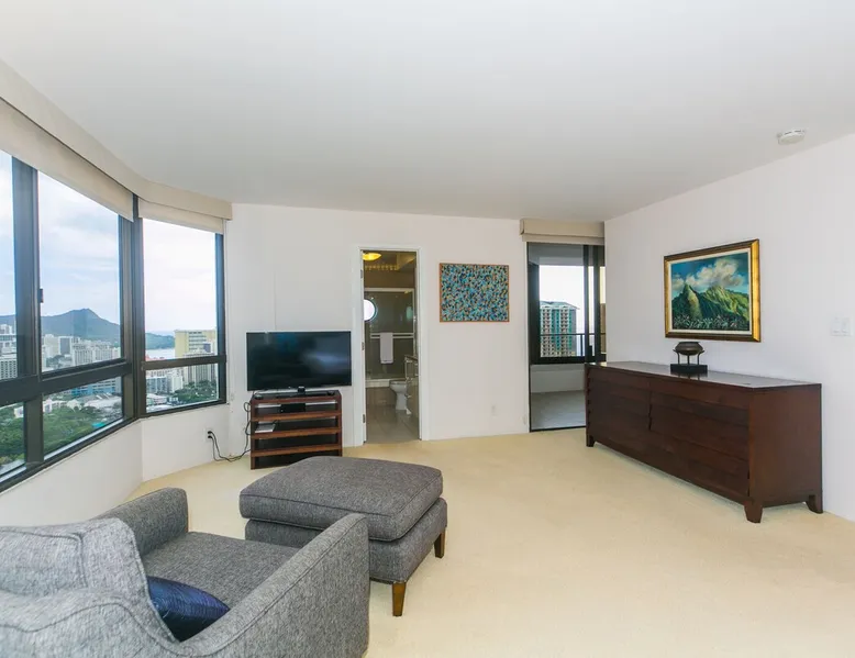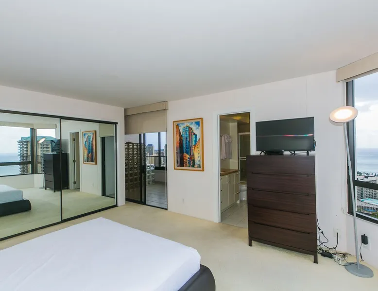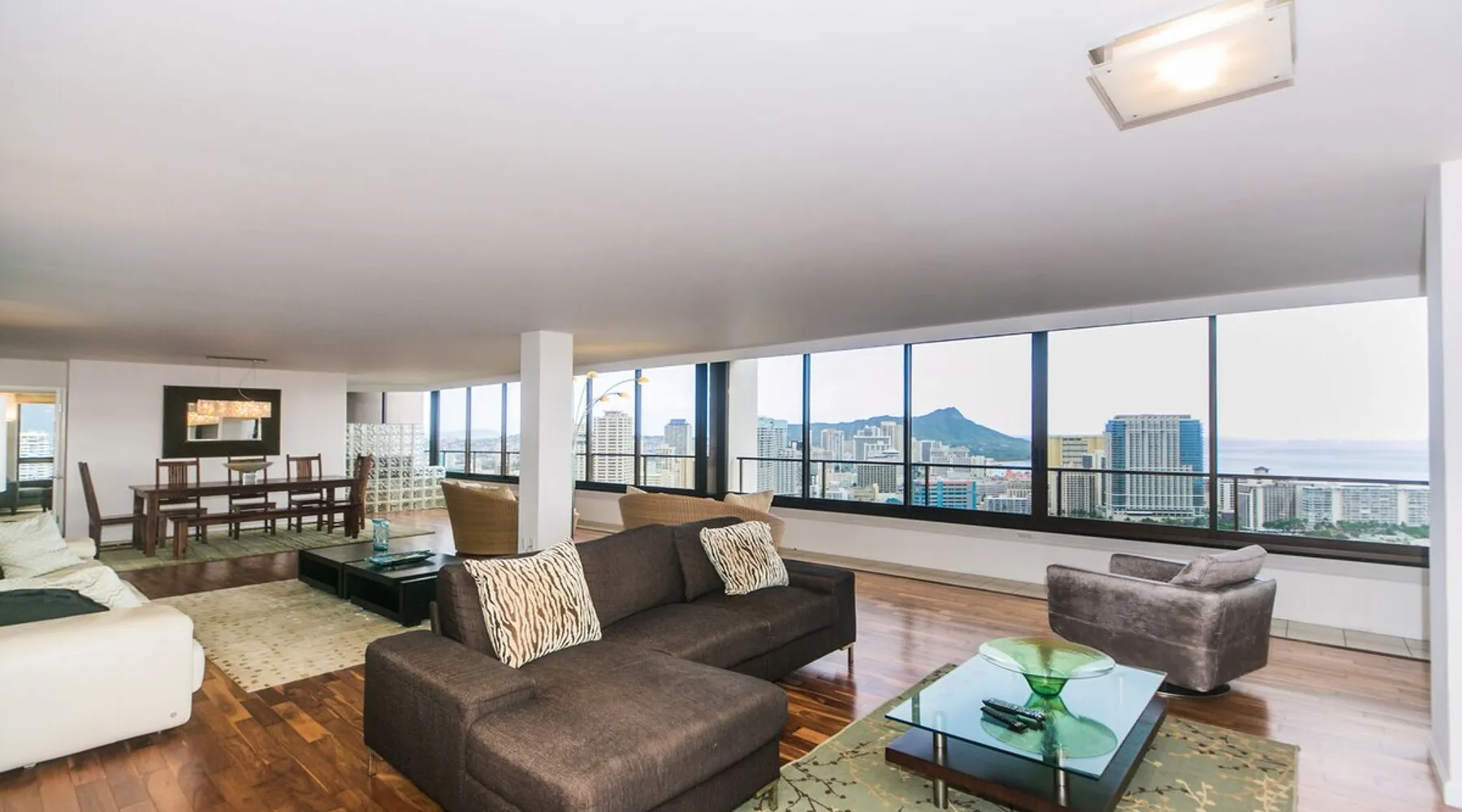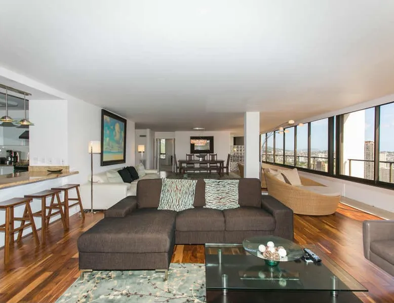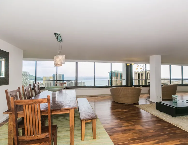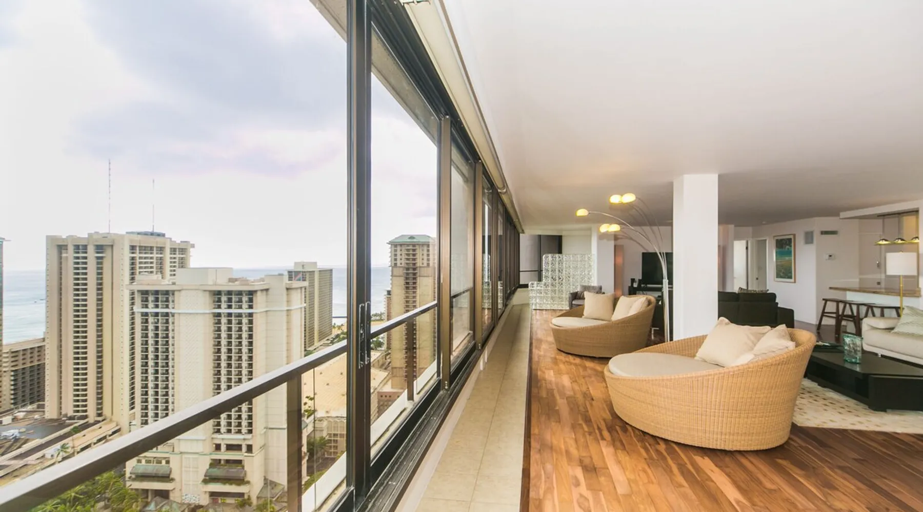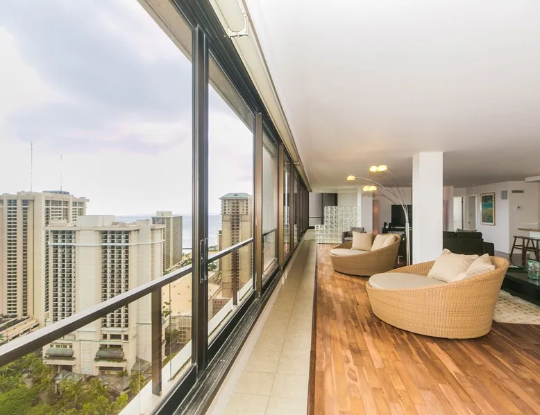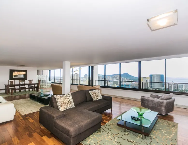 One of a kind nearly 3000 SF (280 SQ/M) high floor custom condo with one of the best views in Waikiki. Located a mere 5 minute walk to beach and across from the world famous Hilton Hawaiian Village, this truly unique and newly remodeled unit offers unparalleled luxury for those desiring and demanding the best. Whether seated in the living room or relaxing on one of the lanai swivel lounge chairs you will be treated to a breathtaking 50 Ft wide panoramic view of the ocean, beaches, Diamond Head, Registration Details 260070150133, 38B, TA-052-041-5232-01