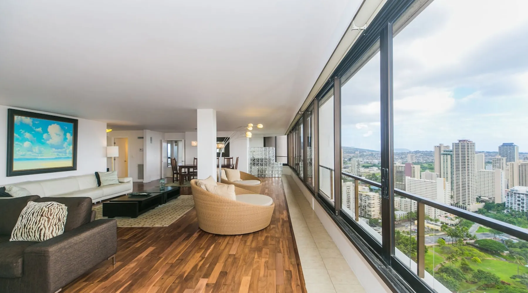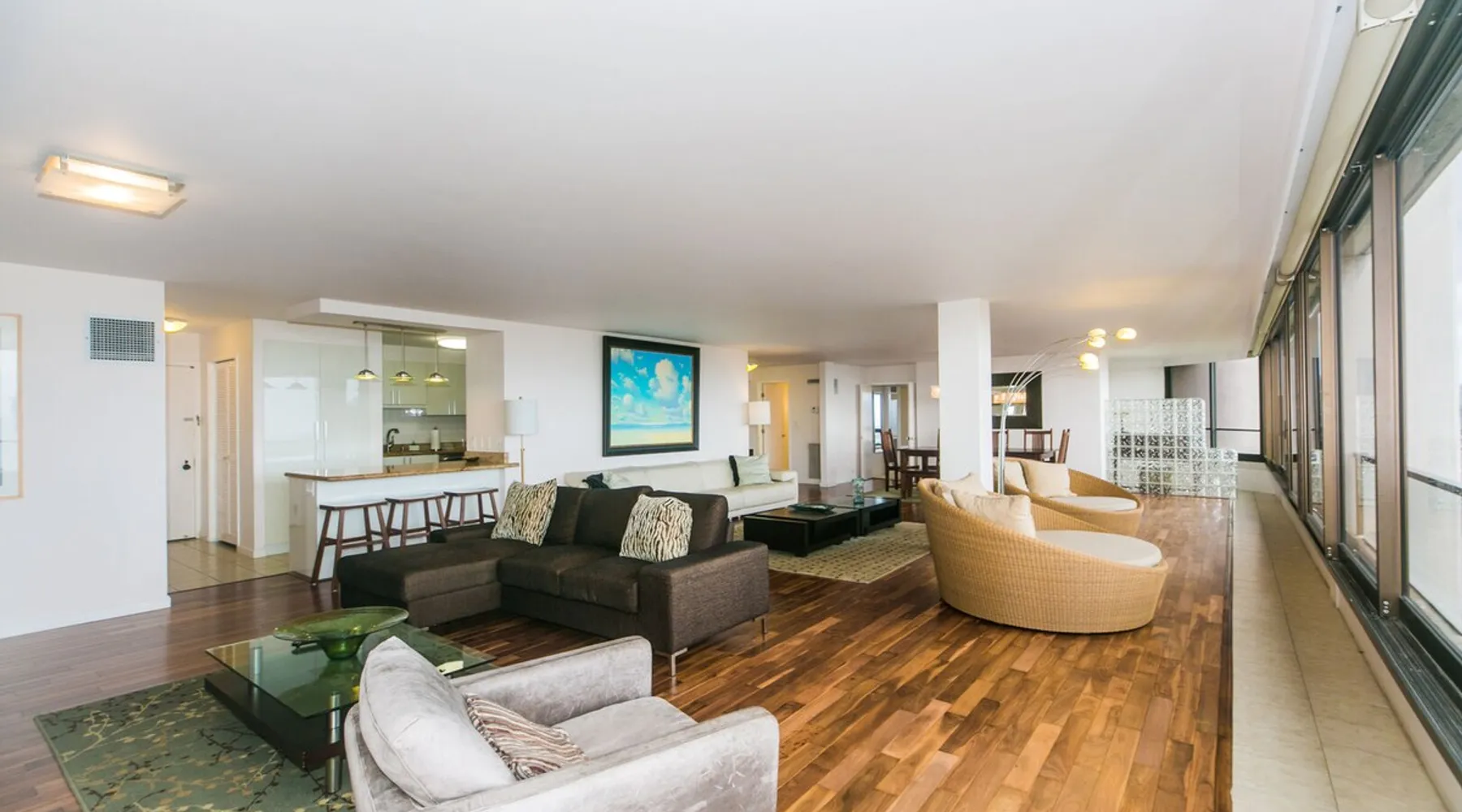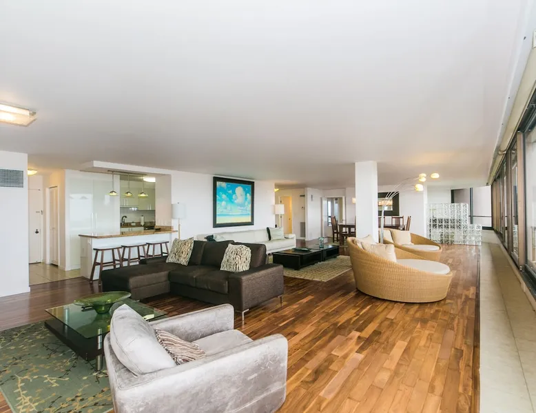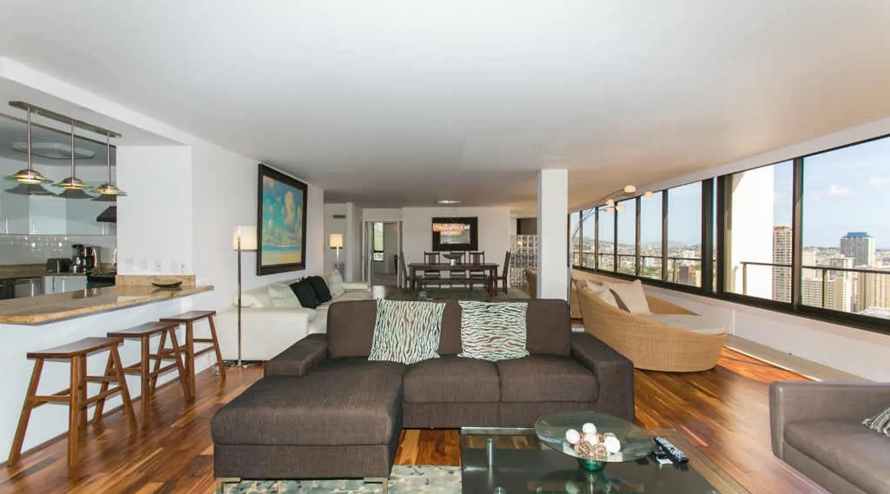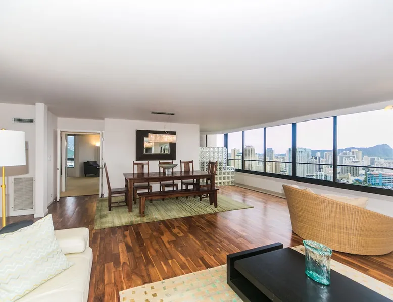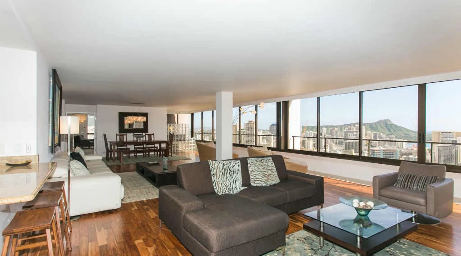 One of a kind nearly 3000 SF (280 SQ/M) high floor custom condo with one of the best views in Waikiki. Located a mere 5 minute walk to beach and across from the world famous Hilton Hawaiian Village, this truly unique and newly remodeled unit offers unparalleled luxury for those desiring and demanding the best. Whether seated in the living room or relaxing on one of the lanai swivel lounge chairs you will be treated to a breathtaking 50 Ft wide panoramic view of the ocean, beaches, Diamond Head, Registration Details 260070150133, 38B, TA-052-041-5232-01