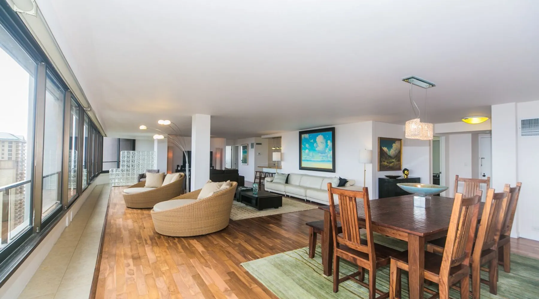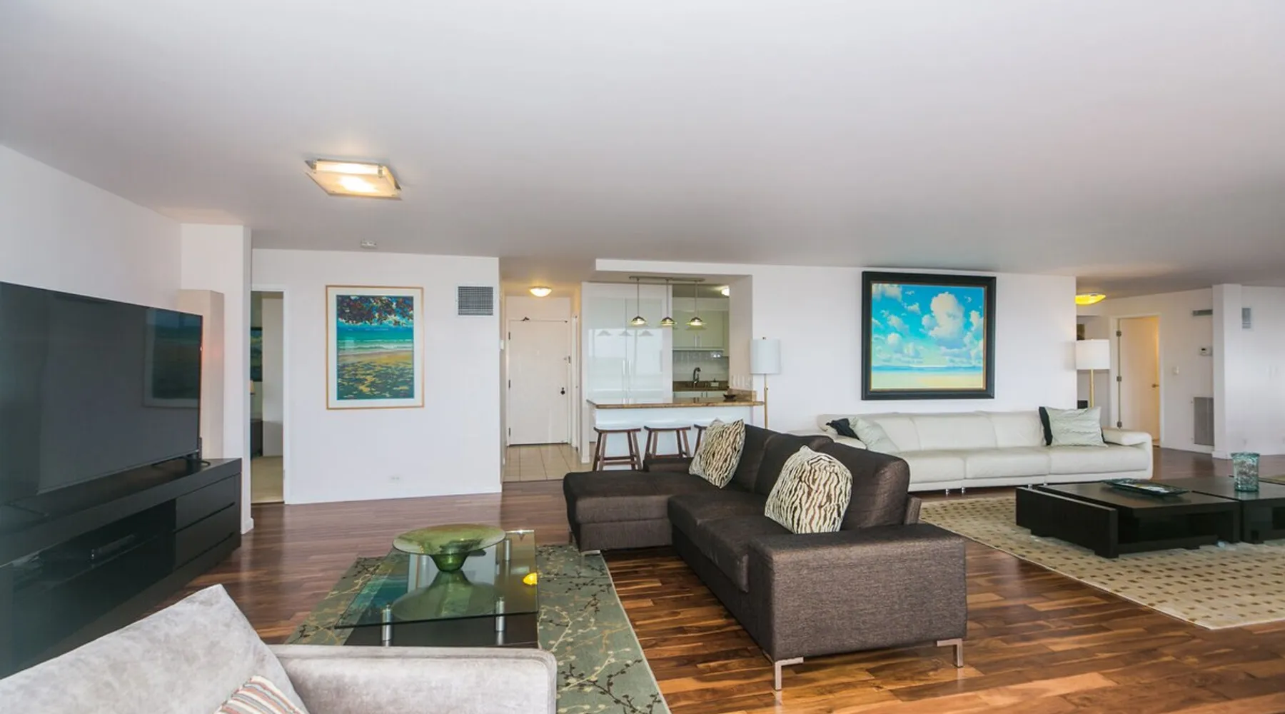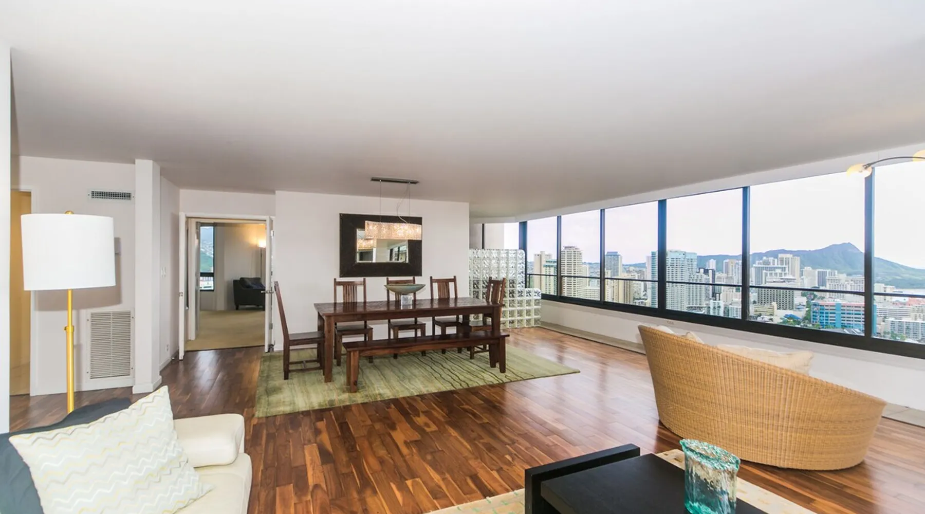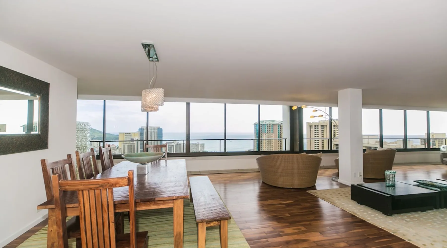 One of a kind nearly 3000 SF (280 SQ/M) high floor custom condo with one of the best views in Waikiki. Located a mere 5 minute walk to beach and across from the world famous Hilton Hawaiian Village, this truly unique and newly remodeled unit offers unparalleled luxury for those desiring and demanding the best. Whether seated in the living room or relaxing on one of the lanai swivel lounge chairs you will be treated to a breathtaking 50 Ft wide panoramic view of the ocean, beaches, Diamond Head, Registration Details 260070150133, 38B, TA-052-041-5232-01