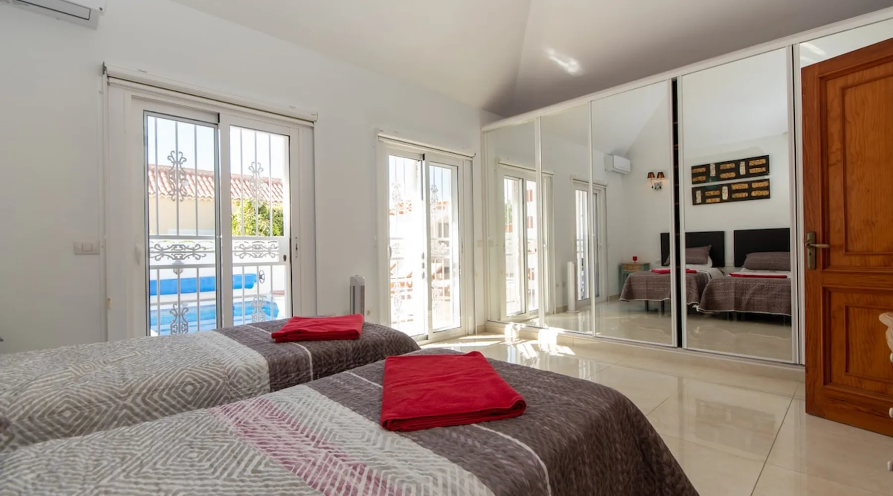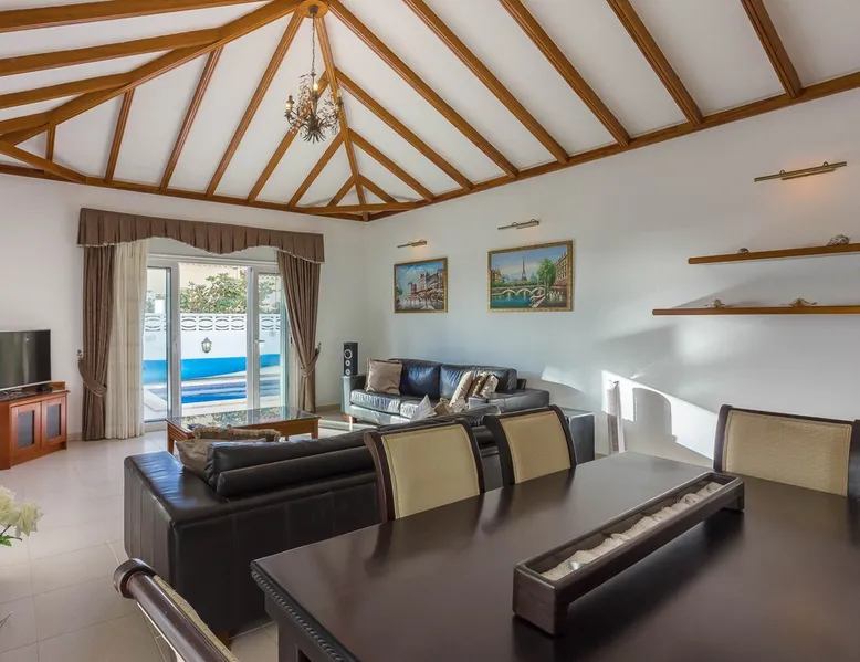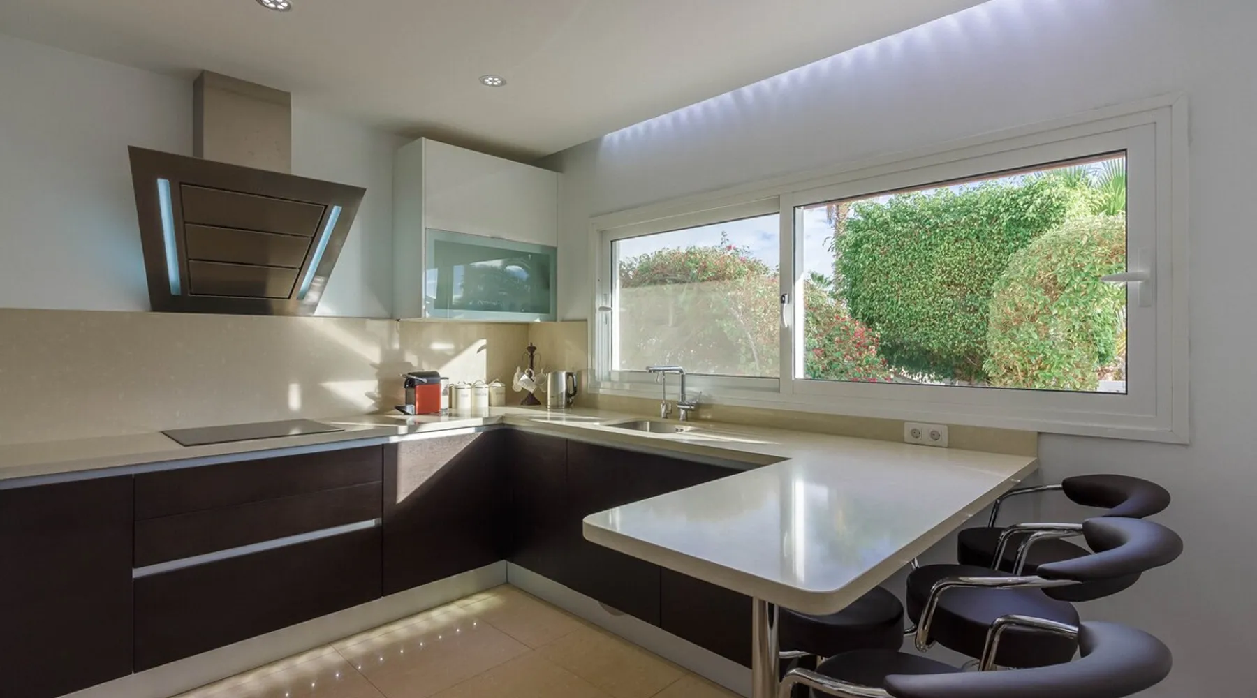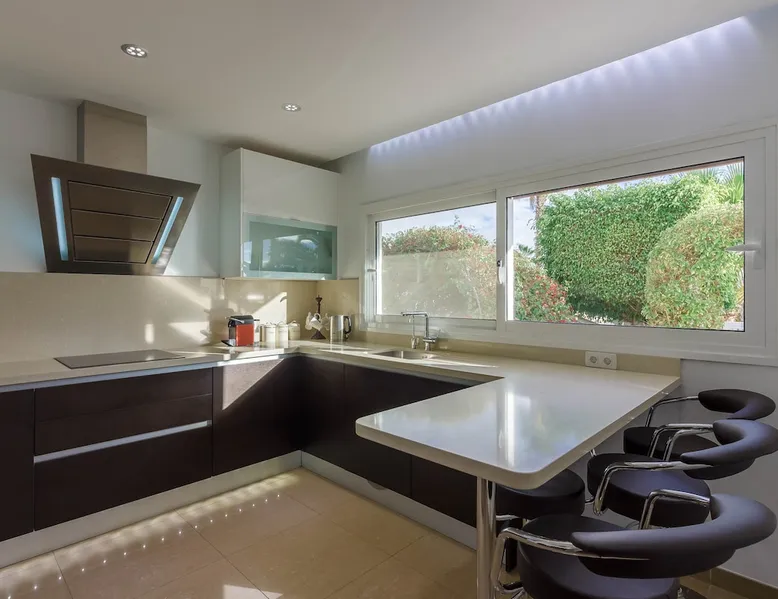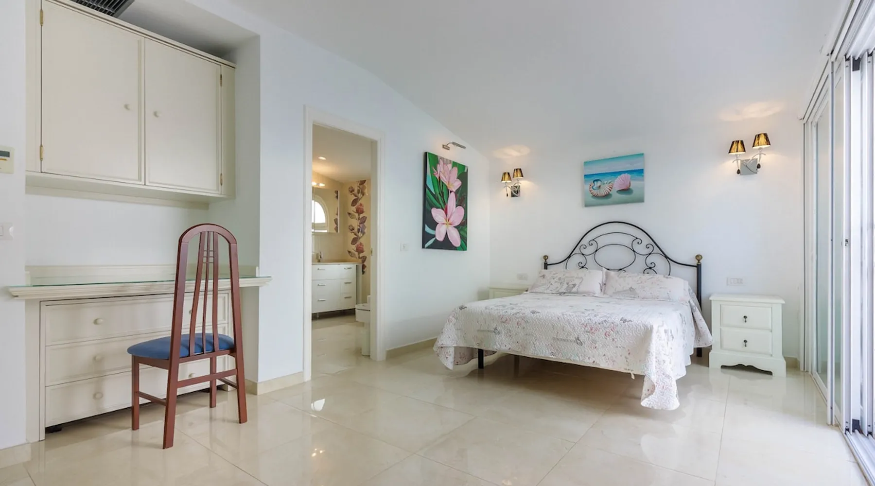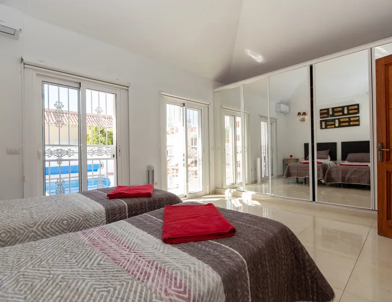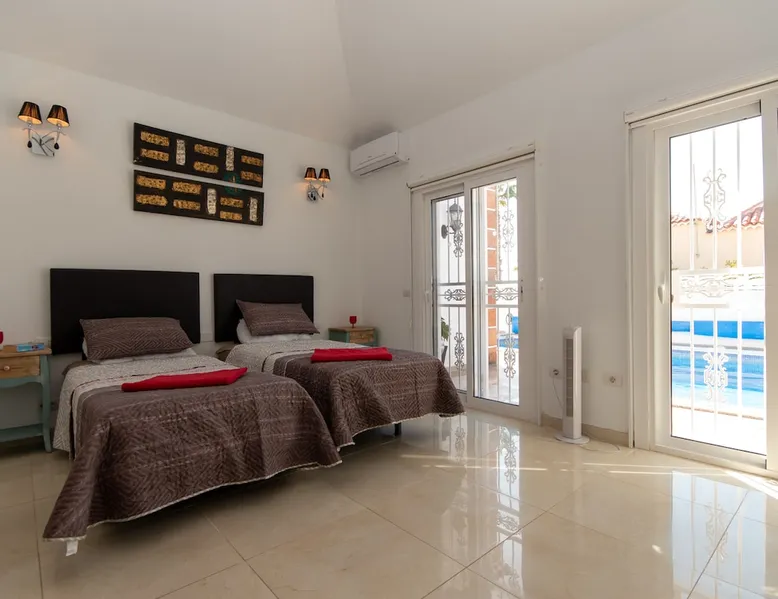 The holiday you’ve been dreaming of is waiting for you at this beautiful villa in Tenerife. Perfect for families or taking a group trip. You’ll have 4 large bedrooms all with air conditioning and 4 bathrooms, giving everyone the space they need to stretch out and relax after a day of fun. The space OUTDOOR BAR AREA NO LONGER HAS A TV! THIS HAS BEEN REPLACED WITH A PICTURE ON THE WALL! All on one level, the interior was carefully designed to ensure you have the pleasurable retreat you deserve. The kitchen offers an excellent modern motif with granite work tops, quality stainless steel appliances, and a convenient breakfast bar. A vaulted ceiling soars above the living room/dining room area with leather couches and a flat screen TV that offers UK channels. Outside on the terrace you’ll find a private place to enjoy the perfect weather Tenerife is known for. Settle in next to the heated L shaped pool on one of the many sun loungers and bask in the sun or enjoy an outdoor meal under the unique pergola with partial sea views. And the outdoor bar area with fridge includes sofas under shaded roof which is a great place to unwind with your fellow travelers. This peaceful home will rejuvenate your spirit when you need it most. Schedule your holiday today! This villa is maintained on a regular basis to a high standard and the property manager is very hands on if any problems arise. Due to popular demand we charge a small additional fee for school half term holiday weeks, if you process a booking over a school half term holiday week you will be notified of this fee. We require all young groups to contact us before making a booking. Also make sure you contact us before you wish to make a booking over the New Year period without the Christmas day period being booked first. Facilities: General: iron with board, bathroom towels, pool towels, linen, hair dryer Kitchen: oven/hob, american fridge/freezer, dishwasher, coffee machine, kettle, microwave, toaster, breakfast bar for 4, granite worktops Utility: washing machine, tumble dryer Diner: dining table for 6, air conditioning Lounge: 3 seater sofas (x3), 42 inch flat screen TV, offers all UK channels + sky, air conditioning, patio doors to terrace (x3) Bedrooms: Bedroom 1: king size bed, fitted wardrobes, air conditioning, ensuite, patio doors to rear terrace Bedroom 2: king size bed, fitted wardrobes, air conditioning, ensuite, patio doors to pool terrace Bedroom 3: king size bed, air conditioning, ensuite, patio doors to pool terrace Bedroom 4: single beds (x2), fitted wardrobes, air conditioning, patio doors to pool terrace (x2) Bathroom: Bathroom: toilet, sink, shower cubicle En suite (bedroom 1): toilet, sinks (x2), shower cubicle En suite (bedroom 2): toilet, sink, bath with shower attachment En suite (bedroom 4): toilet, sink, shower cubicle Exterior: several terraces, dining table for 6, bar area with fridge including comfortable sofas, shaded pergola (x2), purpose built BBQ, gardens, shower room, sun loungers, Pool: private heated pool size: 8 x 3 meters, constant depth: 1.2 Disabled friendly: yes – but 10 steps from pavement to villa Other things to note Please note: Pool heating is included in the price between the months of November to April unless stated. Pool heating outside these months may be included but can be confirmed upon request. If you require pool heating outside these months this can be arranged at a small cost upon request. Registration Details Canary Islands - Regional registration number VV-38-4-0103851