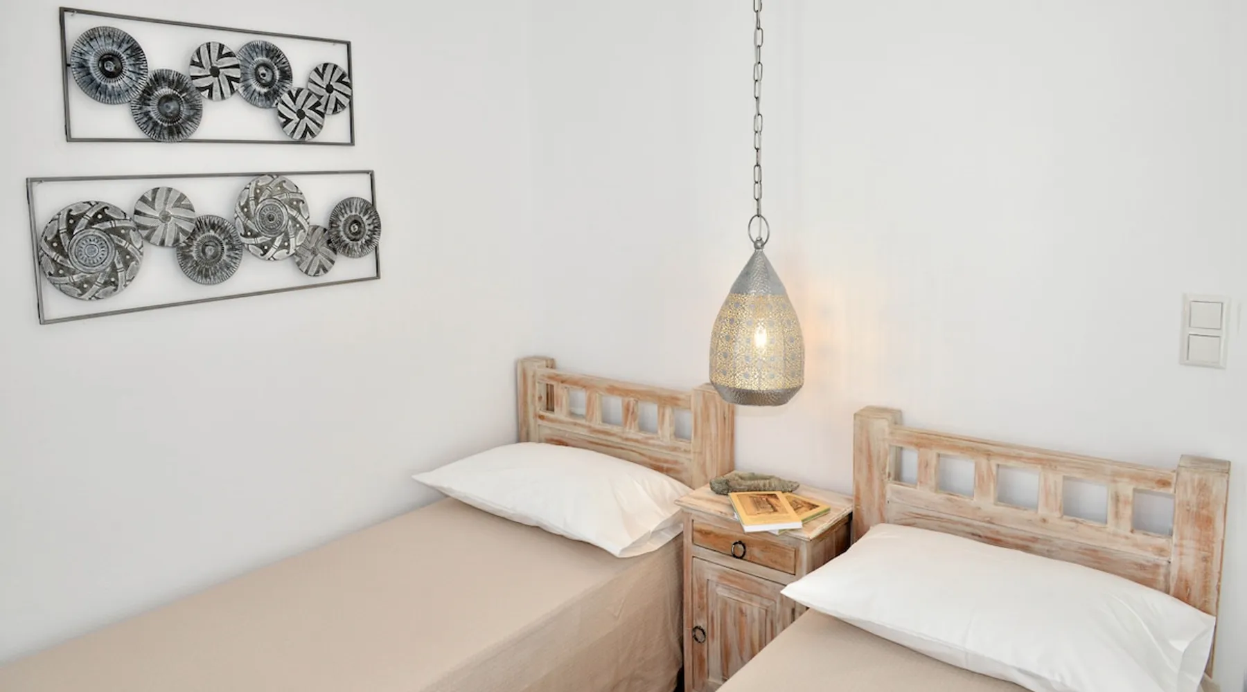 Independent Villa with private swimming pool on 3 floors, semi-basement, ground floor and first floor. Each floor has a bedroom and bathroom. It is 5 km from the port, the airport and the beaches of the island. Children's beds are 1.83 * 0.73 can sleep up to 1.75 height . Villa with private pool on 3 floors, semi basement, ground floor and first floor. Each floor has a bedroom and a bathroom. Children's beds are 1.83 and can sleep people up to 1.75 in height The space Οι βίλες βρίσκονται σε ήσυχη περιοχή, απέχουν περίπου 5 χιλιόμετρα από την χώρα της Νάξου. Έχουν κουζίνα, πλυντήρια πιάτων ( η βίλλα Καλιοπη δεν έχει) στις 2 από τις 3 βίλες, ψυγείο, καφετέρια εσπρέσσο, πλυντήριο ρούχων. Είναι νεόδμητες με πολύ καλή θέα προς την θάλασσα. Covid 19 During this pandemic, health is the most important thing. For this reason, we will welcome you by observing the hygiene protocols and after consultation, for the safety issues that you are concerned. Our villas are completely independent and you do not come into contact with other guests. Furthermore, your arrival will be preceded by complete disinfection. Check in (after 15:00, according to the law) and check out (before 11:00, according to the law) will be done with protection measures or without our presence, and antiseptic soap and antiseptic gel are provided. Last but not least, there will be a special pool cleaning, before your arrival. In these difficult circumstances, we will do our best for your safety! Guest access The entire place is accessible to guests. Other things to note Independent entrance, no contact with other neighbors. Cleaning every 4 days. The water in the faucets is not drinkable. There is drinking water from a tap located outside the accommodation, on the public road. The property has a 160-liter solar water heater, which can also be heated using electricity. The pool operates at specific hours, according to the law, and its use by children must be supervised by parents. Registration Details 00001112317