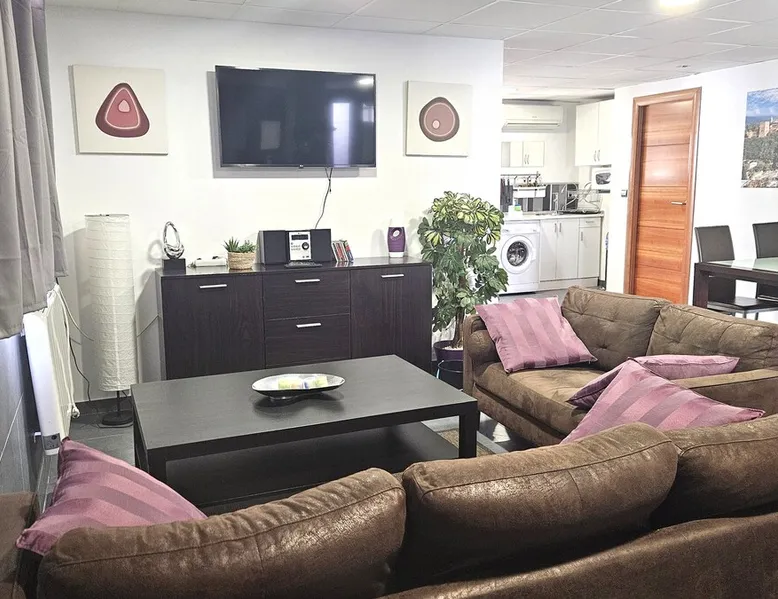 A bright, cozy, and completely new 65m2 apartment located in a quiet residential area and superbly connected to the essential areas to visit in Granada. Unbeatable if you want to visit La Alhambra, ski in Sierra Nevada or access the city center by own vehicle, taxi or city bus line (stop 100 meters away). Secure parking right outside the door so you barely have to carry your bags. Covirán supermarket 20 meters away. The space It has a bedroom with a double bed and a large living room equipped with a new and very comfortable 2-seater sofa bed, as well as a flat-screen TV and stereo. Full bathroom with independent shower and hairdryer, dining area and full kitchen fully equipped with hob, microwave, refrigerator with freezer, washing machine, coffee maker, toaster, crockery and cutlery (including plates, cups, glasses, pots and pans). It also has a beautiful 40 m2 patio that invites tranquility and rest, with a pergola, table, chairs and a fantastic brick barbecue with a countertop and sink. Guest access Strategically located so as not to deprive yourself of anything: 20 meters away: Supermarket (open weekends) and Pharmacy. 100 meters away there is a city bus stop (Line 33) with a high frequency of passage (between 10' and 15'). In 10 minutes you reach the center of Granada. 2 km away: The Alhambra. 25 km away: Sierra Nevada ski slopes, which offer a fantastic range of leisure activities in summer as well. 45 Km: La Alpujarra with its picturesque villages (Lanjarón, Capileira, Bubión, Pampaneira, …) and its exquisite gastronomy. 70 km away: Costa Tropical with its fantastic beaches and beach bars. In short, an ideal apartment in a privileged environment, both for the green areas that surround it, and for its strategic location. Registration Details ESHFTU0000180170007888130050000000000000VFT/GR/018620