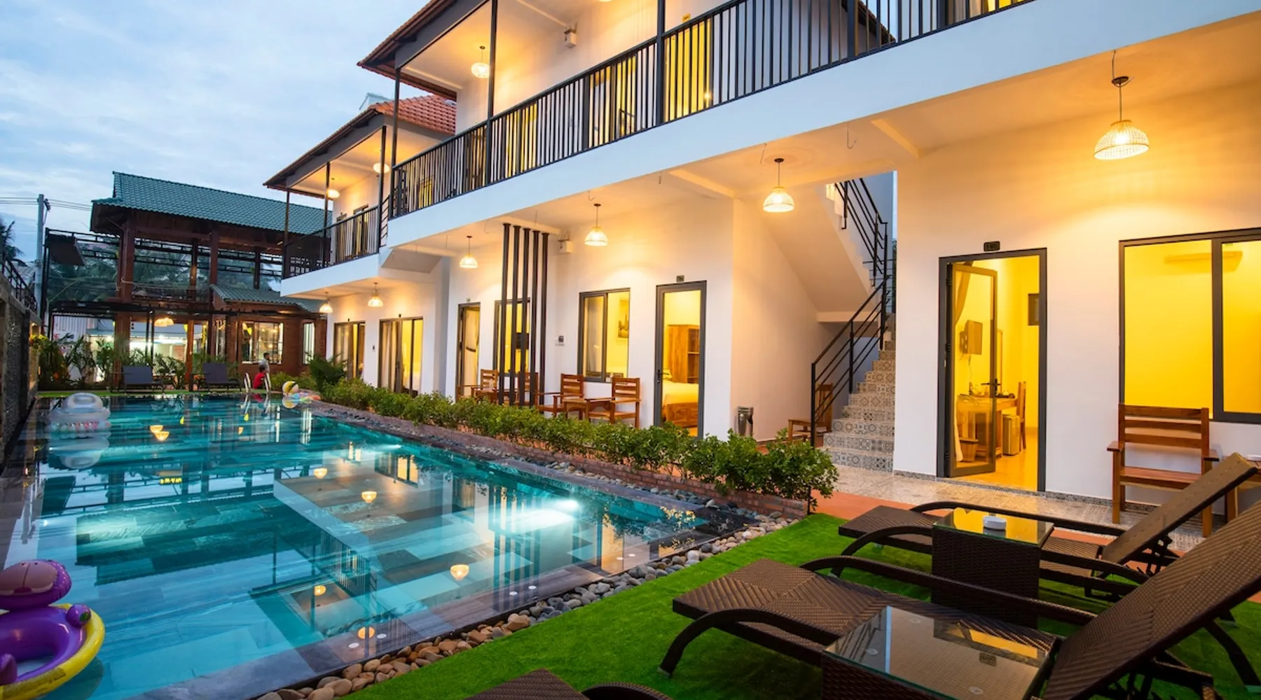 Aurora House is 4km from Duong Dong town center, 4km from the airport, 200m from the beach. Quiet area, with restaurant serving food, drink, coffee, cocktails. Blue swimming pool, comfortable swimming or sunbathing all day ...