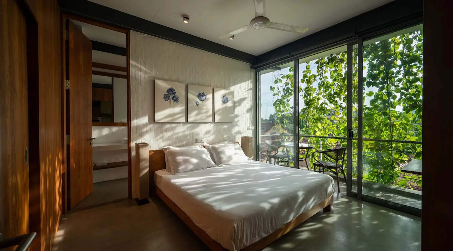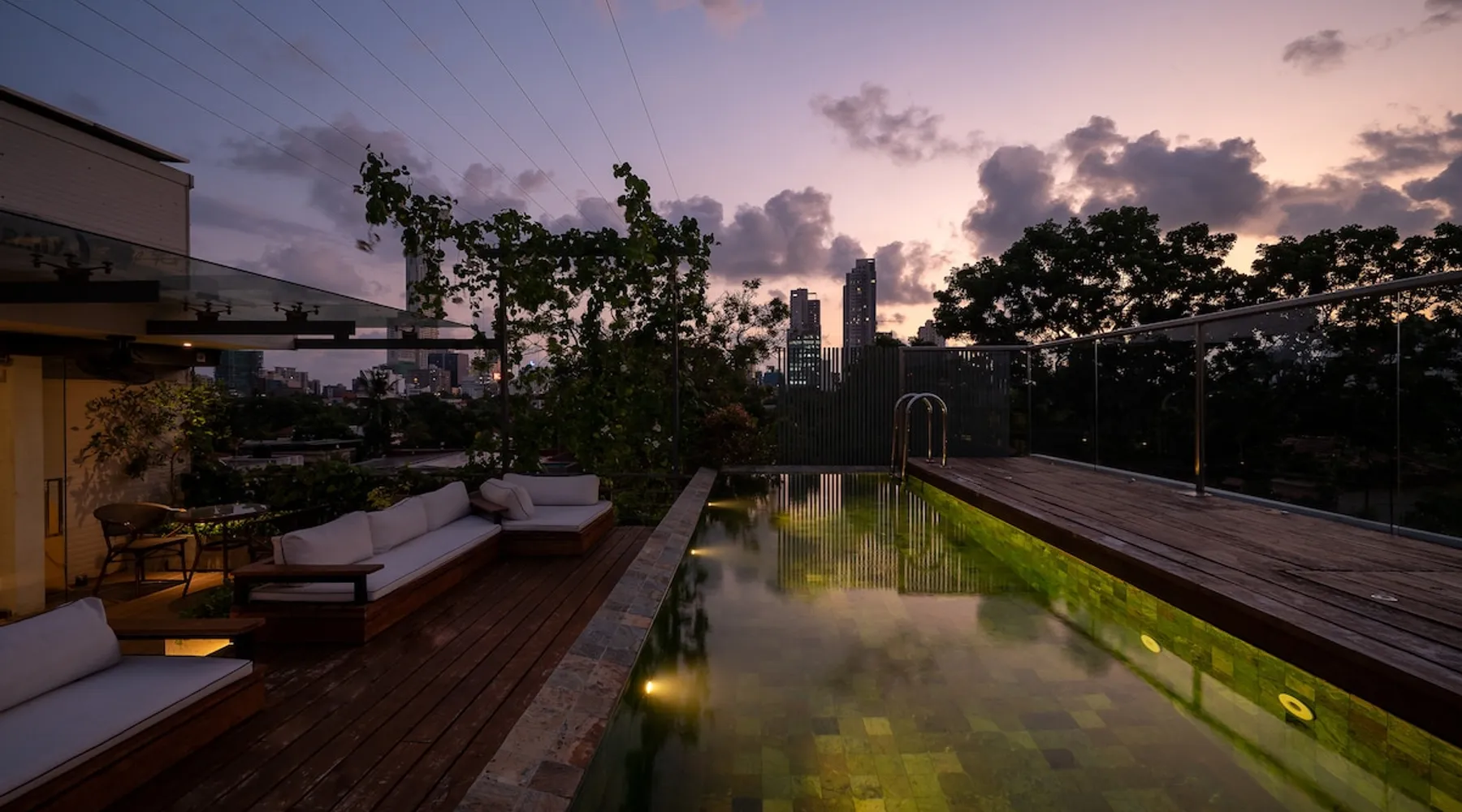 classy. contemporary. cosmopolitan. 55 FLOWERROAD has 3 turn-key 2BR apartments and two tiny houses, with spaces aimed to make your stay with us feel like home. Located in the heart of Colombo's most desirable residential area, 55FLOWERROAD promises you a perfect Colombo home with a class and character of its own. GF - THE NOOK & Parking for Units A, B, C 1st floor: Unit A 2 floor: Unit B 3rd floor: Unit C 4th floor: THE LOFT Rooftop: pool, micro gym, terrace vQS8L The space 55 FLOWERROAD - Units A, B, & C Each apartment has been designed to maximise the use of its ~1000sqft floor area. The double-glazed glass sliding doors that open out from the bedrooms, living, and dining areas to the balconies allow cross-ventilation and natural light throughout, and also act as noise and heat barriers during the hotter and busier times of the day. Privacy is maintained with roller blinds, with additional blackout blinds in bedrooms to ensure restful sleep. The open-plan living spaces have been thoughtfully appointed to meet your every need. THE LOFT & THE NOOK Embracing tiny house dwelling features, THE LOFT @FIFTYFIVE and THE NOOK @FIFTYFIVE offer a unique adventure seeped in comfort, convenience, and character. Guest access Each independent apartment has a private entrance. The street-level covered parking space takes you directly to the entrance lobby with the elevator and stairs that serve the apartments, rooftop terrace, pool and micro gym, and service areas. Other things to note A 40kva back-up generator gives uninterrupted power supply. Especially in times when the country is experiencing an extended period of dry weather, it's not unusual for the island to have power outages. Two bottles of drinking water are supplied to the apartment and a water dispenser is located in an easy to access location within the building for topping up. The rooftop pool (L20 feet x W6.5 feet x D3.25 feet) and the rooftop area are shared with other guests in the building. The building has five units with a combined maximum capacity of 15 guests.