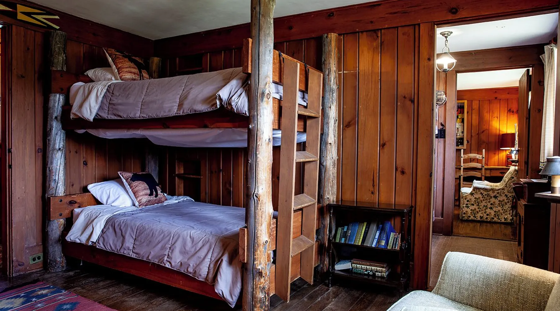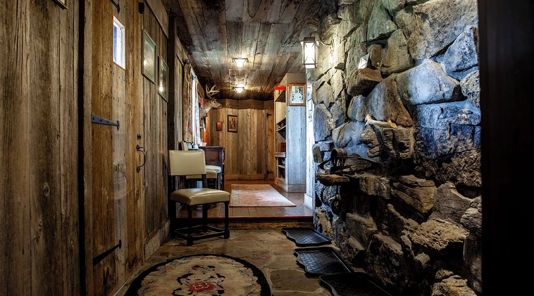 Permit STR-200325 River Ranch Lake Placid Vacation Rental, a unique home with a combination of Rustic Ranch and Adirondack Decor. The property is highlighted with two majestic stone fireplaces. The Ranch was frequently used during the 1980 Winter Olympics. A quarter mile driveway adds to the privacy of the 100 acres property made up of open fields, forests, and the Ausable River. There are trails on the property great for x/c skiing, strolling through the woods or down to the river. If you seek adventure this is the property for you. There are breath taking views of the High Peak Mountains from every room: 3 King sized beds, 1 Queen, and 2 adult size bunk beds: Bedroom 1: KING w/ ensuite bath w/beautiful views of Algonquin Mountain and Sunsets. Bedroom 2: Log BUNK Beds (twin, twin) w/ Jack & Jill bath. Mountain Views. Bedroom 3: Log BUNK Beds (twin, twin) w/ Jack & Jill bath. Mountain Views. Bedroom 4: MASTER- KING w/ ensuite bath (handicap access, walk-in shower), flat screen TV. Mountain Views. North Wing Suite: Additional Living Room with flat screen TV, ensuite bath with Mountain Views. Bedroom 5: KING w/Mountain Views. Bedroom 6: QUEEN w/ Mountain Views. Permit: STR-200325