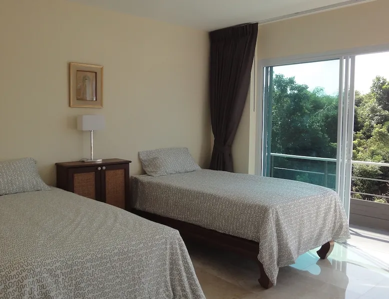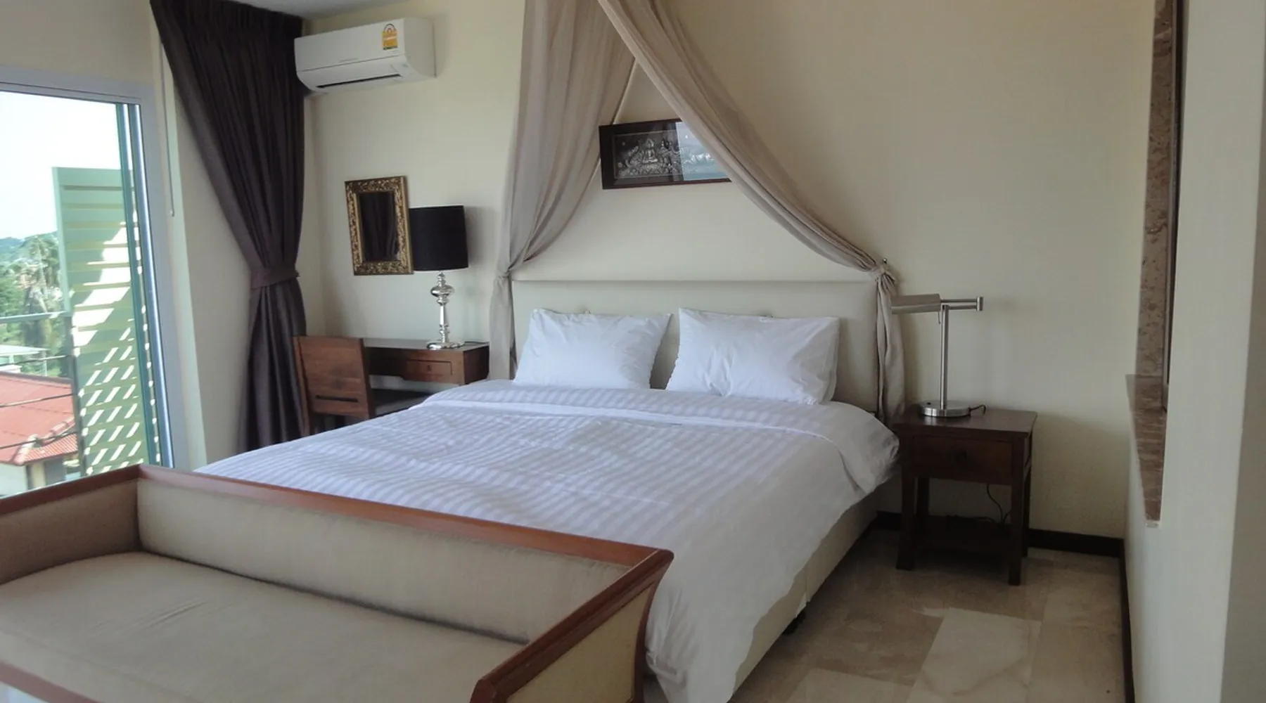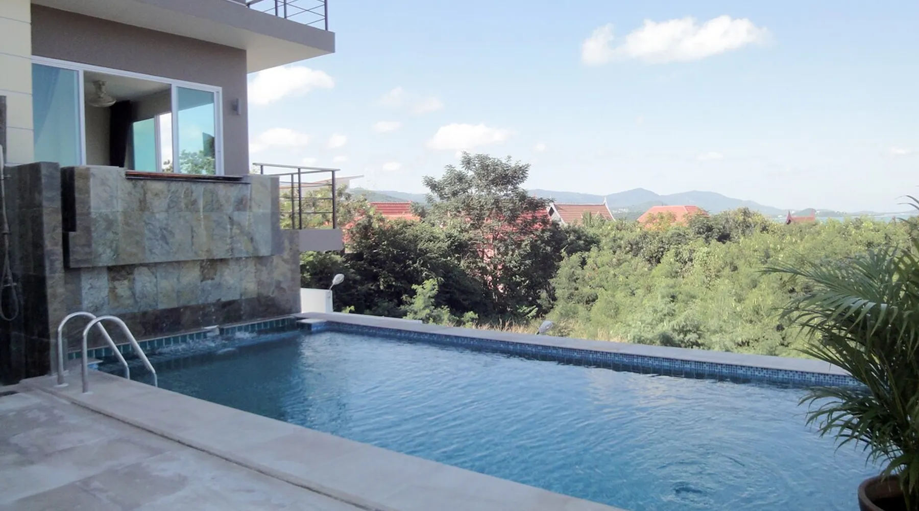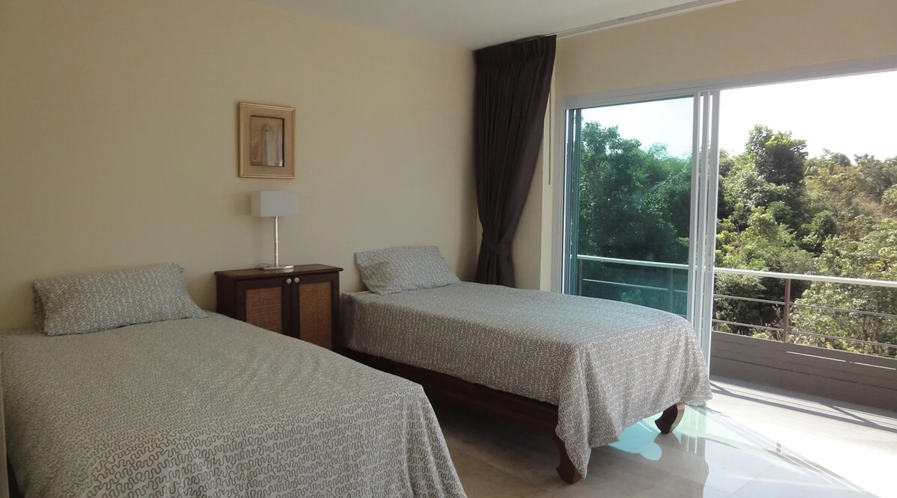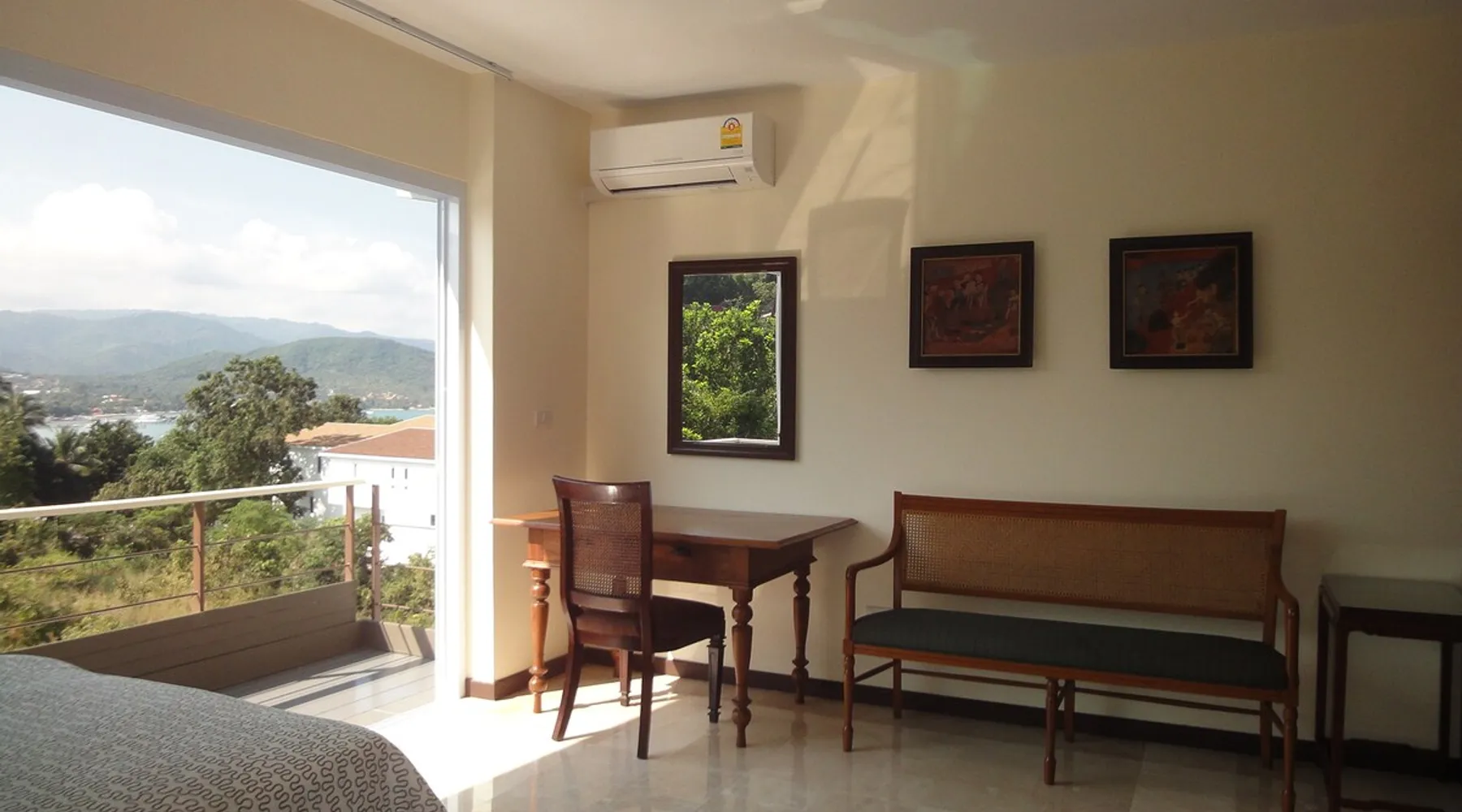 This 130 Sq.m. 2-Bedroom Apartment is a part of Anam Cara. It is situated on the 3rd floor where you can enjoy a spectacular ocean views over Bophut bay, big buddha, and Koh Phangan. It comprises 2 spacious bedrooms, living room and dinning space. The space All room has the balcony. It's has also a kitchen which is equipped with modern appliances and stocked with cooking utencils. Guests will have a welcome fruit basket and daily DIY breakfast (Bread, Coffee/tea, Milk, Egg, ect.). It is also included free wifi internet, flat screen TV etc. The location is ideal, 500m from Seafood Market & Pier to Koh Phangan (for the famous Full-moon Party), just a moment drive to Cheong Mon Beach, and 10 minutes drive to Fisherman's Village & Chaweng Beach Guest access Swimming pool, internet, car parking Other things to note - Daily room cleanning from 11am - 2pm. (excluded kitchenware cleanning) - Sheets and towels change every 3 days