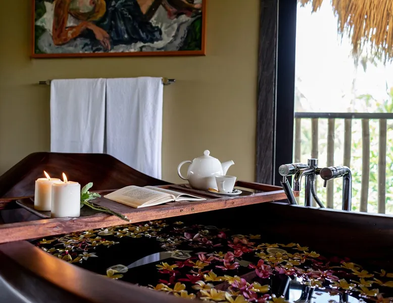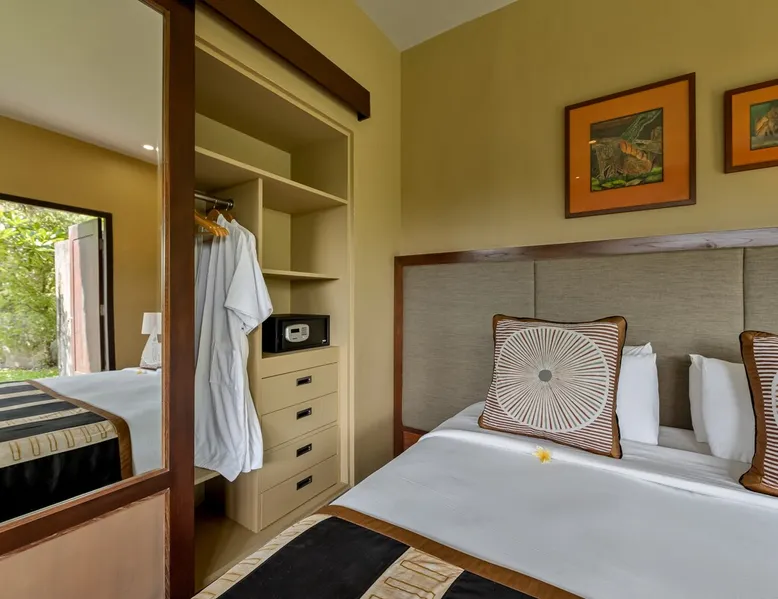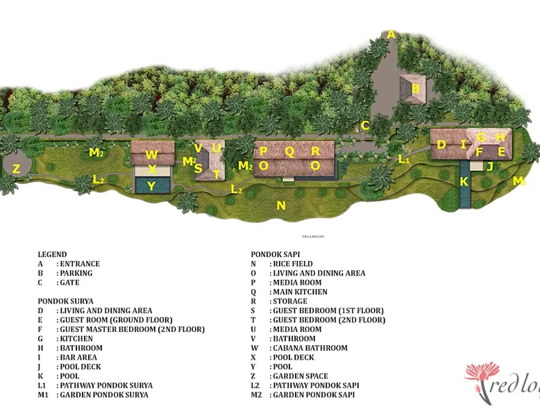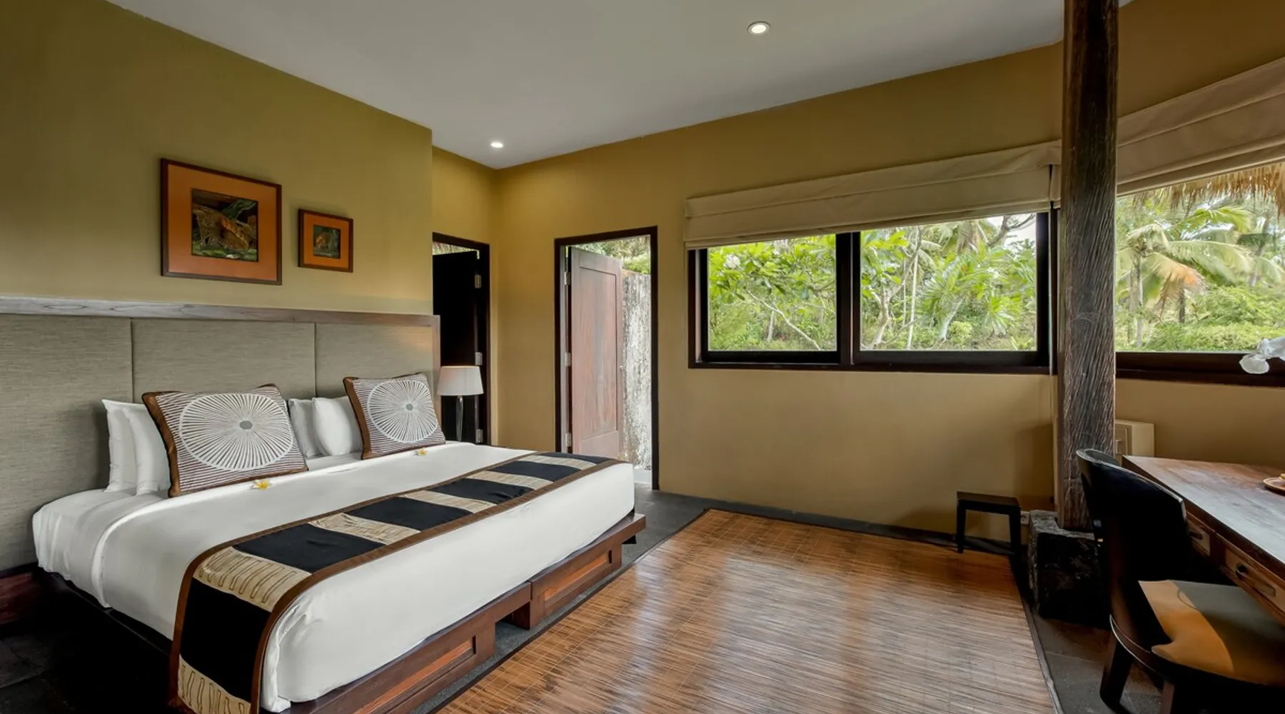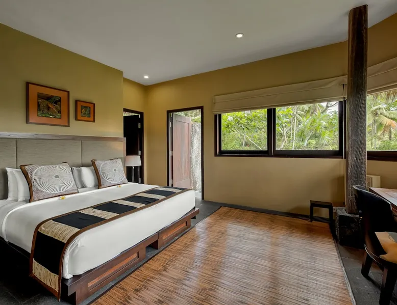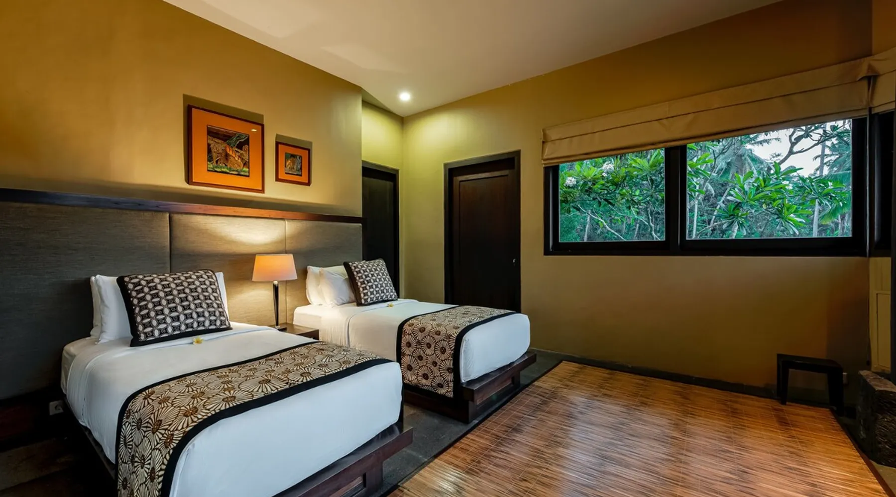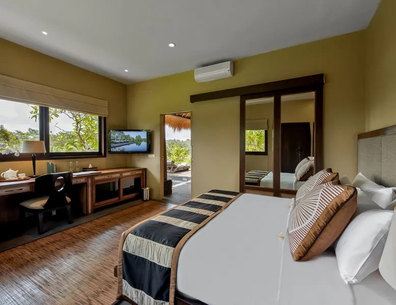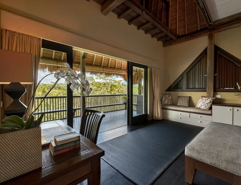 It is a two bedroom private villa located around 20 minutes from Ubud with the amazing view of jungle valley, river, rice field and mountain at the distance. This villa is designed comfortably for those who seek a place to relax, and enjoy the time with family or friends. Wide open designed living and dining area, semi outdoor bathroom, all make this place a unforgettable place to stay. Guest access Shared road
