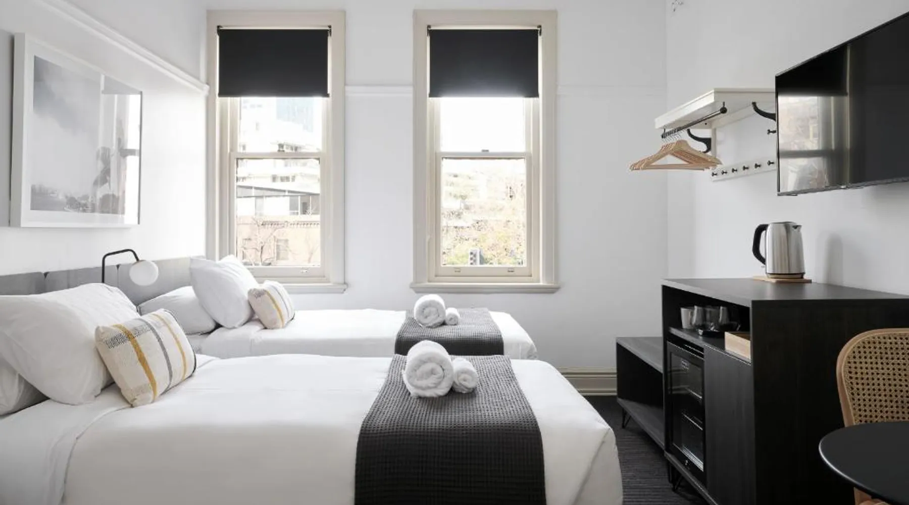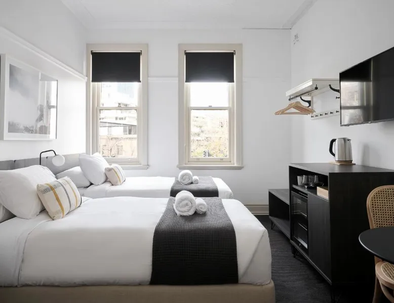 The Dunkirk's two floors of boutique hotel accommodations were completely renovated and refurbished in July 2021, honoring the charm of this heritage listed building while adding modern amenities including new smart televisions (equipped with Netflix, Disney, Stan, and other subscription services for guest log-in) sleek mini fridges, appropriate lighting, and plush, luxurious new bedding in every room. Boasting a restaurant and a bar, Dunkirk Hotel Pyrmont is set in Sydney, 984 feet from The Star Event Center and 1640 feet from International Convention Center Sydney. The property is around 1.3 mi from Art Gallery of New South Wales, 1.4 mi from The Royal Botanic Gardens and 1.6 mi from Sydney Opera House. The hotel has family rooms. At the hotel, the rooms are equipped with a wardrobe. Popular points of interest near Dunkirk Hotel Pyrmont include Australian National Maritime Museum, Hyde Park Barracks Museum and Circular Quay. The nearest airport is Kingsford Smith Airport, 4.3 mi from the accommodations. The triple room's kitchenette, which features a microwave, is available for cooking and storing food. This triple room has a private bathroom, a tea and coffee maker and a wardrobe. The unit has 2 beds.
