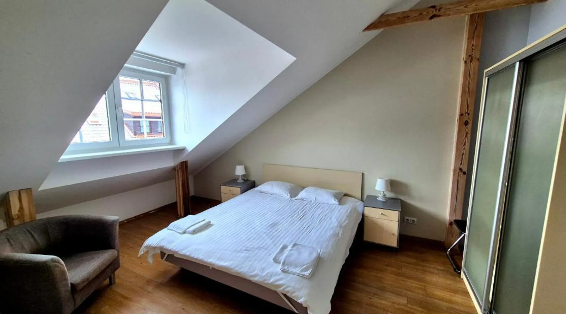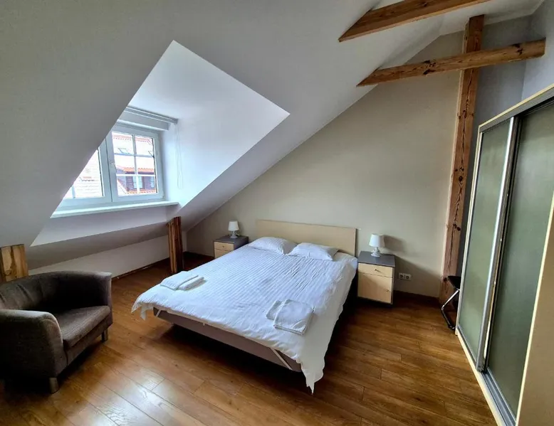 Located in the Gothic-style house on the main street of the Old Town of Vilnius, Apartments Latako Street is close to Town Hall and Cathedral Square. It offers free WiFi and free parking in a quiet backyard. The spacious apartments all have a kitchen with dining area, a bathroom with hairdryer, cable TV, a CD player, and a washing machine. The Vokieciu shopping street, with many restaurants, bars and clubs, is only a short walk away from Apartments Latako Street. This duplex apartment offers 2 double beds and 1 sofa bed. It is located at: Latako gatvė 1.