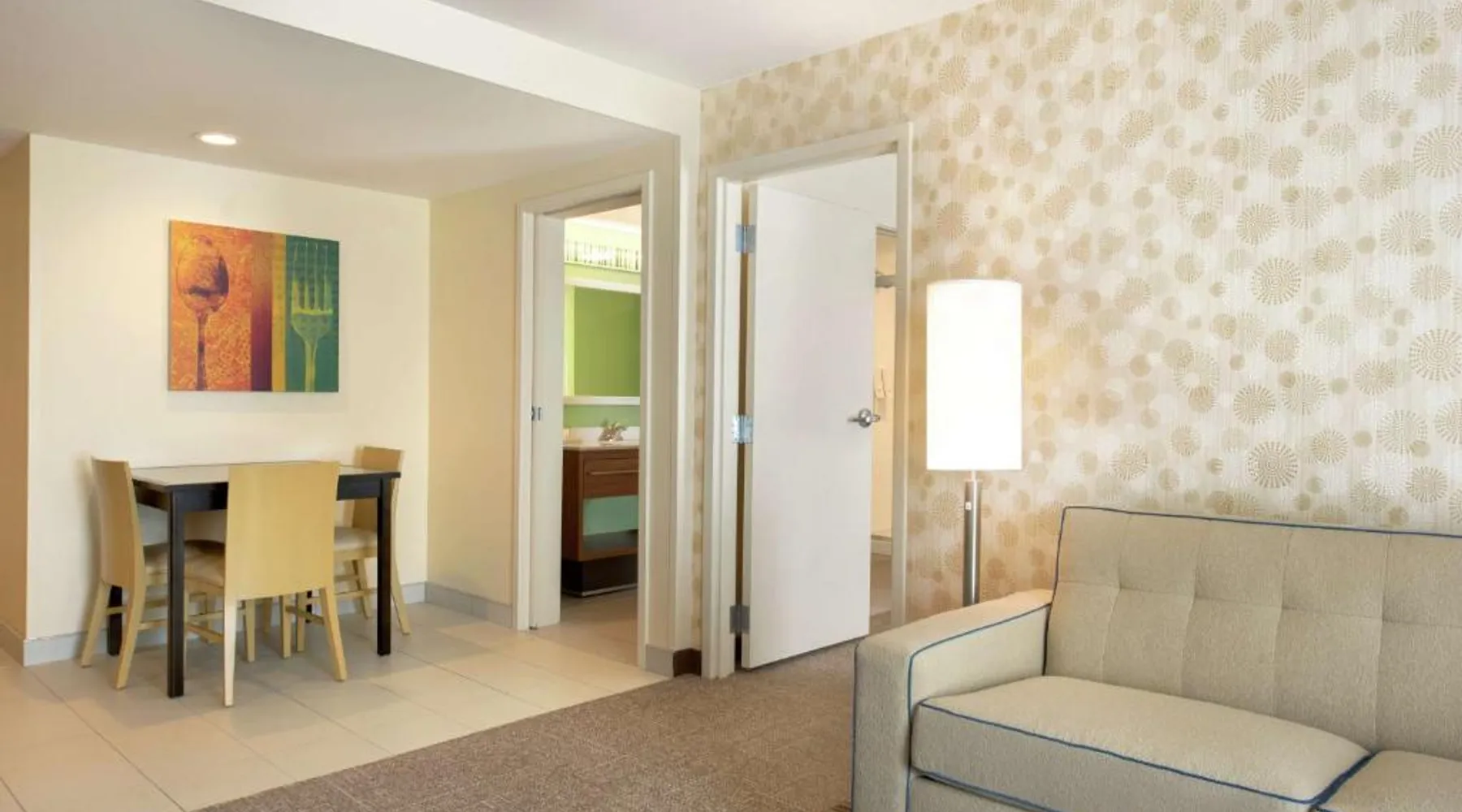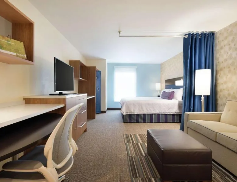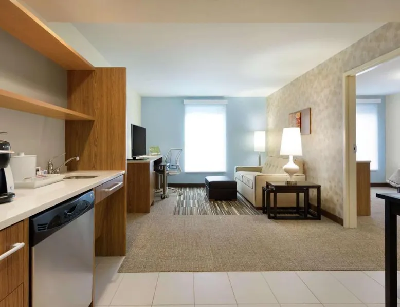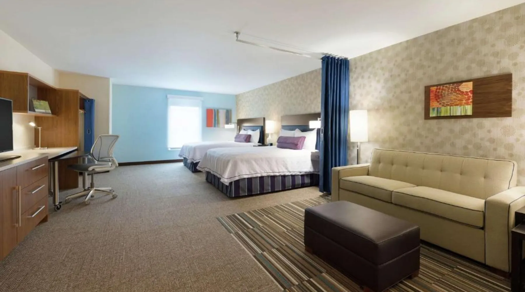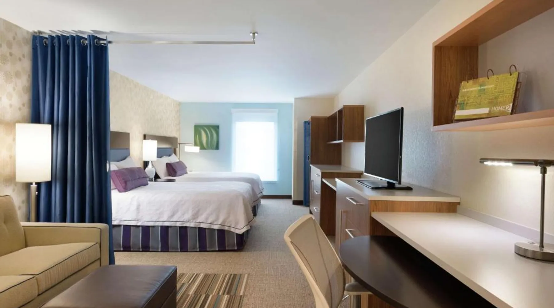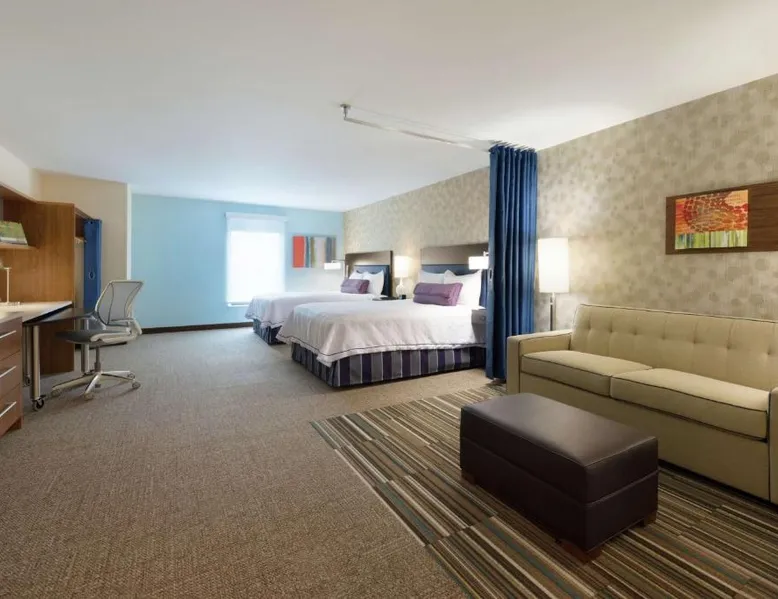 Comfortable Accommodations: Home2 Suites by Hilton Milwaukee Airport in Milwaukee offers family rooms with air-conditioning, free WiFi, and amenities such as a work desk and sofa bed. Each room includes a refrigerator, microwave, and TV. Leisure Facilities: Guests can enjoy a saltwater swimming pool, indoor pool, and fitness center. The hotel provides a lounge, outdoor fireplace, and outdoor seating area. Additional amenities include a business area, laundry service, and electric vehicle charging station. Convenient Location: Located a few steps from Milwaukee Mitchell International Airport, the hotel is near attractions like Mitchell Gallery of Flight (1.2 mi) and Harley-Davidson Museum (6.8 mi). Free airport shuttle service is available. Guest Services: The hotel offers a 24-hour front desk, concierge service, and child-friendly buffet. Guests appreciate the connectivity to the airport, convenient location, and attentive property staff. This suite is air-conditioned and has a flat-screen TV with cable channels, a tea and coffee maker, a seating area and heating. The unit has 2 beds.