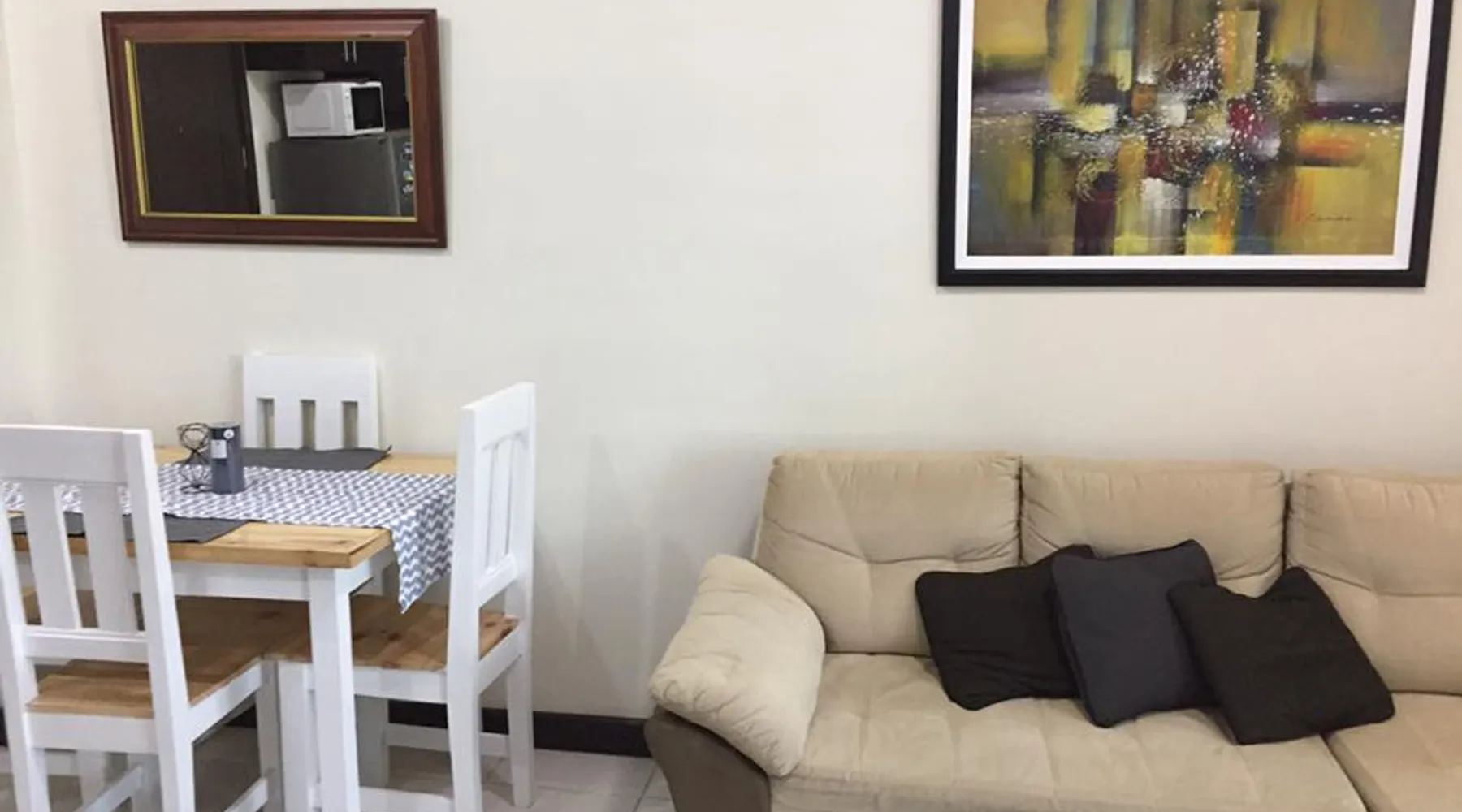 The place is close to restaurants and dining, family-friendly activities, and great views. You’ll love the place because of the location, the neighbourhood, and the ambiance. The place is good for couples, solo adventurers, business travellers, small family. To sign contract for the period of lease(minimum 6 mos.) - Price is inclusive of condo dues & internet. You will pay the water & electricity -To pay phone call bills if phone is used. The space Spacious, can accommodate family, homey. Guest access The entire condo unit is for you. Other things to note Covid-19 screening - Must present : 1. Complete travel & Health declaration form 2. Proof of FDA approved COVID-19 Antibody Rapid Test within 2 days before move in.