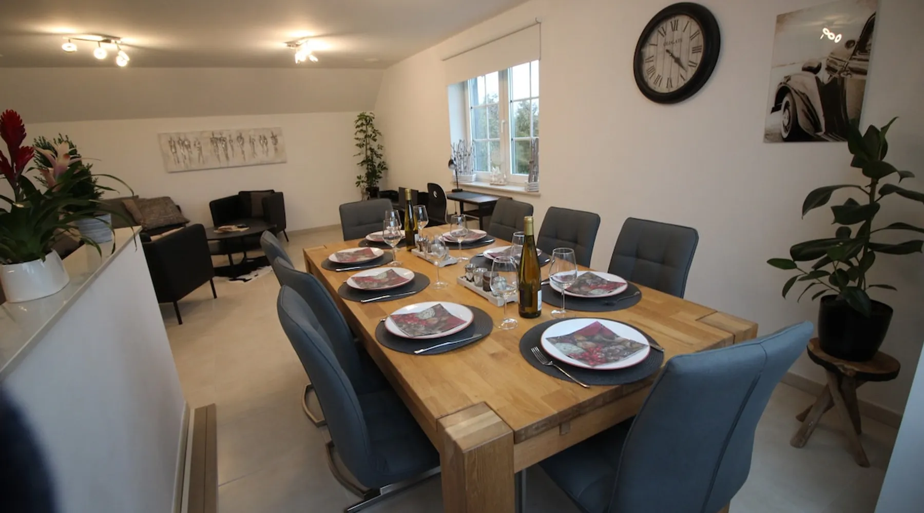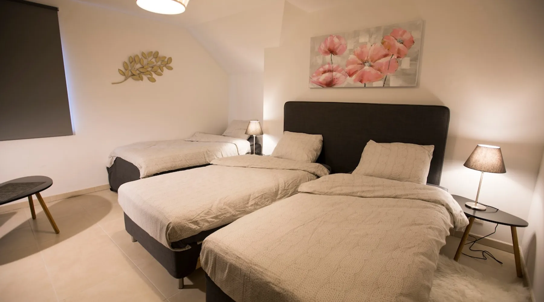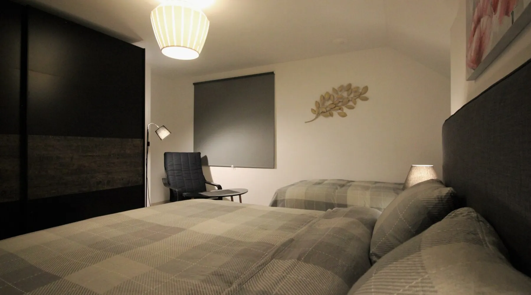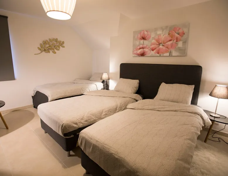 Located in Lontzen, these rural cottages offer south-facing views of the surrounding nature, as well as its Shelter of/and Garden at your disposal to enjoy your barbecues during your stay On the edge of the road of the castles with three borders, this resort is 3.5 km from Golf Henri-Chapelle and 30 minutes from the Francorchamps circuit The village of Lontzen is part of both the Eastern /Ostbelgian Townships the Plateau de Herve, de l 'Ardenne Bleue and at the gates of the Fagnes The space Page F. B. --> " Villa&Loge " also offers at certain times the option to reserve just cottage A --> Villa&Loge –"the pretty sunrise" or / and Gîte B --> Villa&Loge –"the nice sunset", Very well equipped and very comfortable, these two magnificent modern rural cottages of 85 and 99 m² also each have WiFi (free), satellite connection + cable connection for TV, as well as brand new furniture. Access by the private road is accessed to the vast parking lot of the property. The living room is on the 1st floor and has unobstructed views of the surrounding countryside. Through the fields behind the house, you have the NATURA 2000 nature reserve with lots of hiking trails. Guest access Guests access both listings through a front door other than the owner's front door. The garden is also distinct from that of the owner. Description of each of the two listings: o Spacious and bright living room equipped with TV, Blu-ray DVD player. o A modern kitchen fully equipped with: Induction Taques, Microwave, Coffee Machine "Bean" and "Expreso" Electric Kettle, Toaster, Mix-soupe, Fridge and Separate Freezer, Dishwasher... o In this space "Kitchen & Living room" is also provided a "Office" space with possibility of internet connection via WiFi, throughout the apartment. o For Gîte A --> Villa&Loge – "the pretty sunrise", two bedrooms with: the 1st bedroom: 1 double bed and 1 single bed or 3 single beds. the 2nd bedroom, 1 double bed. o For Gîte B --> Villa&Loge – "the nice sunset", two bedrooms with: the 1st bedroom: 1 double bed and 1 single the 2nd bedroom, 1 double bed or 2 single beds. All beds are equipped with box springs and memory mattresses of very good quality shapes for a very comfortable night's sleep. For each of the two listings: o a modern bathroom furnished with a double sink, a multijet shower tub. A washing machine & dryer is also available for you. o The accommodation also benefits from optimal insulation and excellent air quality due to the "VMC" heat recovery double flow ventilation system .s o Located on the 1st floor, by the staircase, you can access these two beautiful single-story homes. o A private garden facing "south" is also provided for you. Other things to note The owner is committed to providing you with an impeccable accommodation. o They ask that the property be respected and used as a responsible person. o No pets. o No smoking.