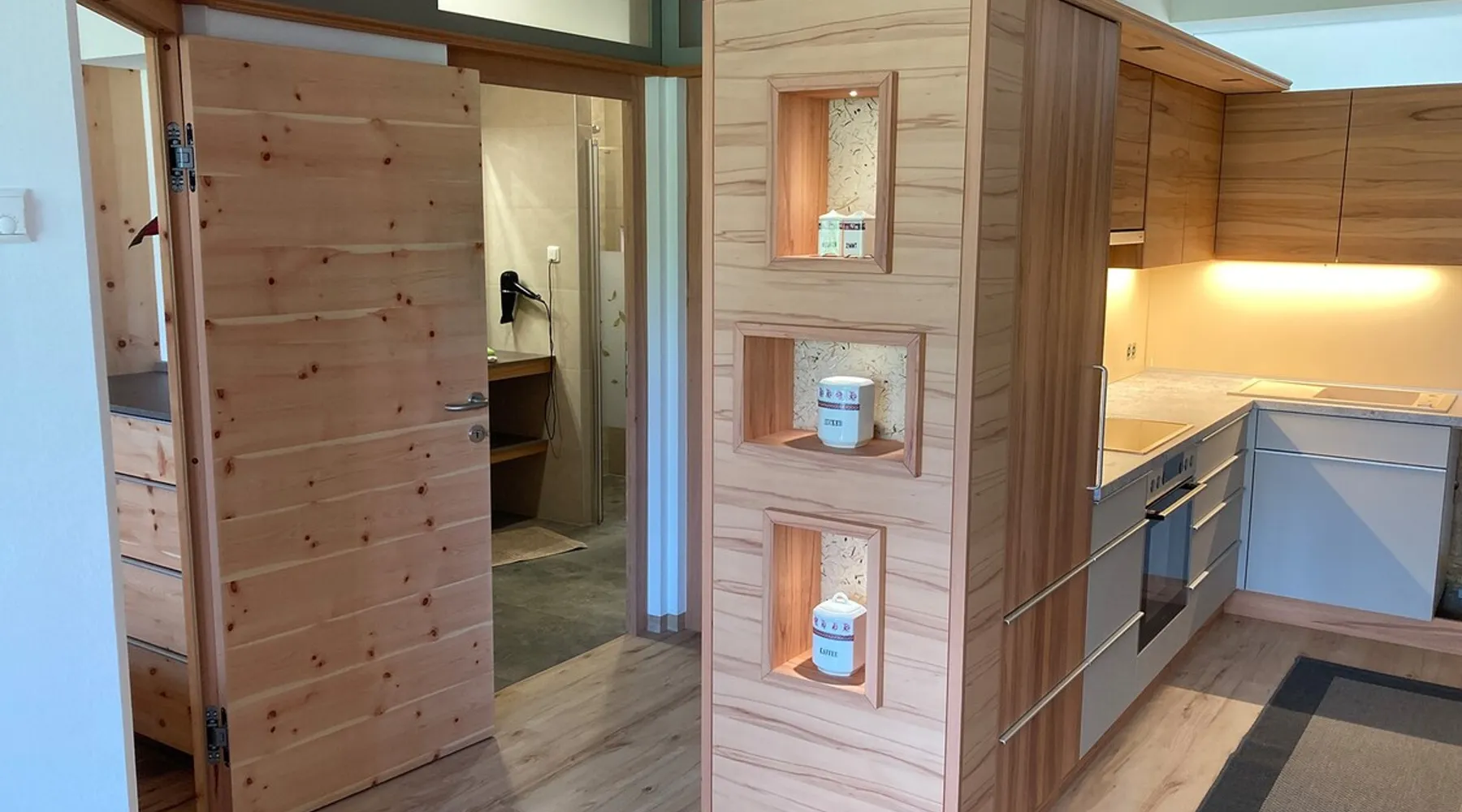 Vacation, by the carpenter. Just feel comfortable. In the middle of the PyhrnPriel region, between the scent of pine wood and birch boards, we would like to welcome you to our lovingly designed apartment in Vorderstoder. Perfect panorama of the highest mountains of Upper Austria and our natural location are the perfect building blocks for your vacation, a special kind of tranquility, family surroundings and top equipped rooms, all homemade by the carpenter and host in person.