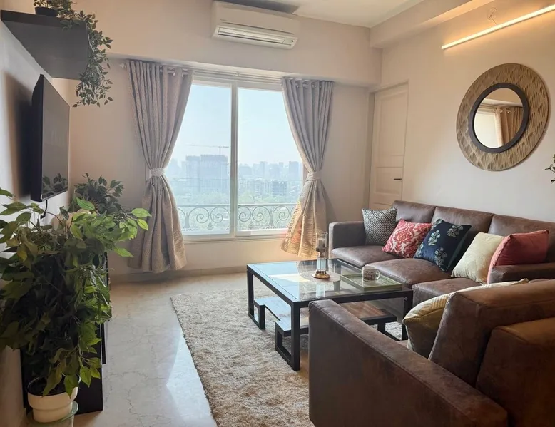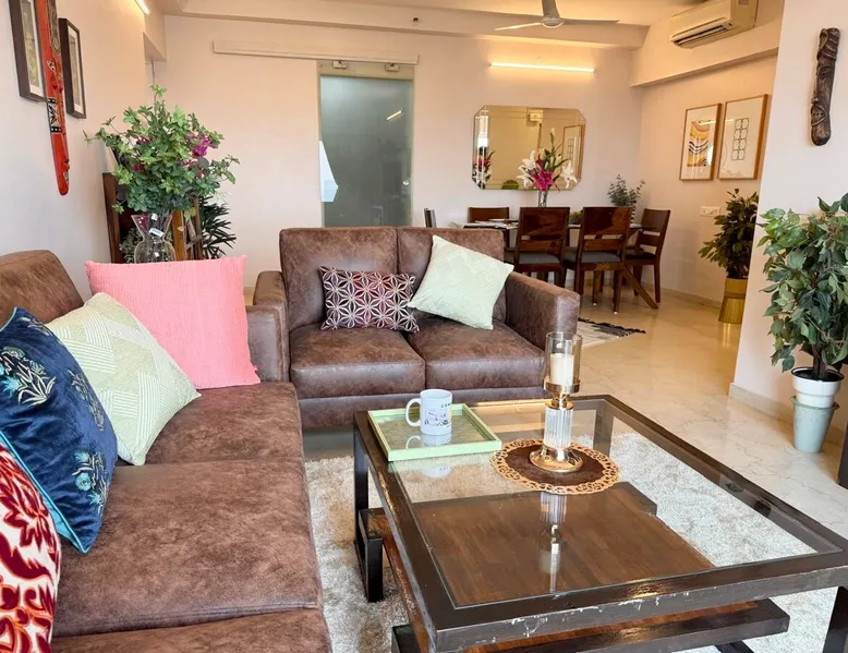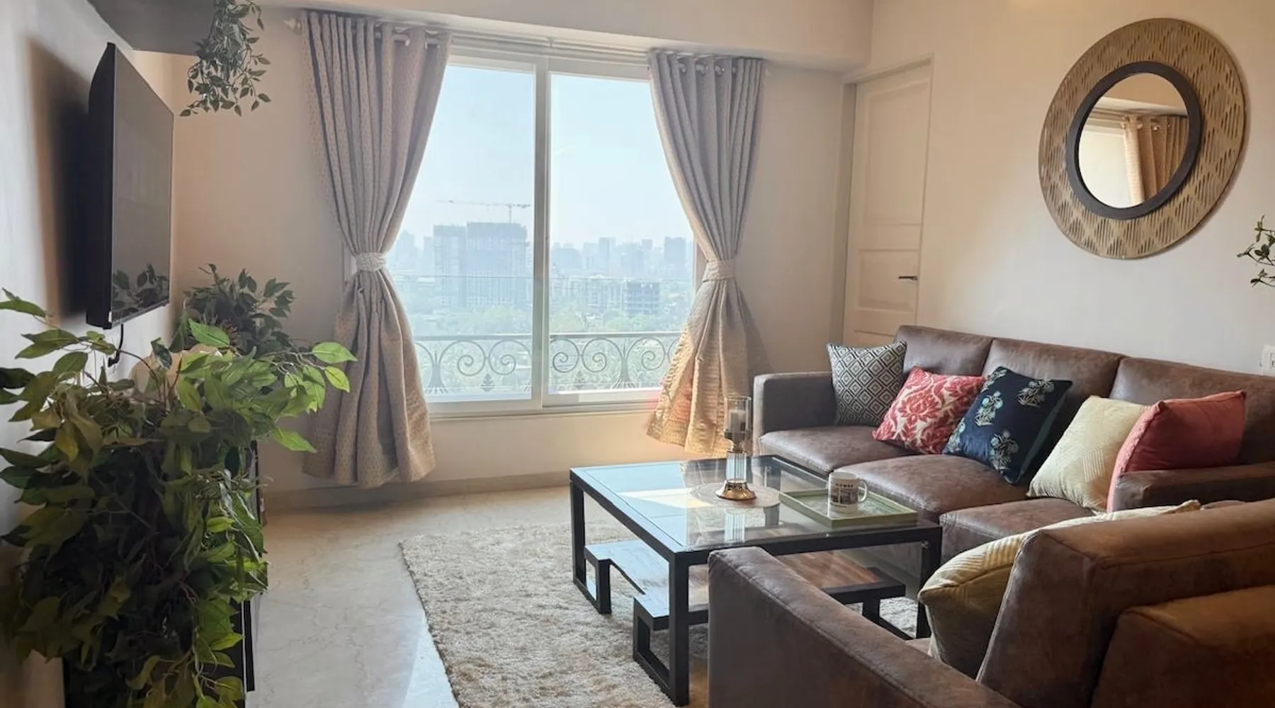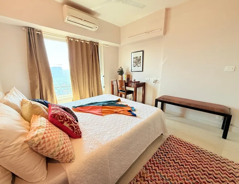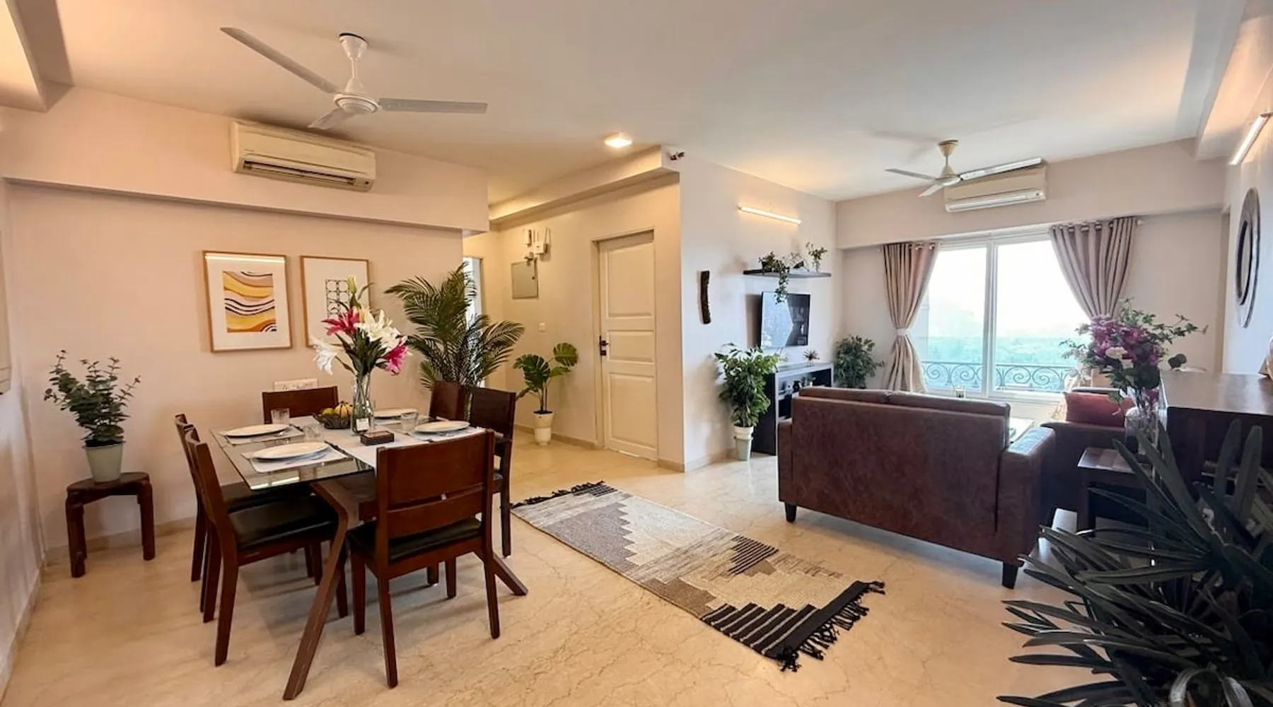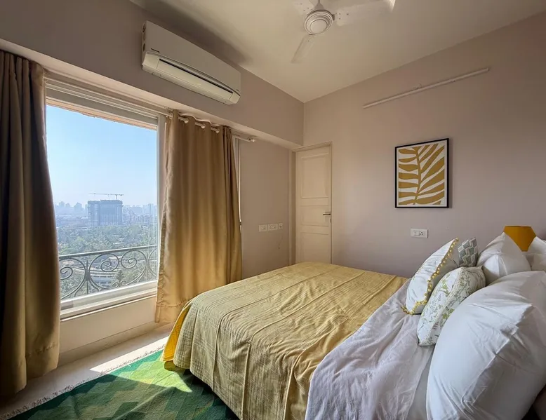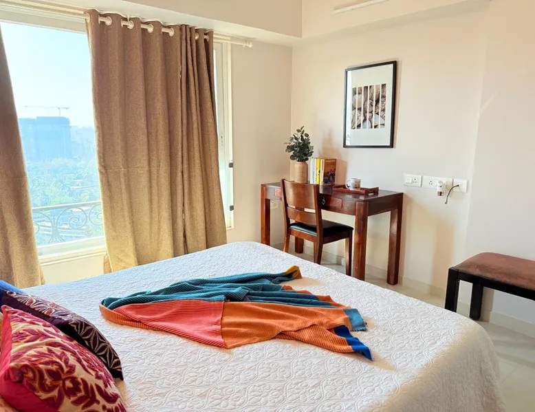 The apartment shares the exclusive benefit of a home away from home with luxurious amenities of a hotel with style. Our endeavour is to make your stay luxurious -Star Hotel-like modern & upscale, clean room with all high-end amenities -3 Bedrm & 3 Bath with all essentials provided -Early check-in & Late check-out (subject to availability) -New Building with pool, gym & salon -Smart TV & Wifi -Regular housekeeping provided -15th floor flat with lift The space ★ “We had a fantastic stay at this beautiful property in BKC for a month while relocating to Mumbai! The apartment was modern and well-equipped with all the amenities I needed, from a spacious living area to a fully equipped kitchen. The pool and gym facilities were top-notch, offering a perfect…” Living Room • Comfort with a cozy 6 -seater dining space • Comfy 5-seater sofa • 43'' Smart TV • Air-conditioned with large windows that let in plenty of natural light • An extra mattress can be used in the living room to accommodate additional Guest • A perfect spot for relaxing or remote work Bedroom 1 • King-size bed with plush mattress and 300+ thread count Egyptian cotton linens • Air-conditioned with naturally cool interiors • Spacious wardrobes — perfect for extended stays • Work desk & chair — perfect WFH setup • Ensuite bathroom • Wide windows with black out curtains Bedroom 2 • Queen-size bed with plush mattress and 300+ thread count Egyptian cotton linens • Air-conditioned with naturally cool interiors • Spacious wardrobes — perfect for extended stays • Work desk & chair — perfect WFH setup • Bathroom right opposite to bedroom • Wide windows with black out curtains Bedroom 3 • Queen-size bed with plush mattress and 300+ thread count Egyptian cotton linens • Air-conditioned with naturally cool interiors • Spacious wardrobes — perfect for extended stays • Ensuite bathroom • Wide windows with black out curtains Bathrooms • Equipped with a geyser for consistent hot water • Western-style toilet with a half-glass panel separating shower and dry space • Includes shower gel, shampoo, toilet rolls, bath & face towels Kitchen • The kitchen is fully functional and equipped to prepare meals of any size includes Microwave, Fridge, Toaster, Kettle, Mixer grinder, Pressure cooker and Gas stove. • Stocked with cookware, utensils, dishes, silverware, etc. Amenities • Fresh linens provided • Housekeeping every day Guest access The Entire House Other things to note INR 10,000 move in charges will be additional. This is required by the society