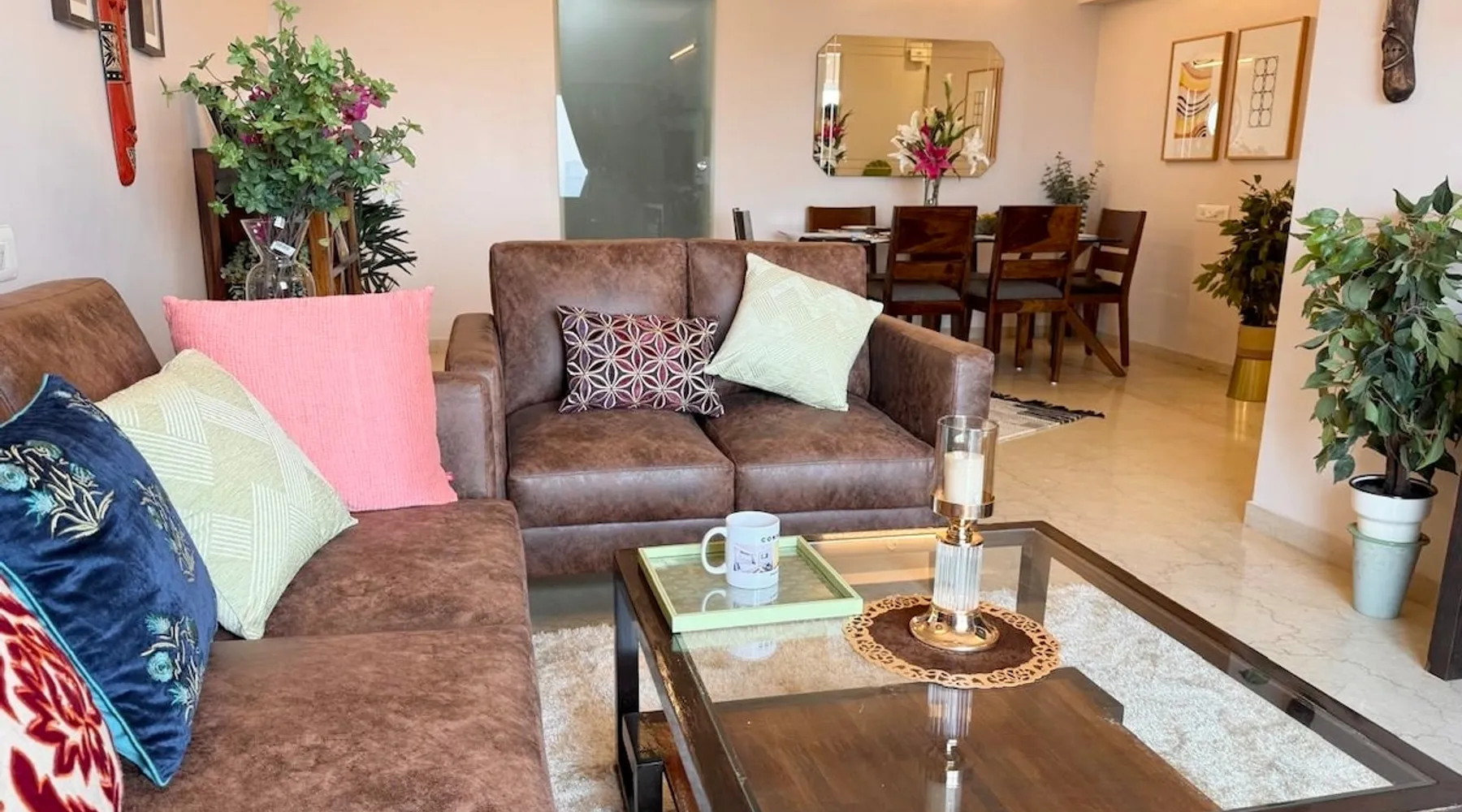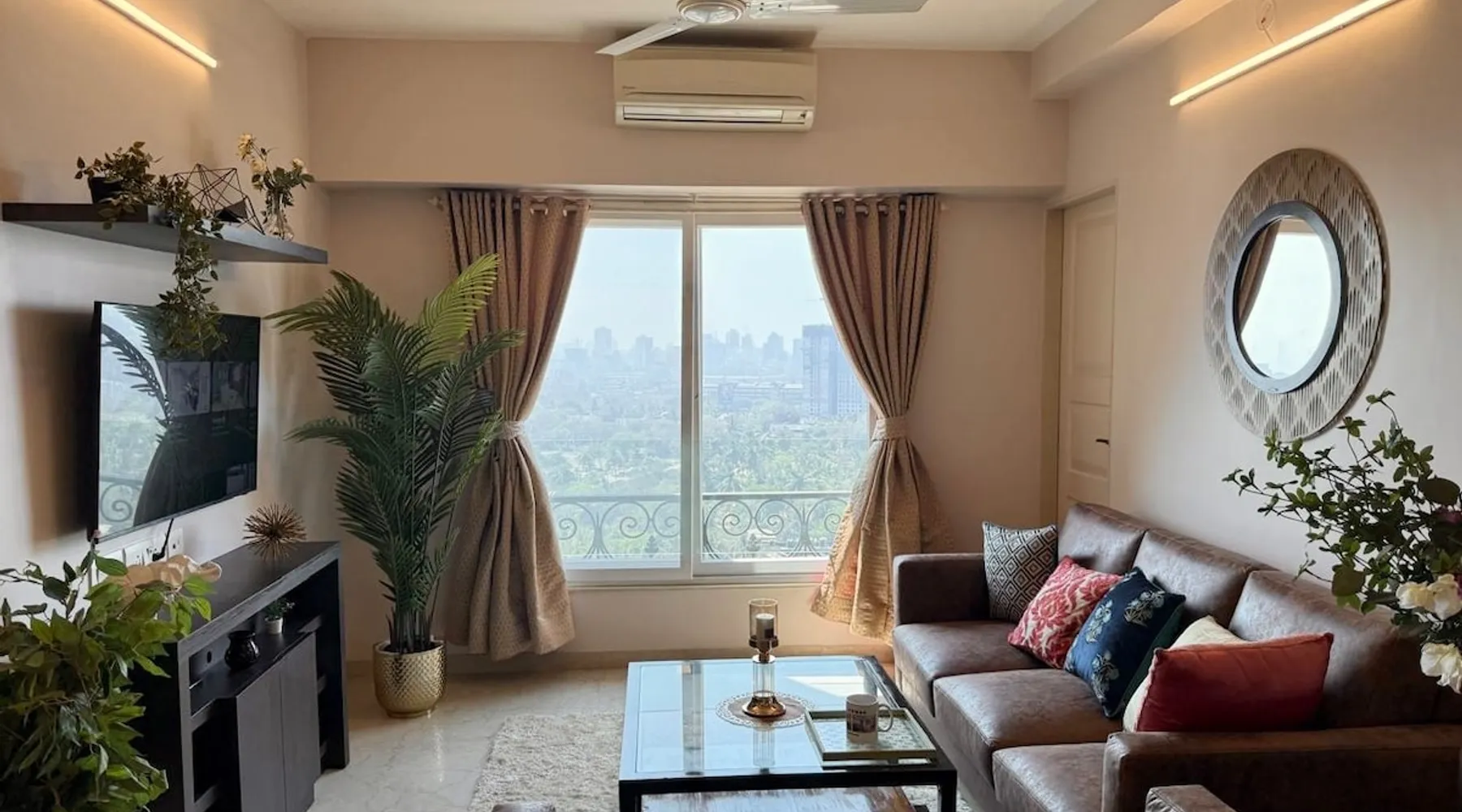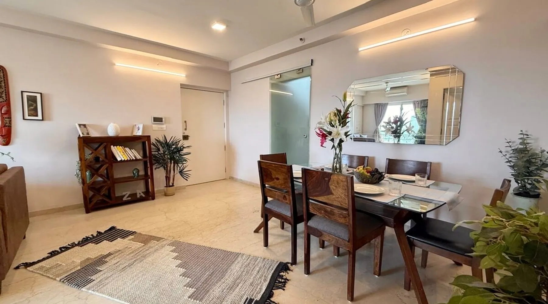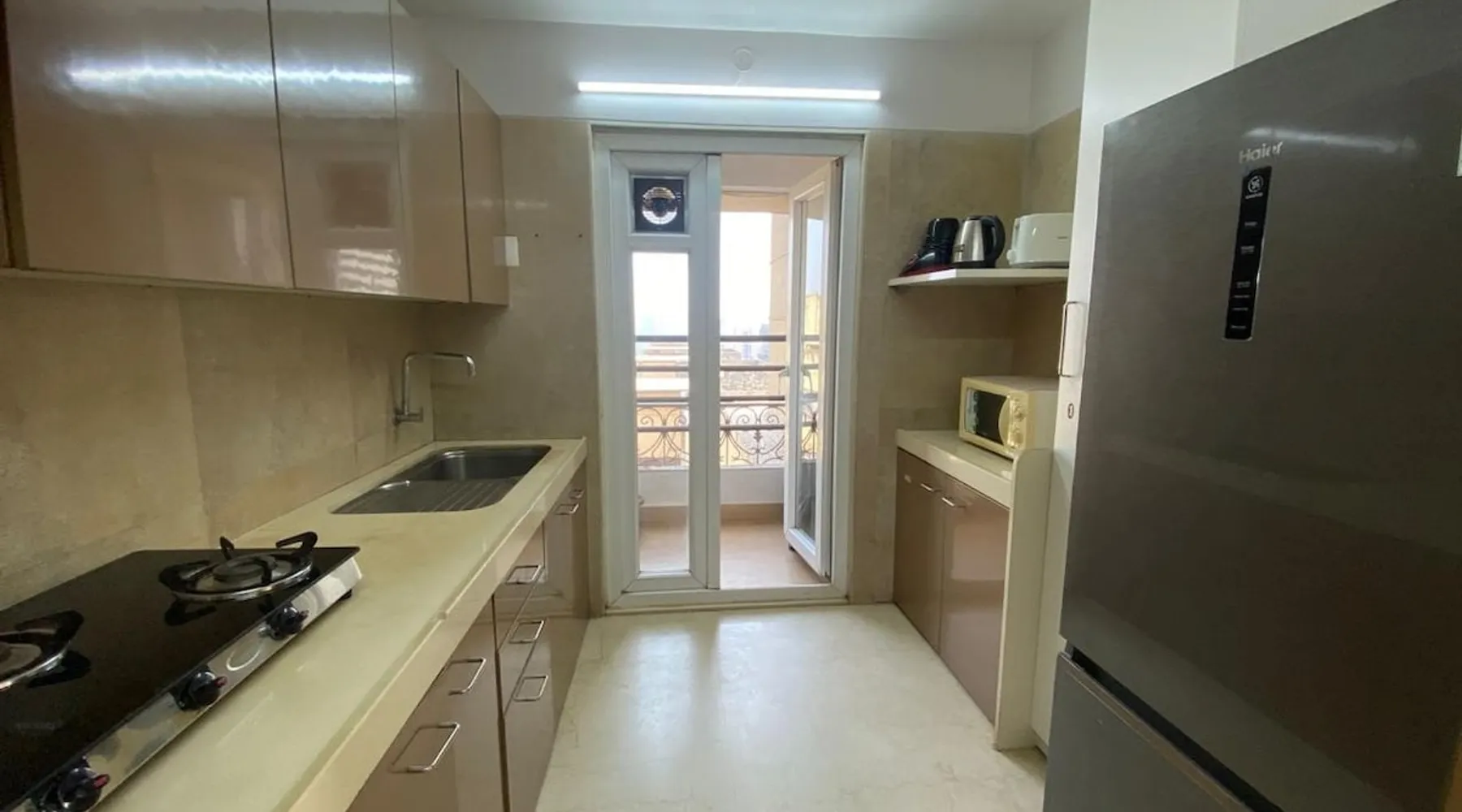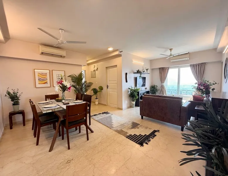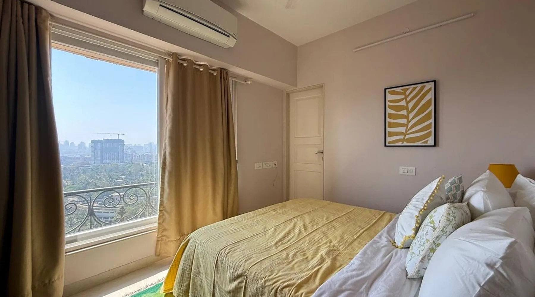 The apartment shares the exclusive benefit of a home away from home with luxurious amenities of a hotel with style. Our endeavour is to make your stay luxurious -Star Hotel-like modern & upscale, clean room with all high-end amenities -3 Bedrm & 3 Bath with all essentials provided -Early check-in & Late check-out (subject to availability) -New Building with pool, gym & salon -Smart TV & Wifi -Regular housekeeping provided -15th floor flat with lift The space ★ “We had a fantastic stay at this beautiful property in BKC for a month while relocating to Mumbai! The apartment was modern and well-equipped with all the amenities I needed, from a spacious living area to a fully equipped kitchen. The pool and gym facilities were top-notch, offering a perfect…” Living Room • Comfort with a cozy 6 -seater dining space • Comfy 5-seater sofa • 43'' Smart TV • Air-conditioned with large windows that let in plenty of natural light • An extra mattress can be used in the living room to accommodate additional Guest • A perfect spot for relaxing or remote work Bedroom 1 • King-size bed with plush mattress and 300+ thread count Egyptian cotton linens • Air-conditioned with naturally cool interiors • Spacious wardrobes — perfect for extended stays • Work desk & chair — perfect WFH setup • Ensuite bathroom • Wide windows with black out curtains Bedroom 2 • Queen-size bed with plush mattress and 300+ thread count Egyptian cotton linens • Air-conditioned with naturally cool interiors • Spacious wardrobes — perfect for extended stays • Work desk & chair — perfect WFH setup • Bathroom right opposite to bedroom • Wide windows with black out curtains Bedroom 3 • Queen-size bed with plush mattress and 300+ thread count Egyptian cotton linens • Air-conditioned with naturally cool interiors • Spacious wardrobes — perfect for extended stays • Ensuite bathroom • Wide windows with black out curtains Bathrooms • Equipped with a geyser for consistent hot water • Western-style toilet with a half-glass panel separating shower and dry space • Includes shower gel, shampoo, toilet rolls, bath & face towels Kitchen • The kitchen is fully functional and equipped to prepare meals of any size includes Microwave, Fridge, Toaster, Kettle, Mixer grinder, Pressure cooker and Gas stove. • Stocked with cookware, utensils, dishes, silverware, etc. Amenities • Fresh linens provided • Housekeeping every day Guest access The Entire House Other things to note INR 10,000 move in charges will be additional. This is required by the society